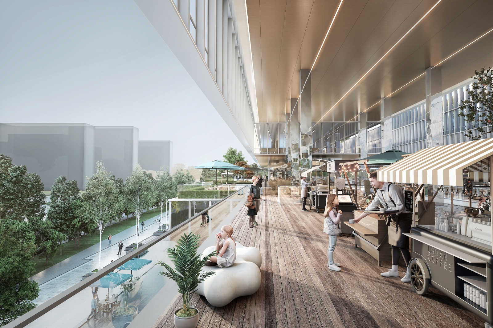 The architectural design of the building takes into account the narrow and elongated terrain, gracefully unfolding along the river. It seamlessly integrates with the surrounding landscape and urban area through the inclusion of various park spaces. The rooftop garden offers a natural fitness area with a circular track and lush greenery. The neighborhood park creates a tranquil atmosphere with shrubs and artistic installations, attracting visitors and adding vibrancy to the surroundings. The lifestyle park combines commercial and recreational elements, providing nearby leisure options for residents and enhancing the overall value of the project.