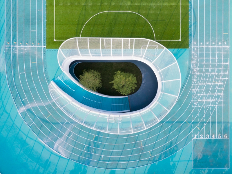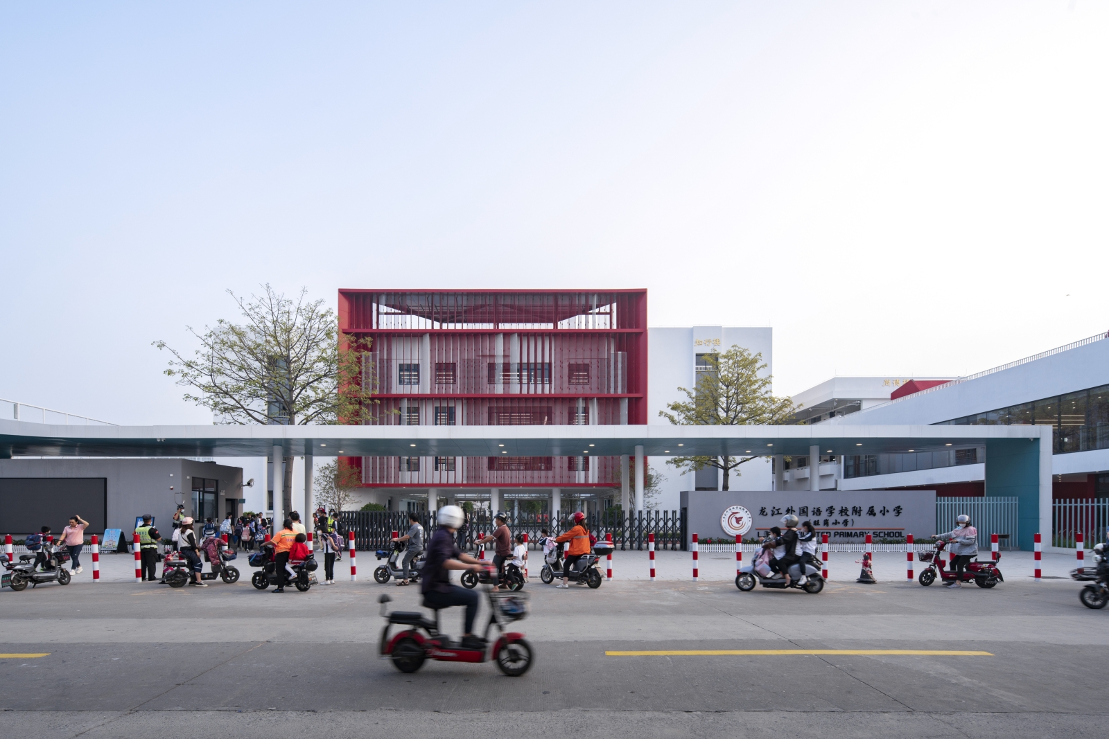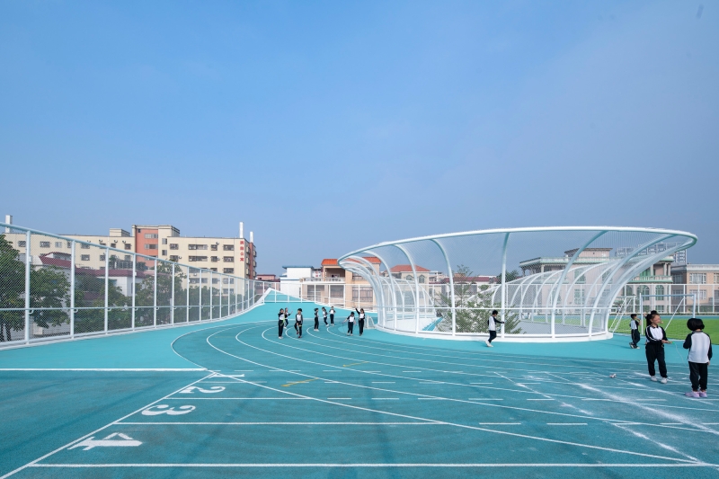 The Primary School Affiliated to Longjiang Foreign Language School (Wanggang School) is located in Longjiang, Shunde. The school is surrounded by a range of dense villages that are typical and symbolic in the Pearl River Delta. It is adjacent to Sanlian Industrial Park, which is the largest furniture industrial area in Longjiang. There is a strict limitation of land for school expansion and the contradiction between supply and demand on the campus space is very prominent. By raising the sports field to 4.65m, more flexible spaces are created underneath to provide different functional spaces.