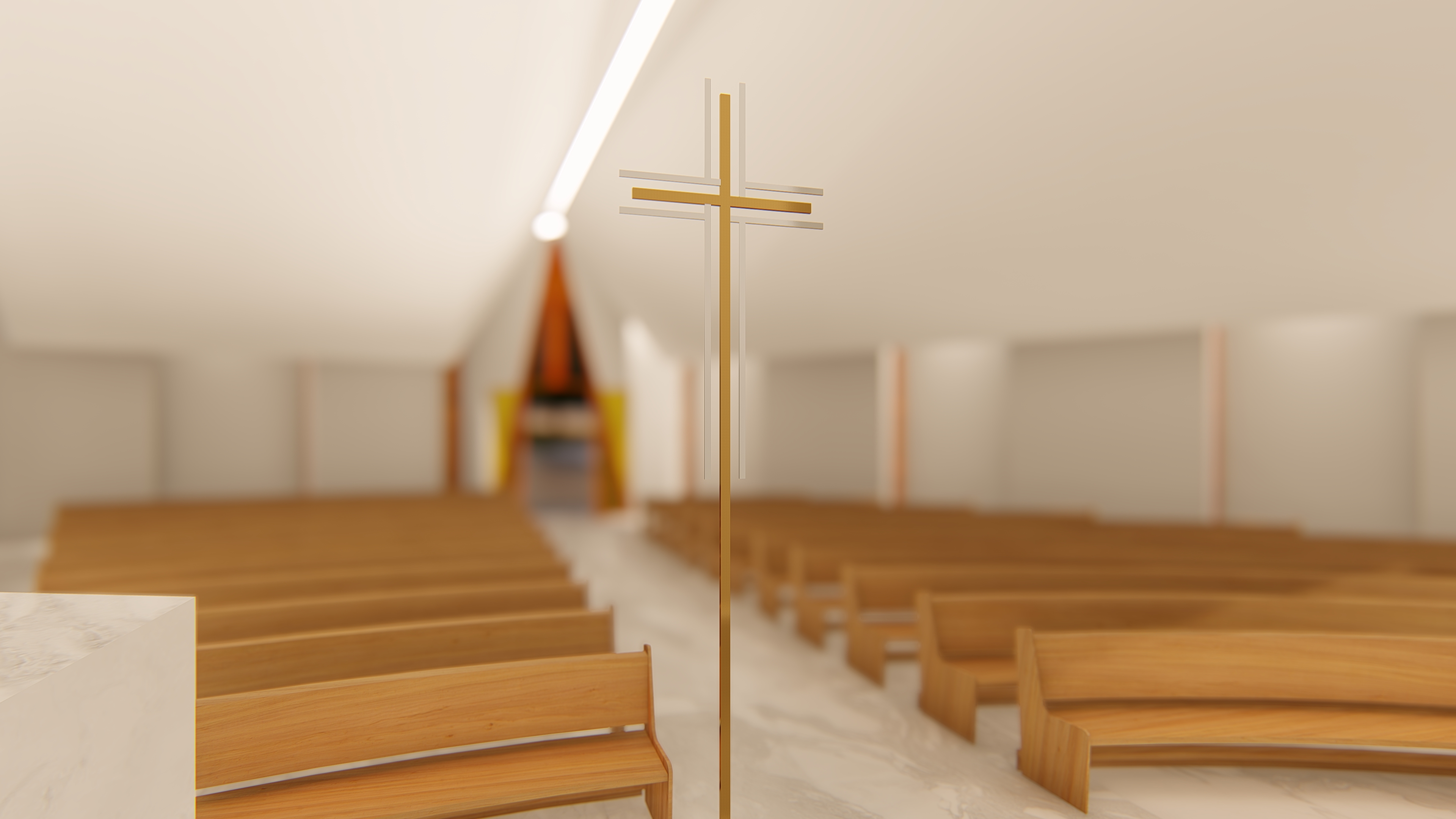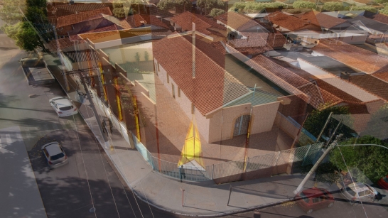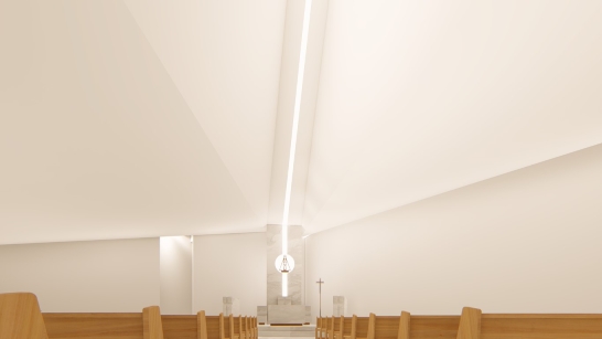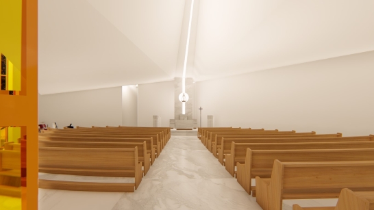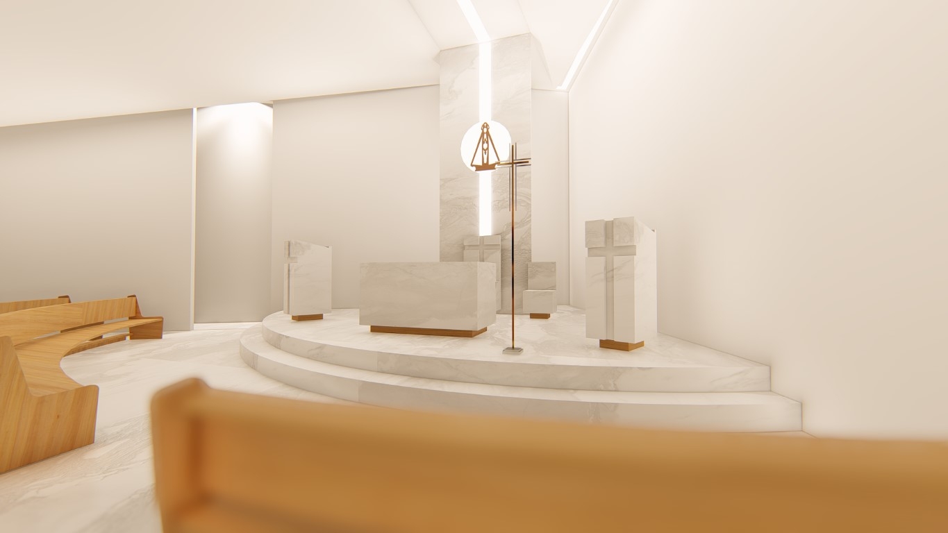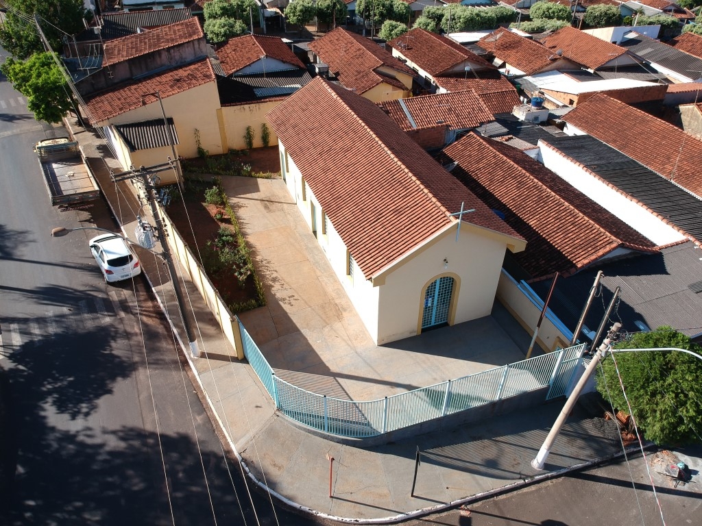 O projeto foi iniciado com a finalidade de ampliar a antiga capela, que já não acomodava mais a quantidade de fiéis, num terreno irregular, aproveitando-o ao máximo para atender às necessidades de acomodação. O principal desafio consistia em conceber um projeto de arquitetura que abrigasse um templo religioso sem se assemelhar aos galpões, comumente encontrados nesta região, em situações semelhantes de ocupação. Para superar essa questão, optamos por utilizar recuos de forma harmoniosa e ritmada, de modo a criar aberturas que permitissem uma iluminação adequada, sem comprometer a sensação de interioridade tão necessária. Além disso, a "torre" se tornou o elemento chave para alcançar os objetivos estéticos e religiosos pretendidos. É um projeto realizado para a comunidade que se reunia nos espaços externos para louvar, por não caberem na capela antiga.