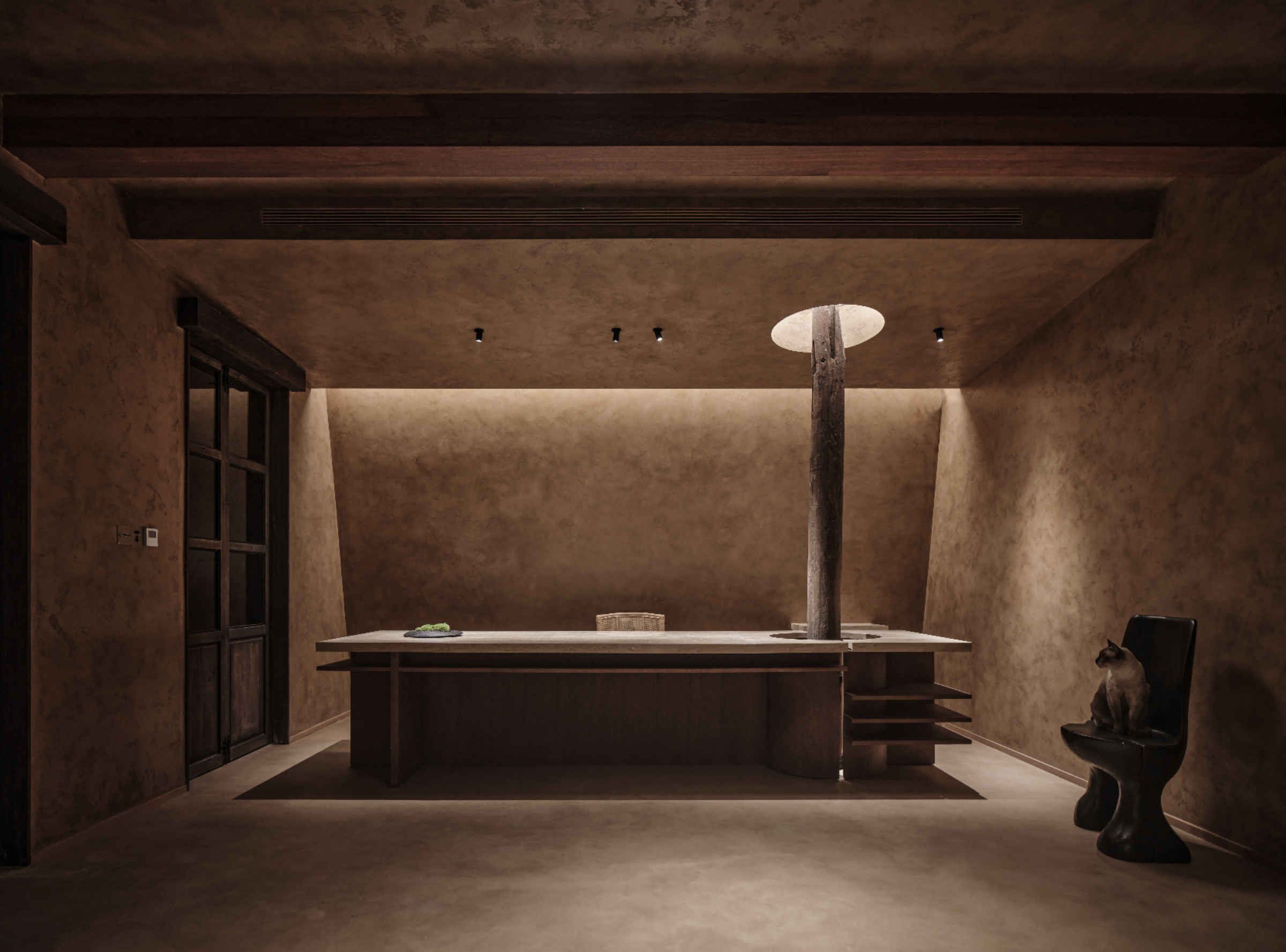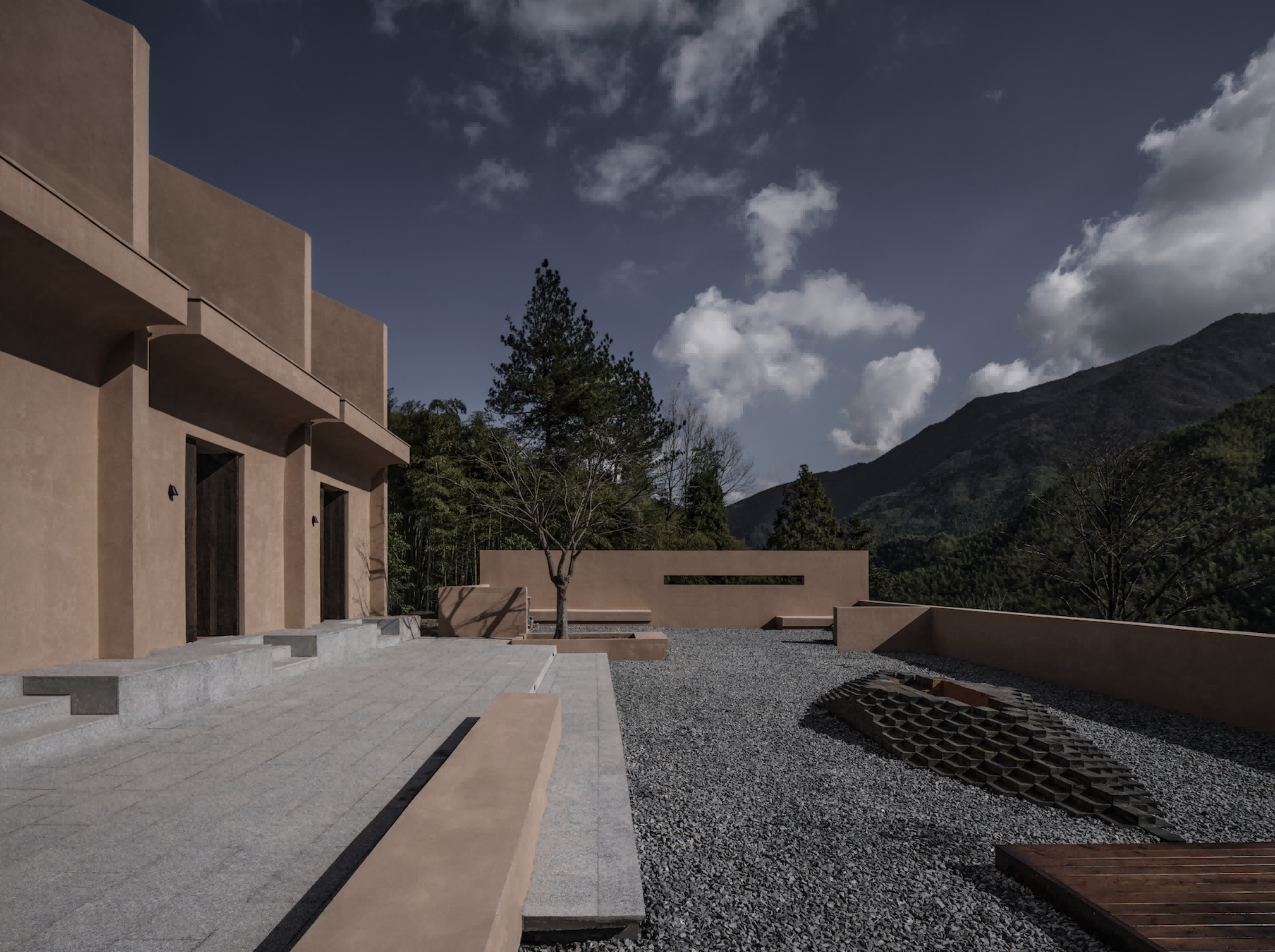 Three old houses scattered in a staggered way in the old house is located on the hillside, one brick structure, two wooden rammed earth house, the old house is surrounded by rich and diverse climate, wood and bamboo lush, a mountain view in the distance, which is the treasure of the whole design. I remember that when the manager of SHANAN invited us here for the first time, he told us about their business philosophy: mountains and water, trees and stones, all in one, full of paintings.
