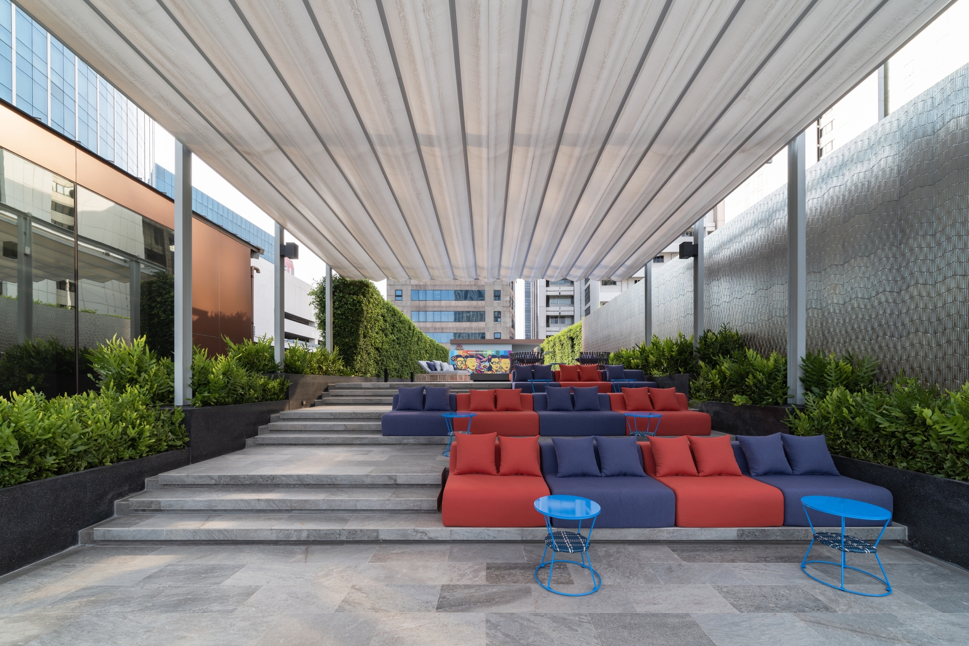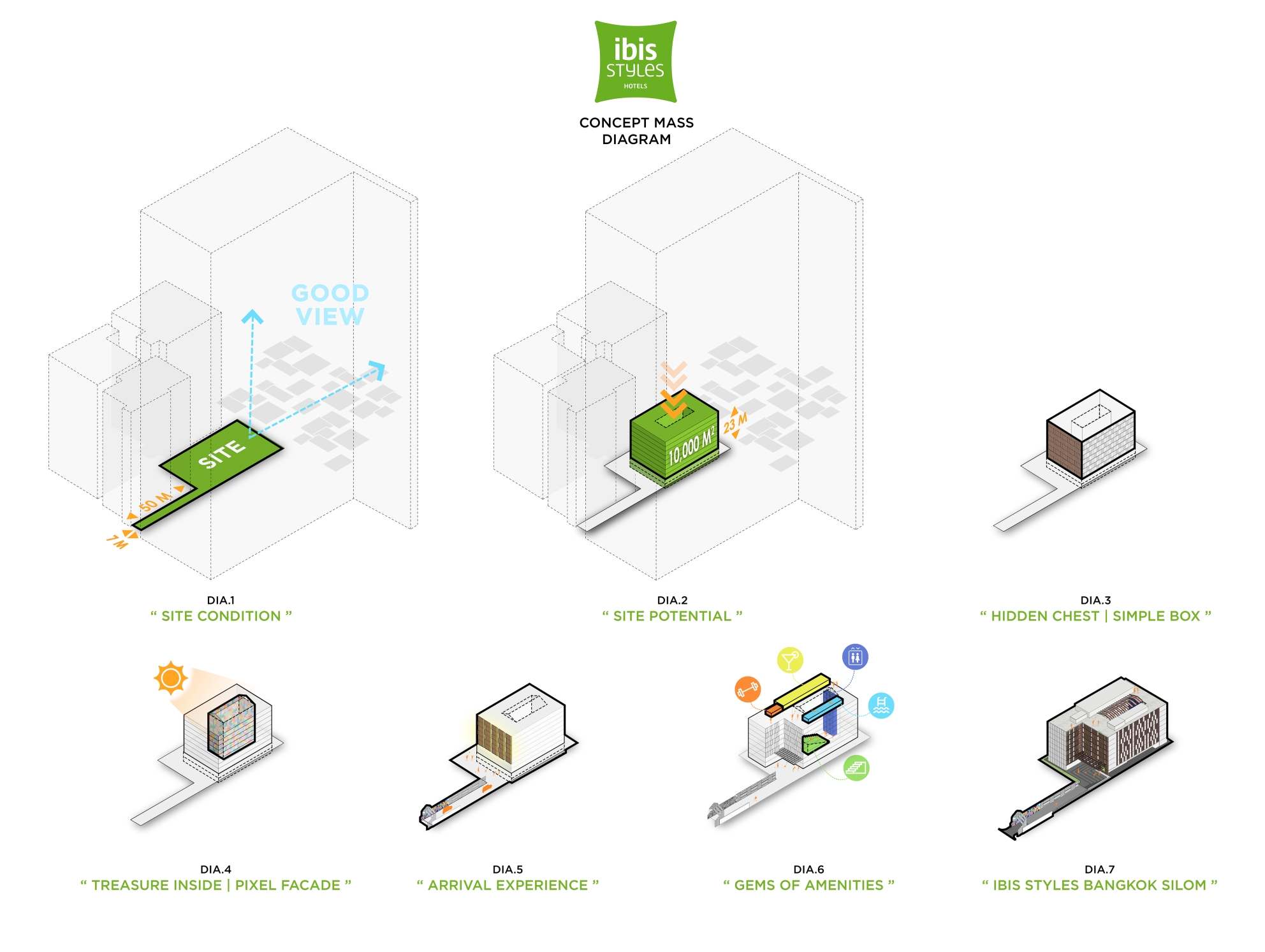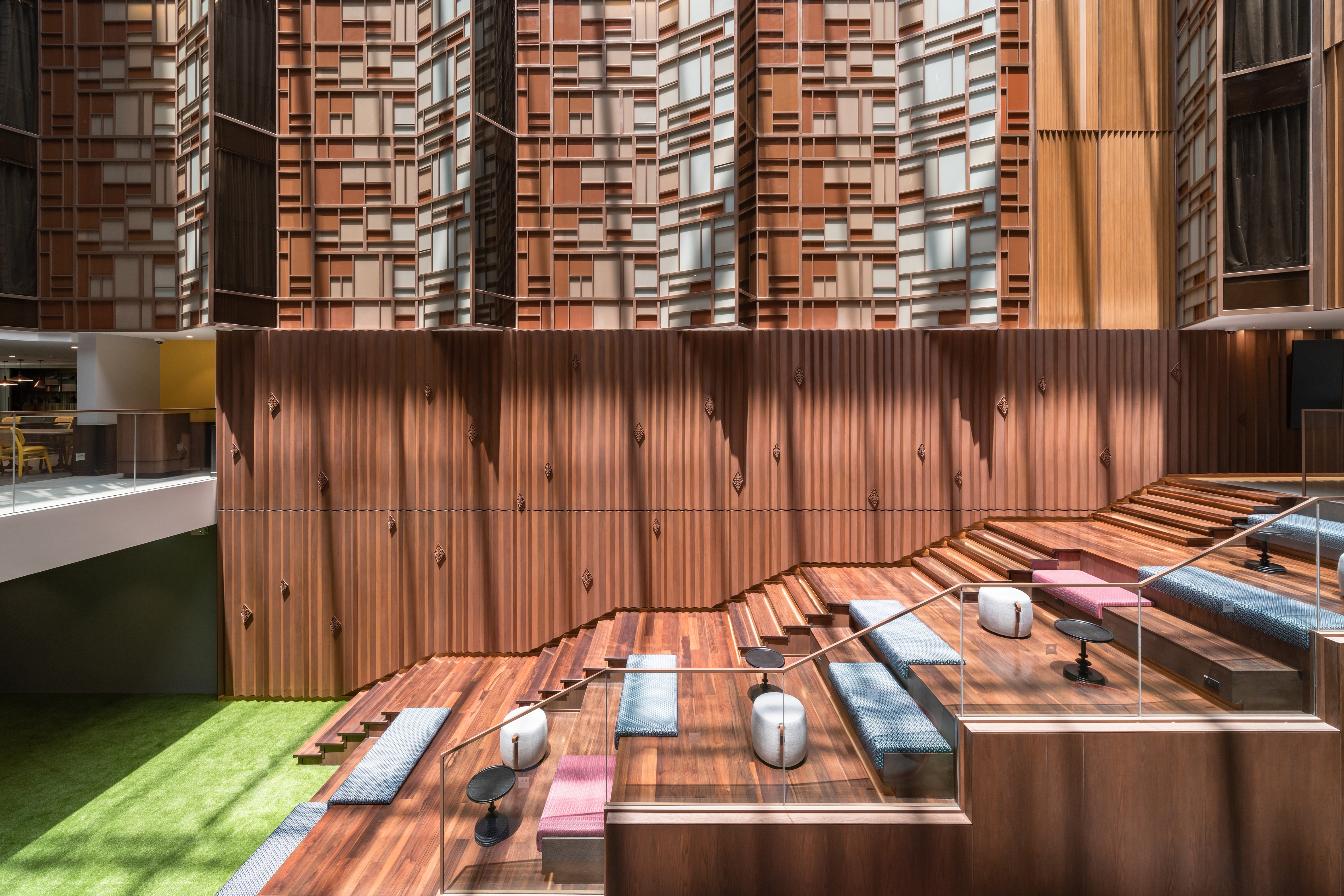 Its façade greets them with a simple box design. Strategically placed lighting subtly reveals glimpses of the treasures within, enticing guests to enter the hotel and explore its gems. Upon entering, guests are immersed in a stunning atrium, meticulously designed as the central space that connects various amenities. Each of these areas represents a precious gem within the chest, stimulating the innate desire of travellers to uncover not only the hotel but also the vibrant city beyond its walls.
