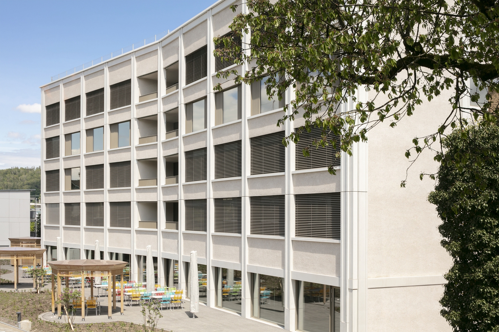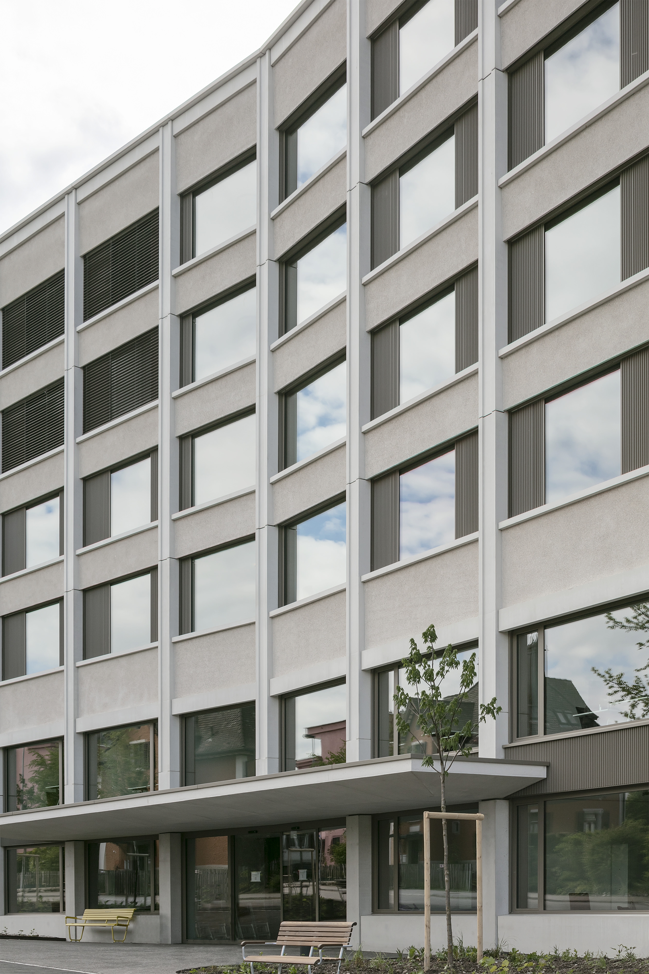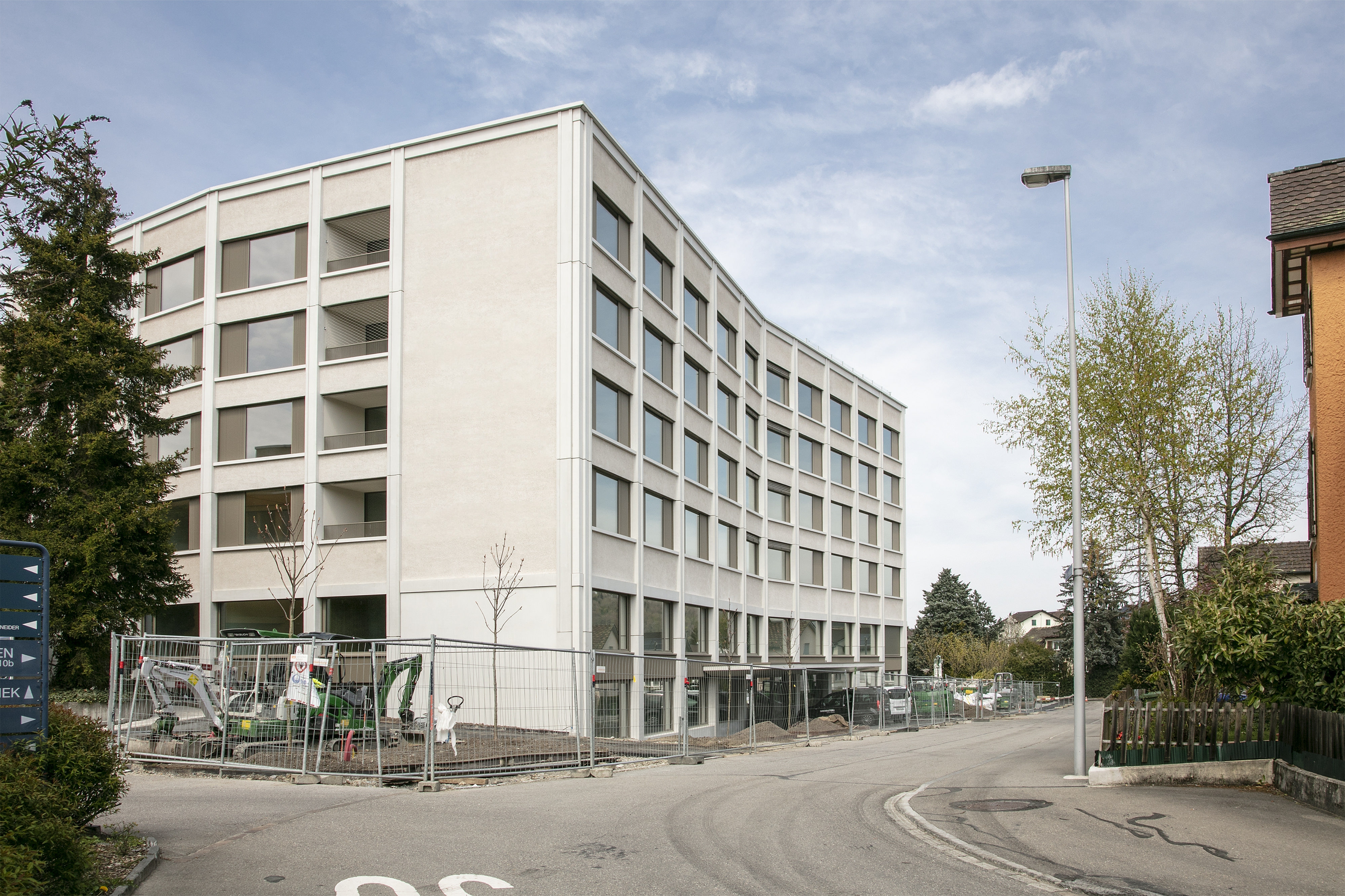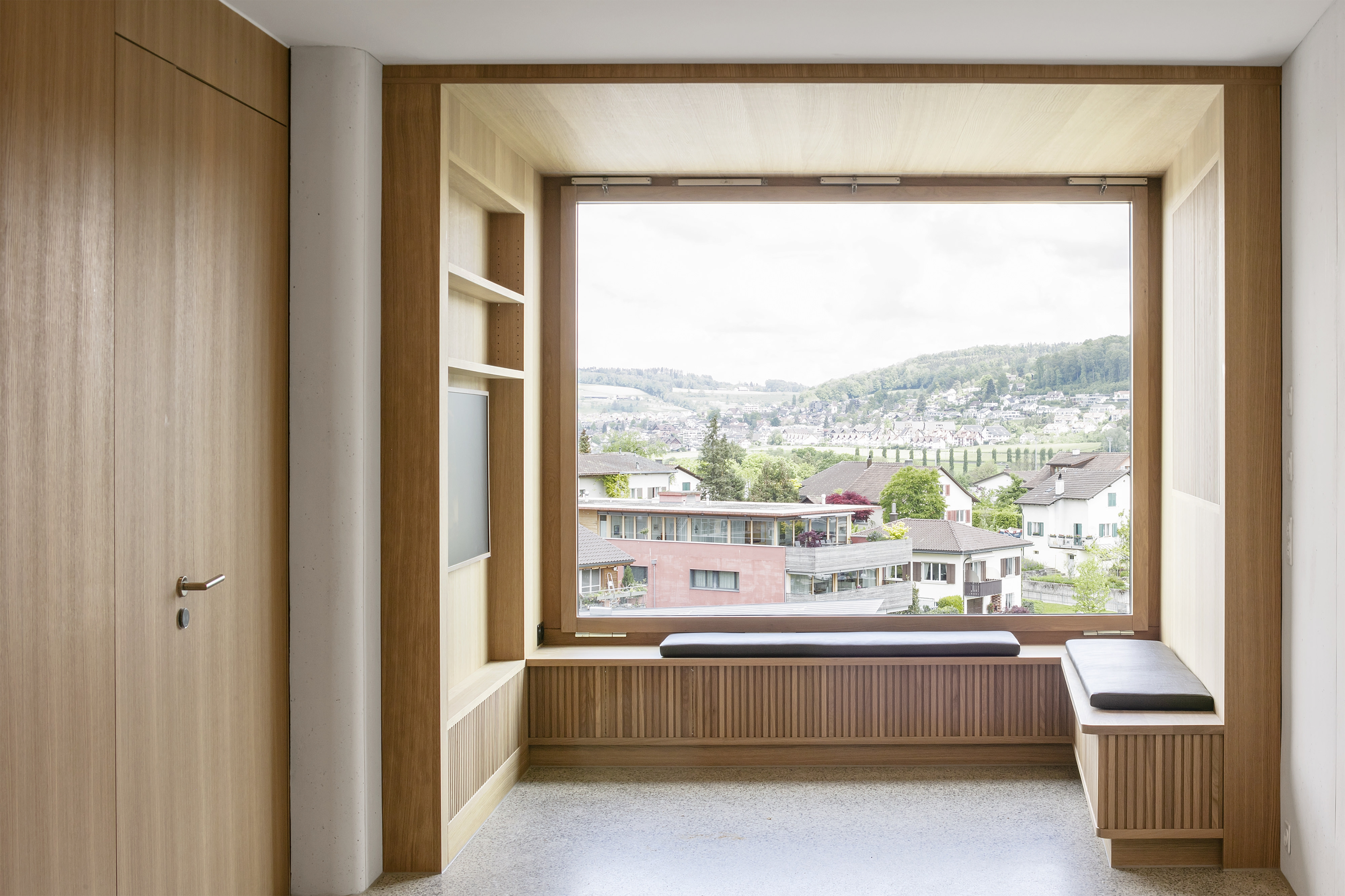 The property is centrally located in Affoltern am Albis. The complicated course of the plot boundary as well as building boundary rights with the neighborhood create tight space conditions for a new building. In addition, the site has a storey-high slope in an east-west direction. The existing nursing home will be demolished and the library will be cleared. Due to the existing situation, the new building presents itself compactly as a solitaire. The differently polished outer edges of the volume react on the one hand to the situation and on the other hand follow the functions of the building. The inwardly laced "center" of the new building symbolizes the center of the new retirement home. This is where the public facilities are located: Entrance with reception, foyer with restaurant and café on the first floor, and living and dining rooms on the nursing floors. The openly designed rooms allow for flowing room transitions in an east-west direction with optimal lighting conditions.