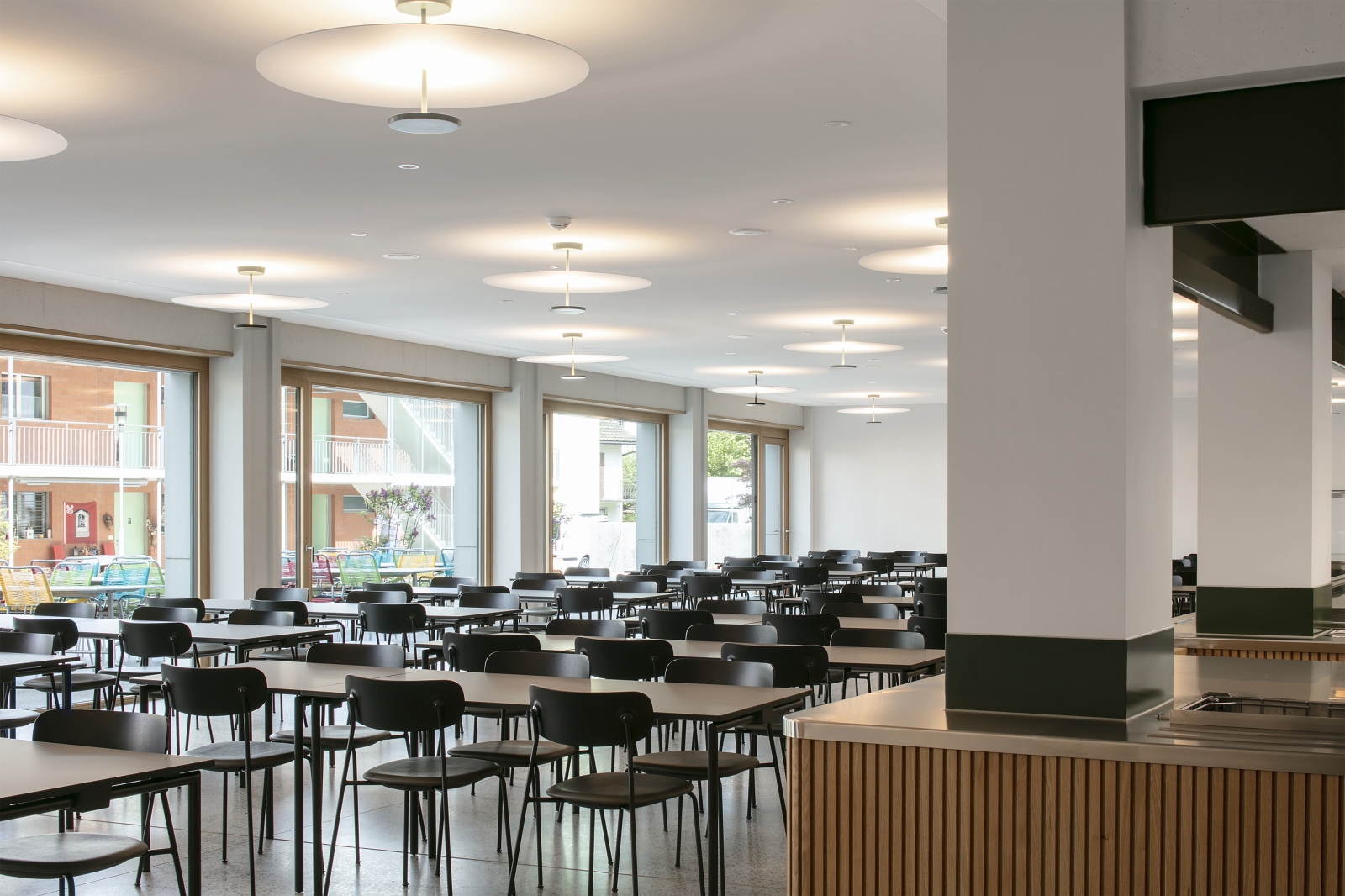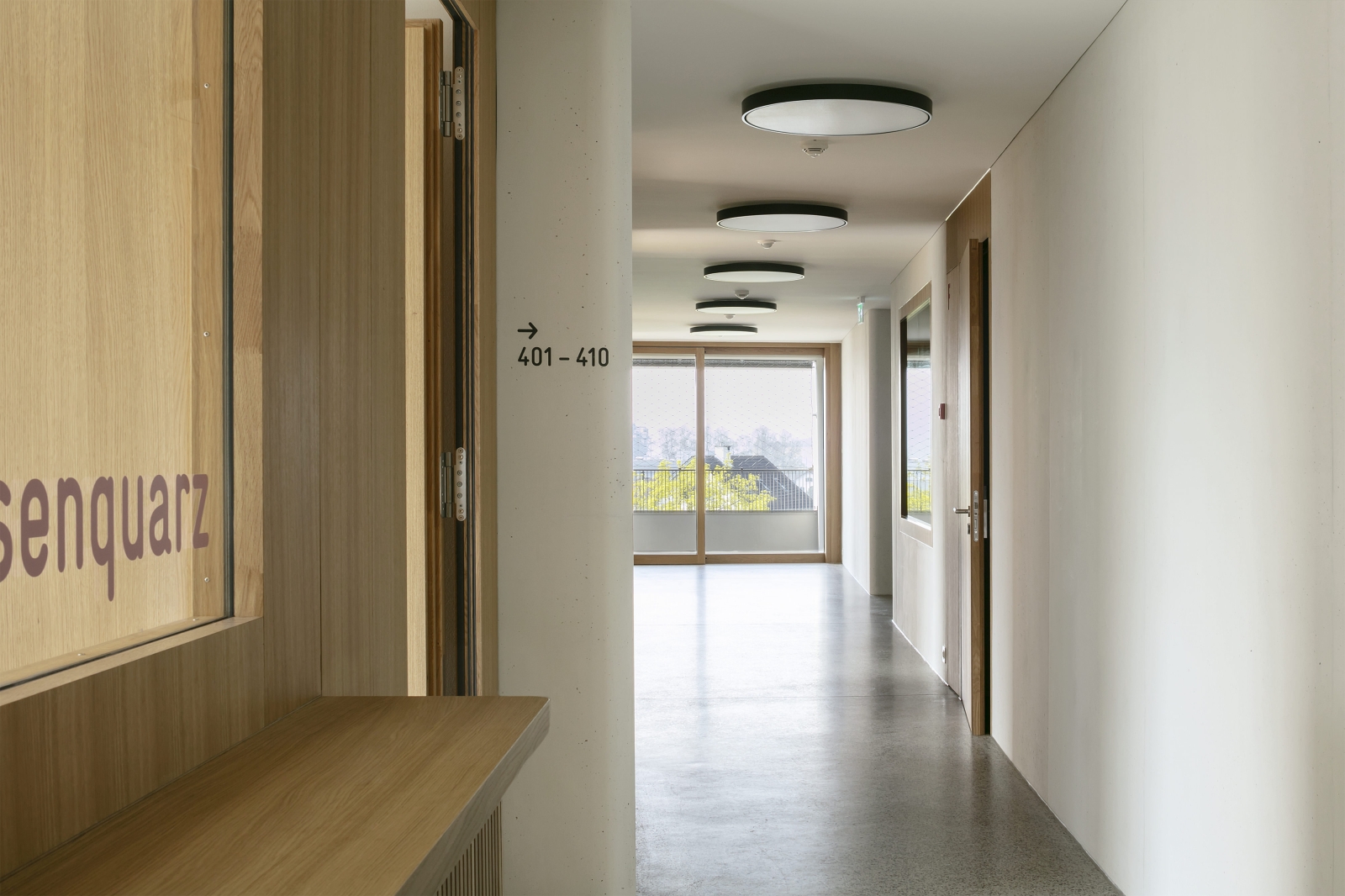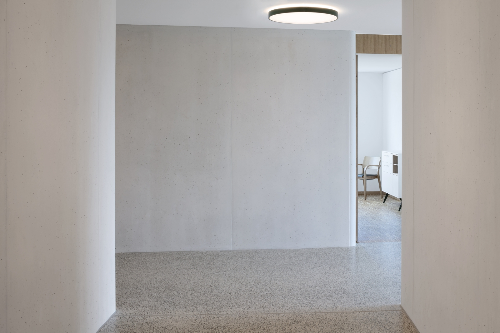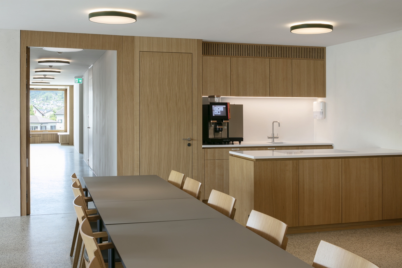 The property is centrally located in Affoltern am Albis. The complicated course of the plot boundary as well as building boundary rights with the neighborhood create tight space conditions for a new building. In addition, the site has a storey-high slope in an east-west direction. The existing nursing home will be demolished and the library will be cleared. Due to the existing situation, the new building presents itself compactly as a solitaire. The differently polished outer edges of the volume react on the one hand to the situation and on the other hand follow the functions of the building. The inwardly laced "center" of the new building symbolizes the center of the new retirement home. This is where the public facilities are located: Entrance with reception, foyer with restaurant and café on the first floor, and living and dining rooms on the nursing floors. The openly designed rooms allow for flowing room transitions in an east-west direction with optimal lighting conditions.
