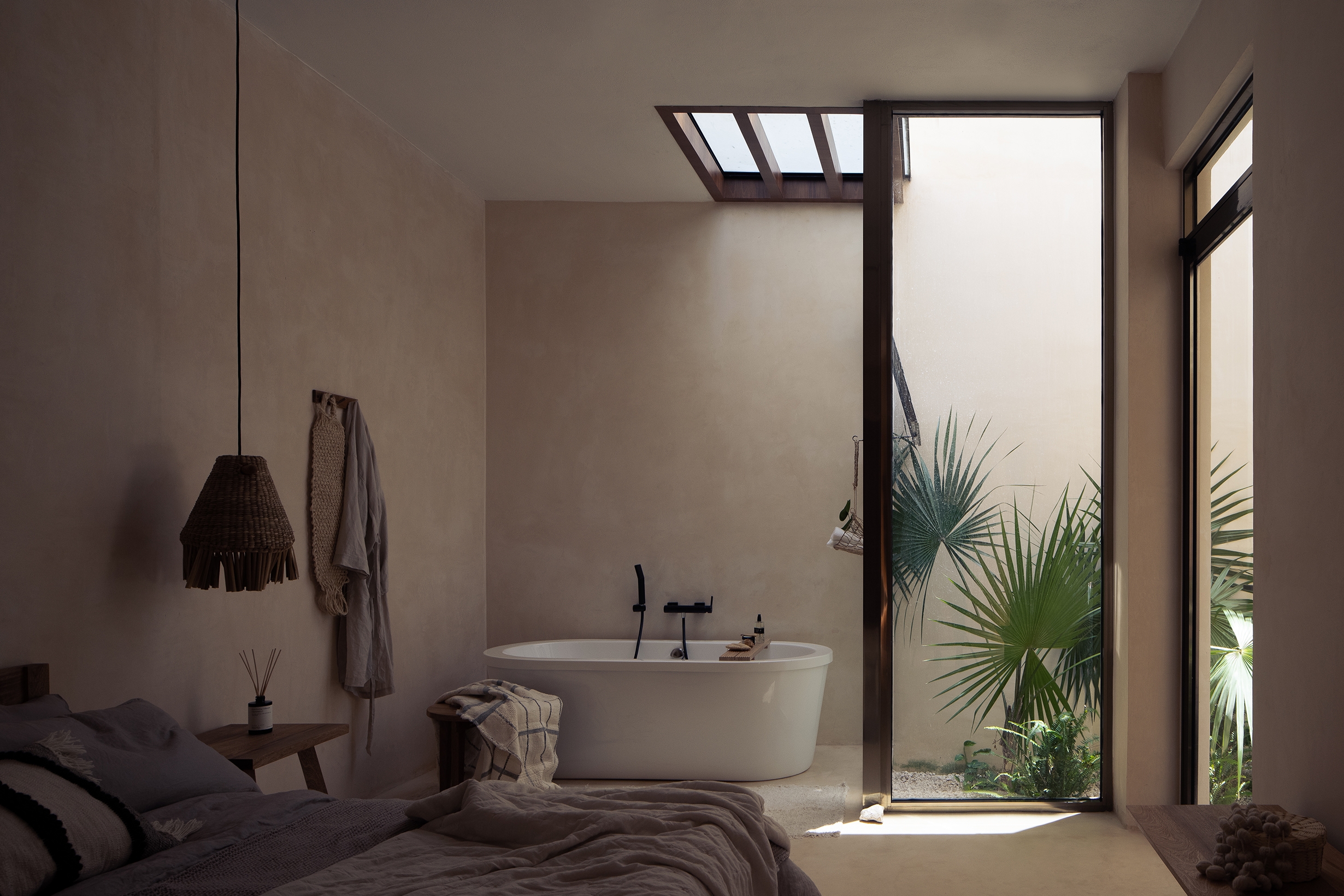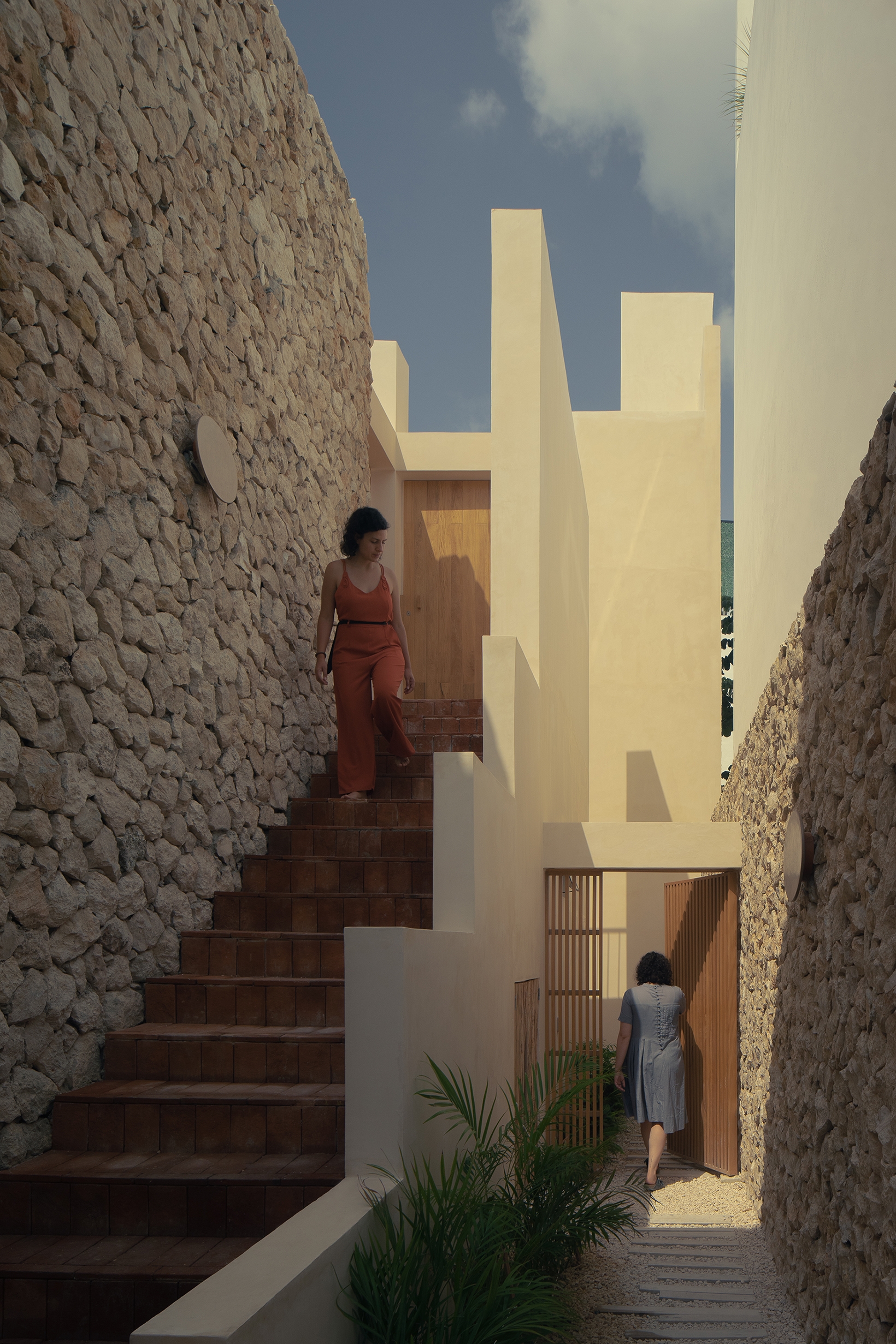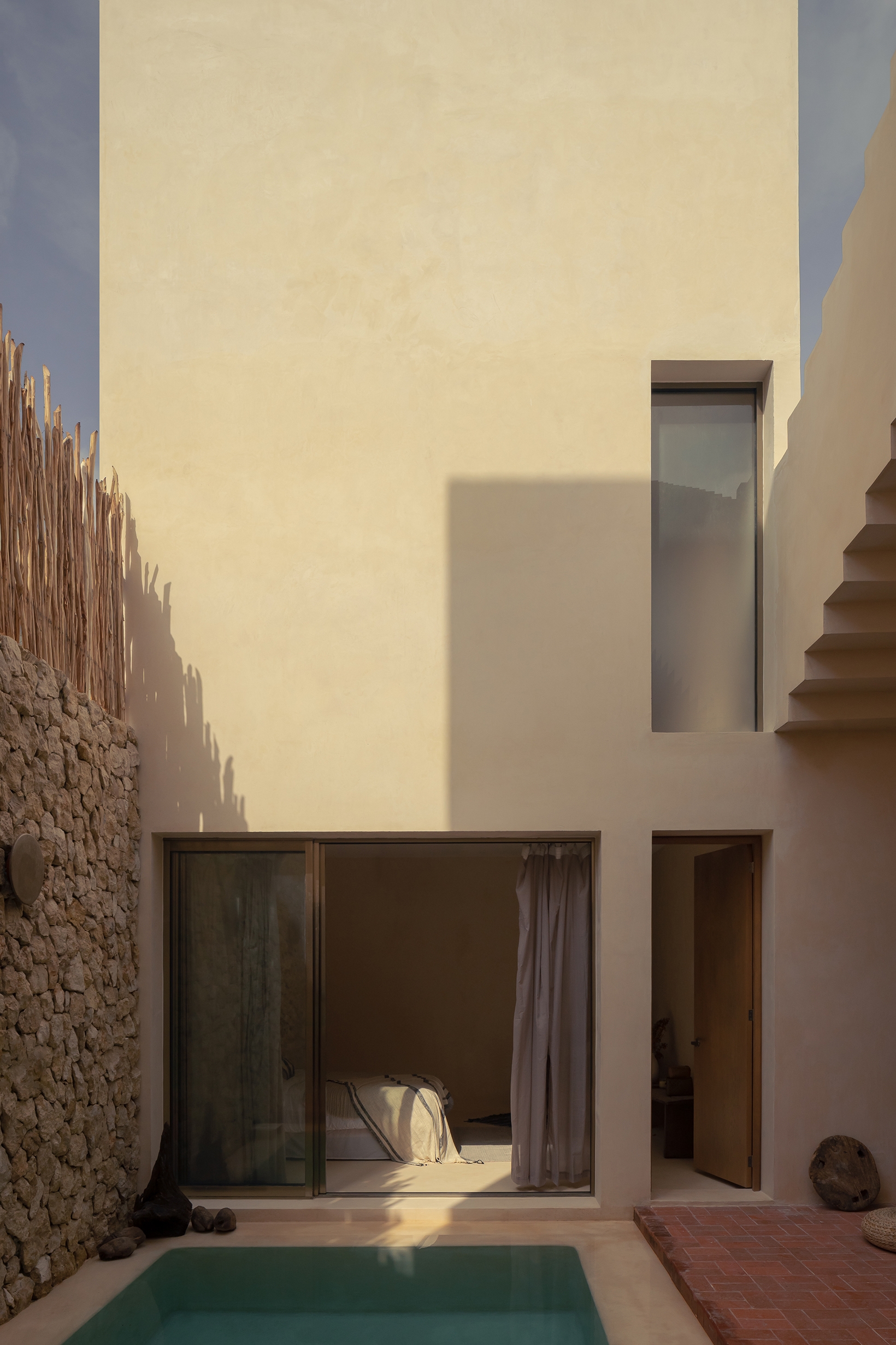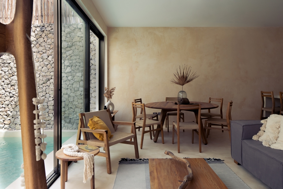 With the idea of experimenting views and natural conditions as plainly as it could be, it was built with local materials: chukum stucco for the floors, walls and pools,