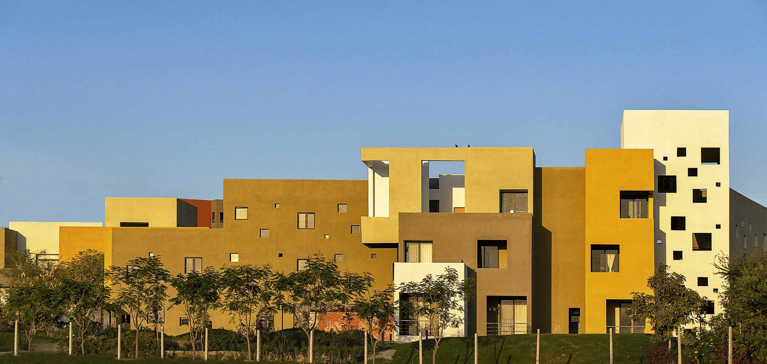 Ras houses is composition of rectilinear volumes rendered in bright colors derived from the traditional Rajasthan color palette adding to the contextual response of the design to its location. The design is responsive to the desert climate and the culture of Rajasthan in addition to being site specific & imbibing the old Indian city’s organic character. It is a low rise housing solution in response to its location, the climate & tradition creating a contextual & sustainable design.