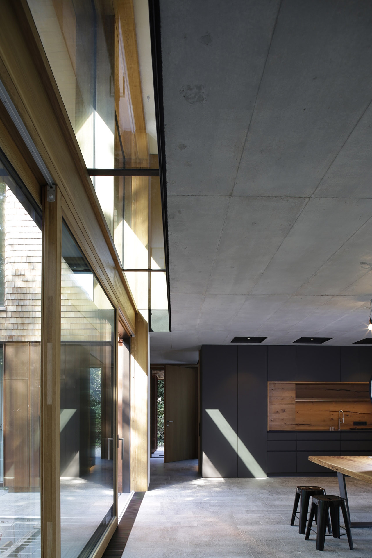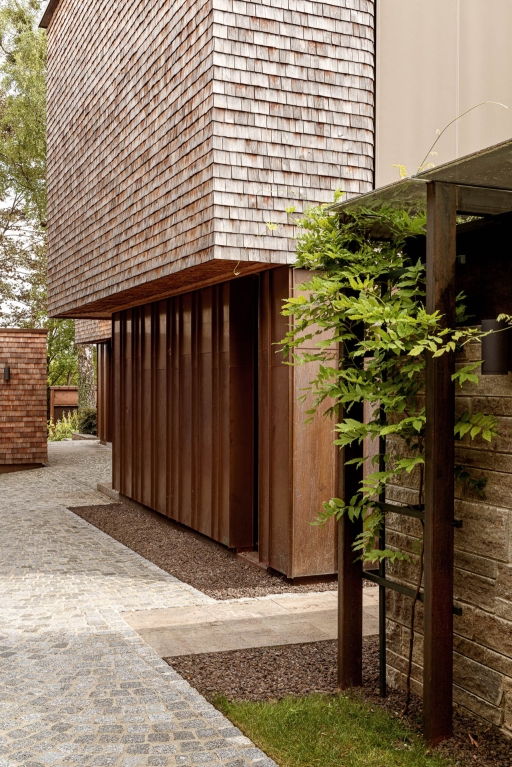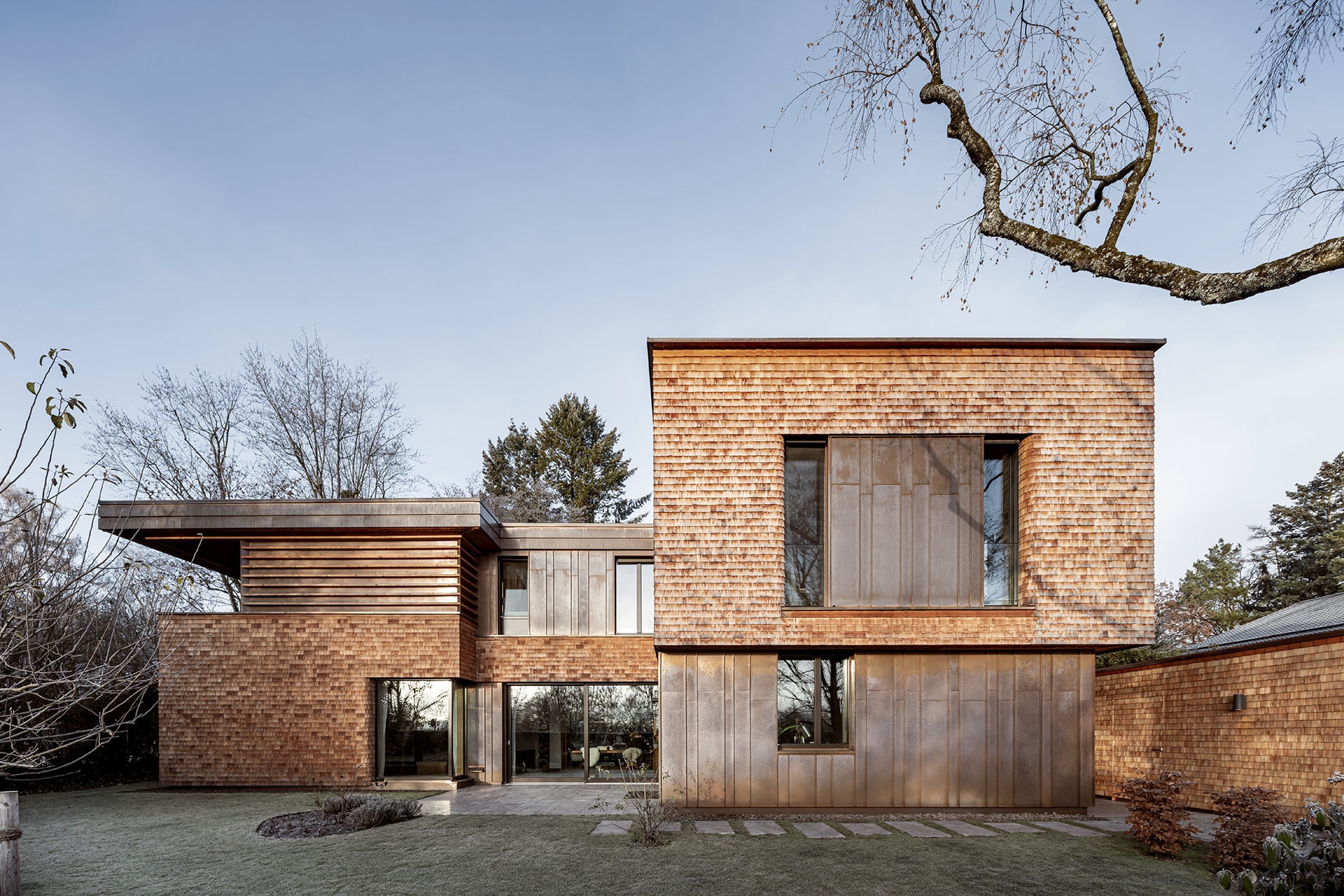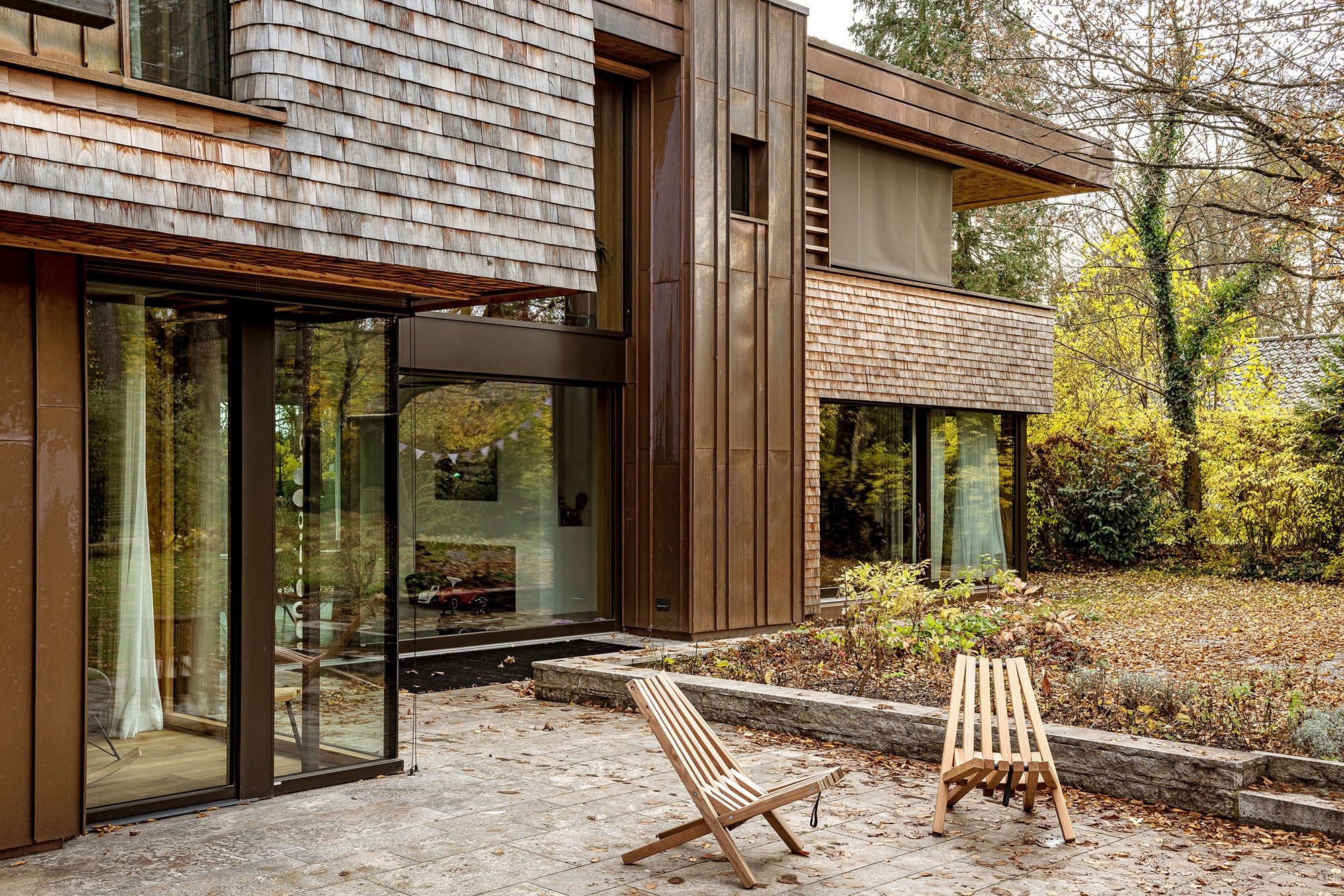 The plastic beauty of the building is architecturally designed in perfect harmony with an existing house tree and the needs of a patchwork family of 5 Kids.