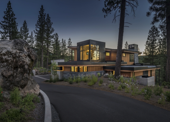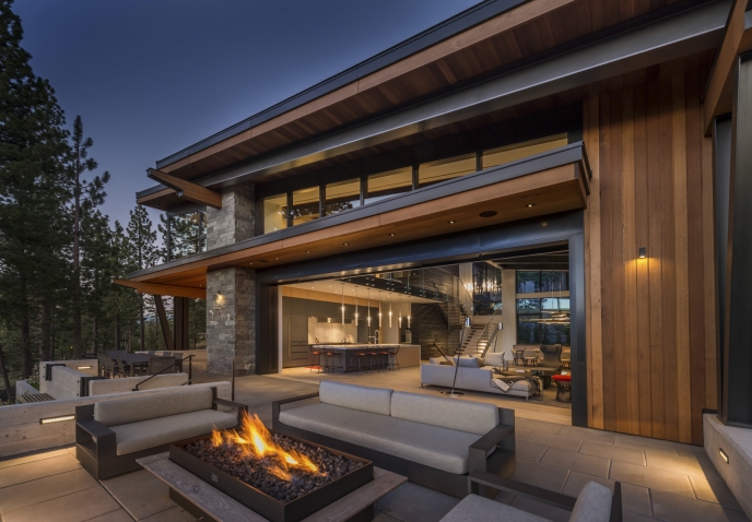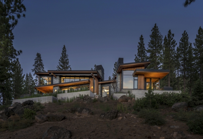 With commanding views of the Carson Range and Pacific Crest, this mountain retreat embraces its exquisite surroundings. Distinctive materials, unique forms, and superb workmanship distinguish the hillside home, which overlooks the Martis Camp