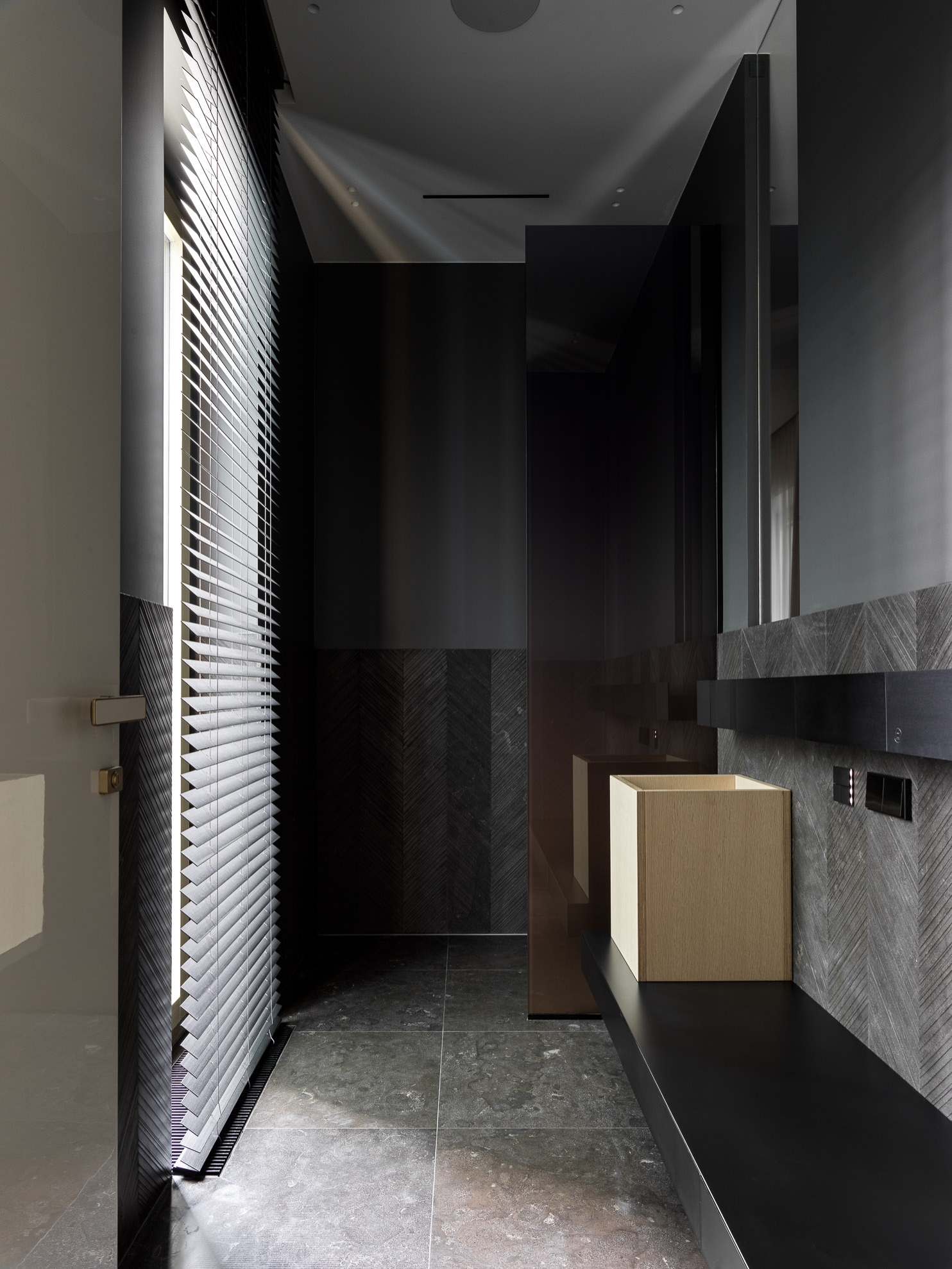 While working with materials, it was important to focus on the contrast of textures and shades. It's pleasant to tactilely feel the difference between warm leather, cold metal, textured wood, and stone.