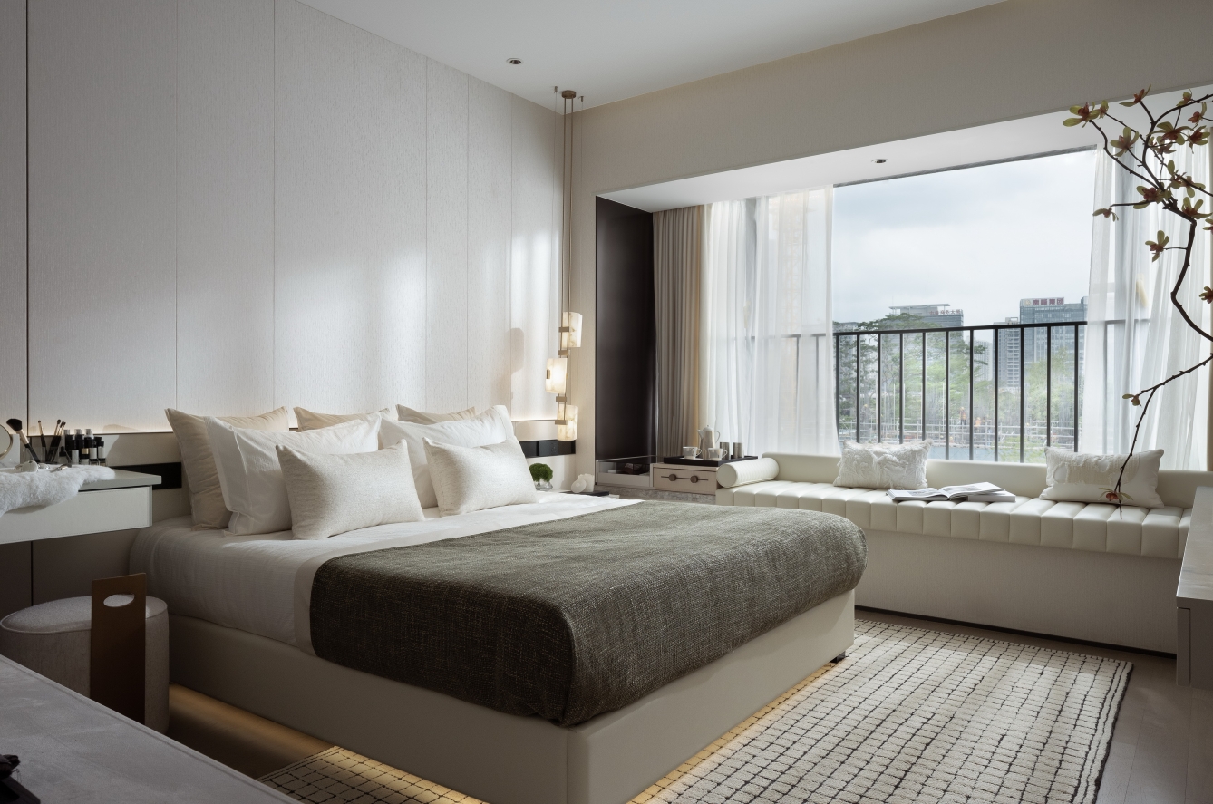 The project draws on the design concept of AMAN, extracts inspiration from nature, and constructs form through material, color and texture. The light colors, the warmth of wood, the texture of marble, soft sofas and carpets, and gentle lighting all make the entire space calm,