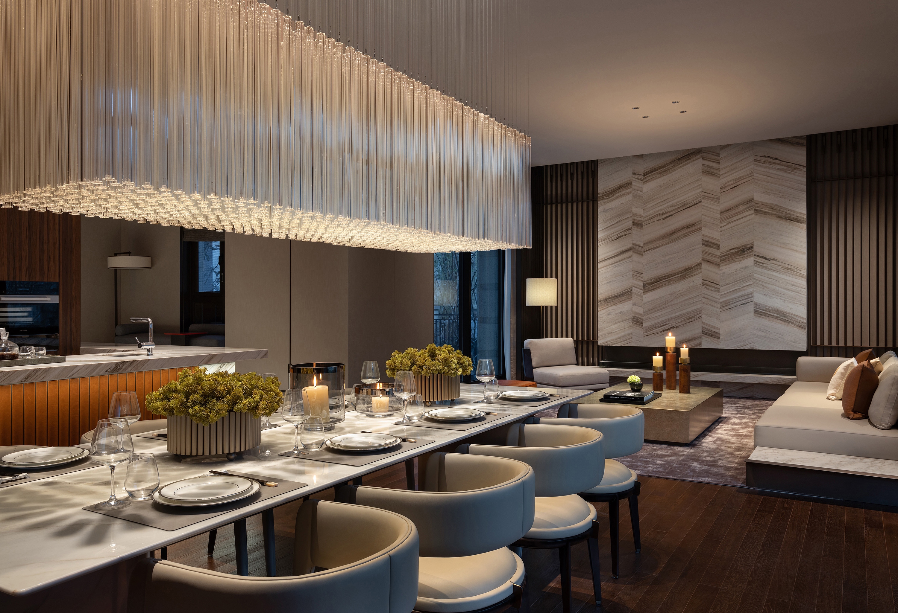 The Tian’an Villa Show Flat is located in the core hinterland of West Taihu Lake in Changzhou. Based on local thinking, and the characteristics of the original water system and region, guided by forward-looking thinking, it combines modern design techniques with the beauty of hotel style, aiming to constantly exploring the ultimate residence in the natural context.