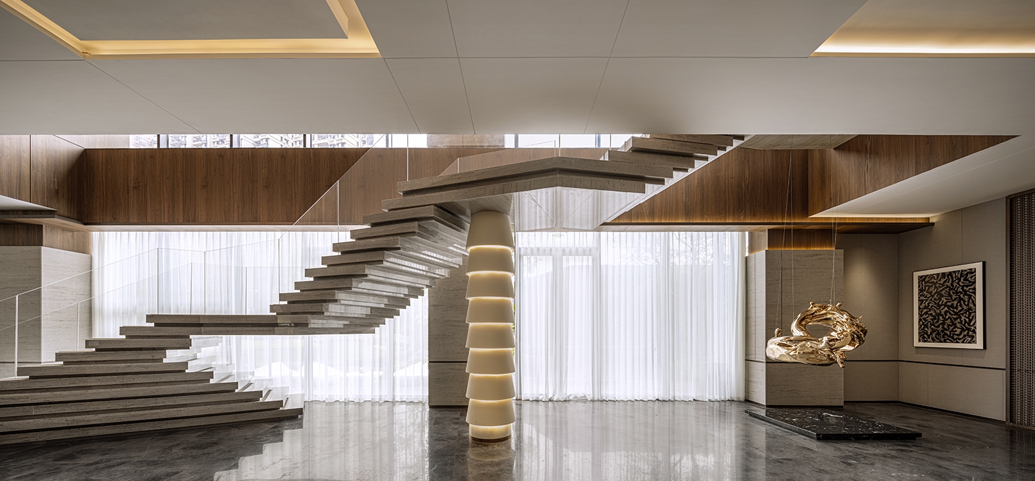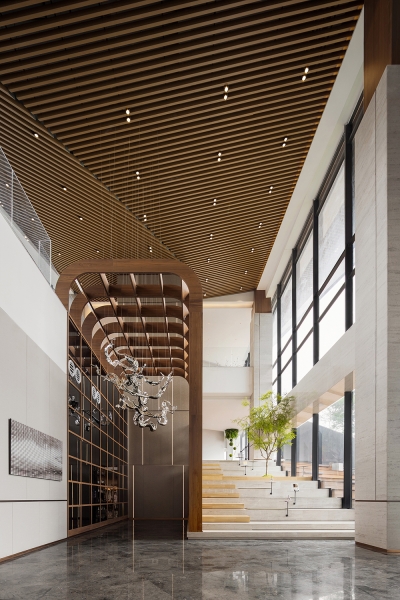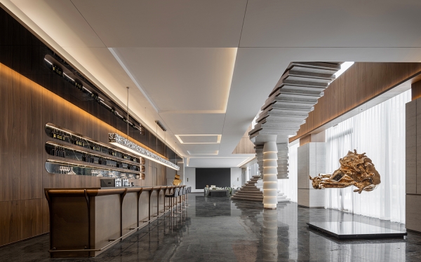 The Yong River, the mother river of Nanning, China, has nurtured this rich and humanistic city through its long-standing mountain and river culture. This is a sales office design project, the designer cleverly extracted the element of water into the space, to integrate the local style and aesthetics into life, shaping a humanistic and elegant mood. As the project is located in a high-end and elite community, the residents have paid close attention to the quality of life and the surroundings. Hence, the design team carefully selects each piece of furniture and manages the quality of each product, shaping a modern, light, luxurious, and elegant living space.