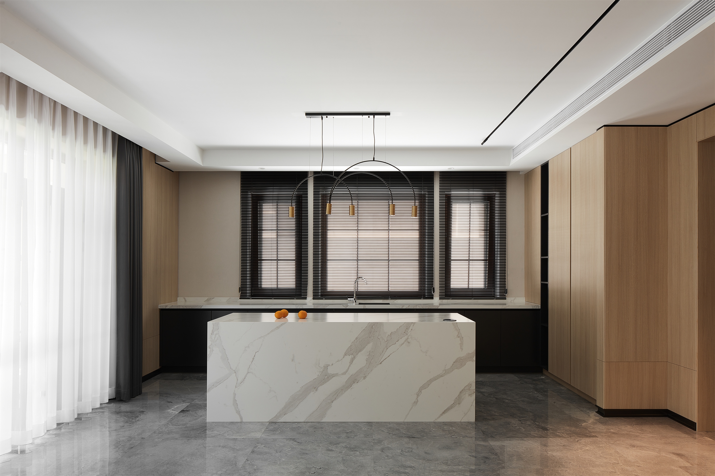 Excavating the backfilling soil around the east and west sides of the lighting well to the same height as the garden, reducing the height of the lighting well. The original lighting well is 3 meters higher than the courtyard, causing the courtyard to be incomplete and the front courtyard to be disconnected, resulting in poor indoor lighting. After renovation, the front and back of the courtyard were connected and the structure was complete, completely liberating the lighting and ventilation of the original underground floor, becoming a real garden layer. The lighting of the original second underground floor was greatly improved. The original kitchen and dining room were on the first floor. After solving the lighting and ventilation issues in the garden floor, the kitchen, dining room, and living room are all moved to the garden floor.The dining room is transformed into an open to below space, plus the open to below space in the living room, in this way, the longest living space as garden floor, first floor, and second floor will have good cyclone flow. Dining on the garden floor adds a lot of picnic-like fun , making it closer to nature, and family communication in the living room.