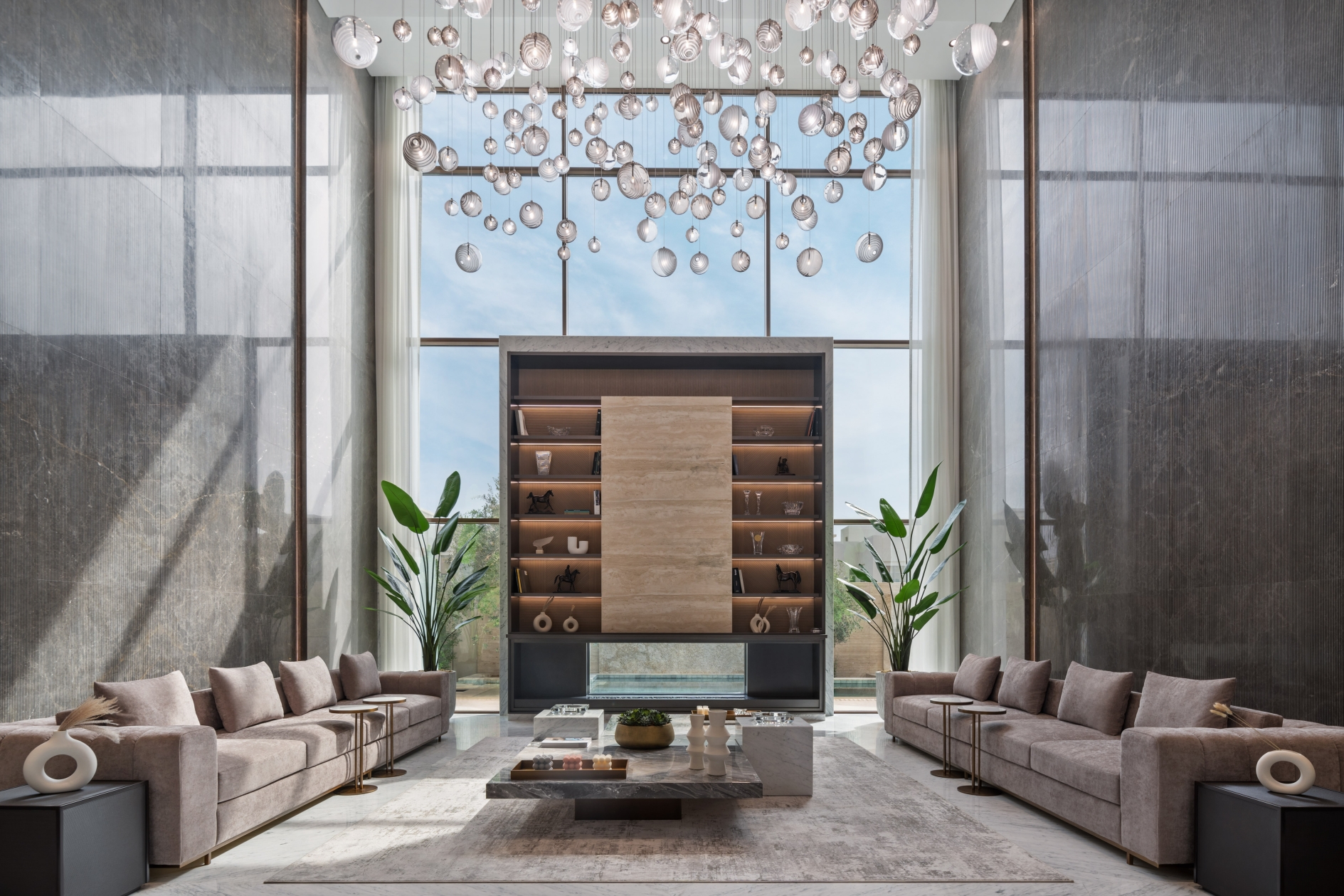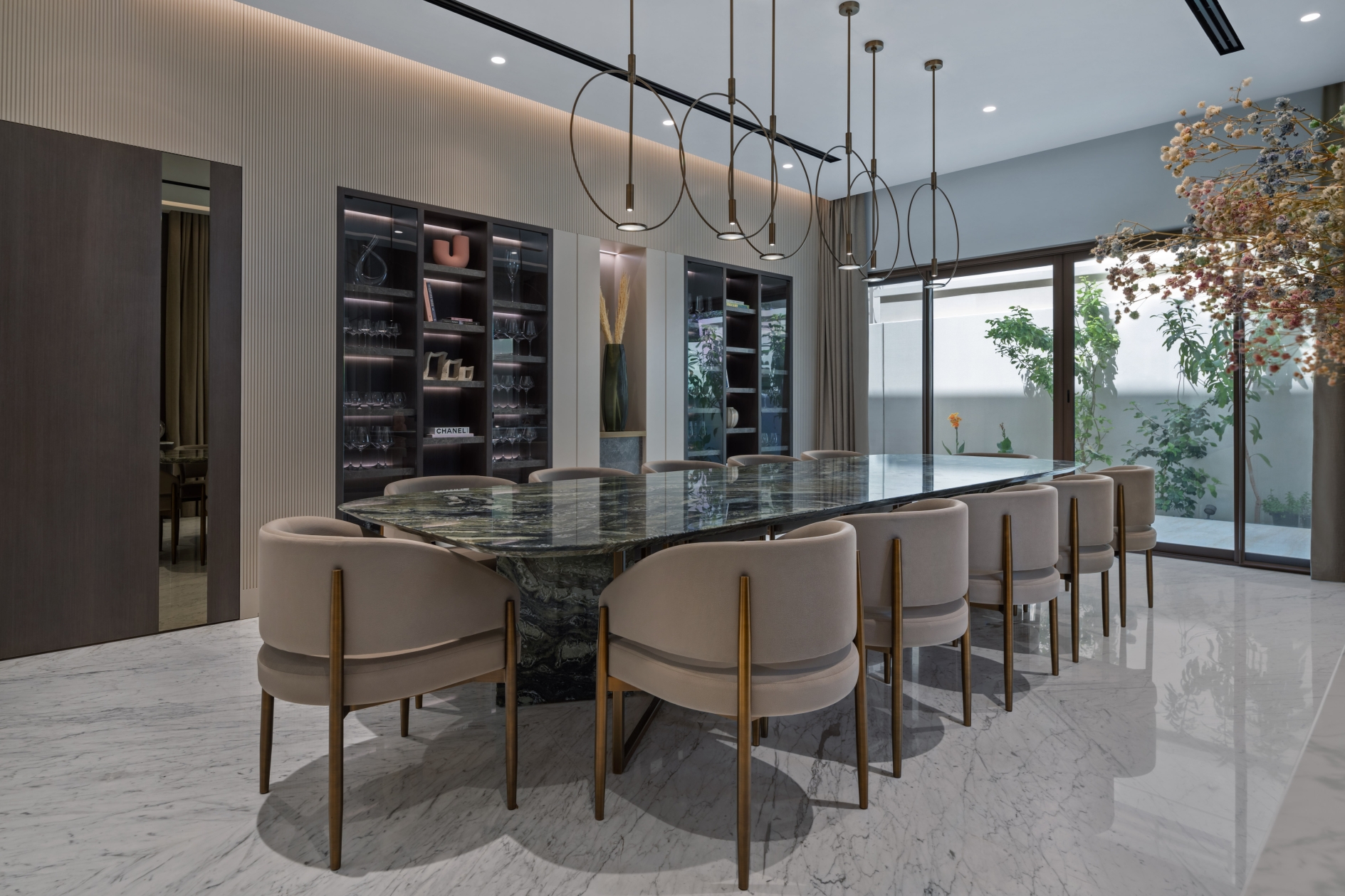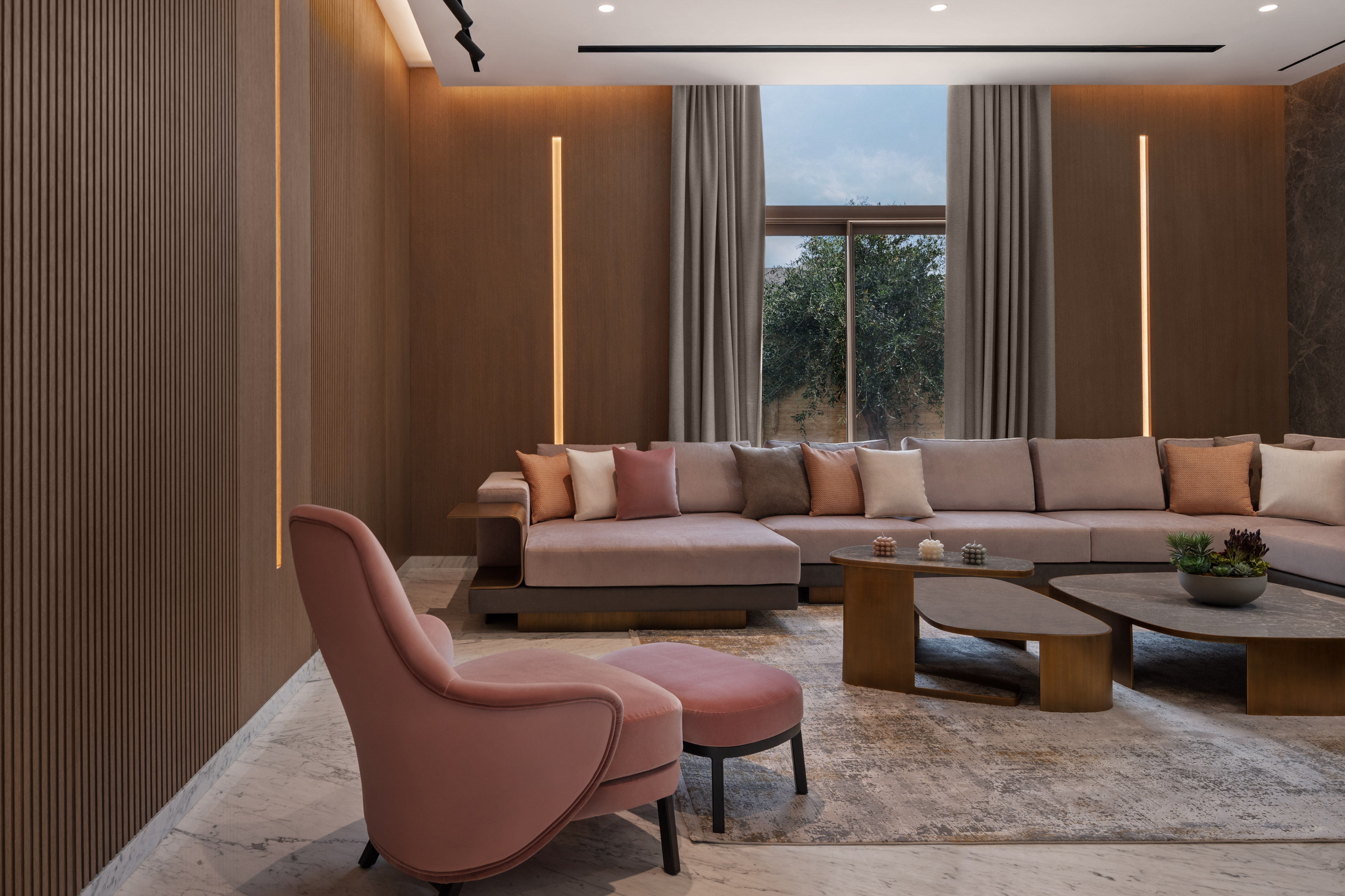 Being a marble lover, the client wanted to create depth and various tones and atmospheres singularly through the use of marble. They wanted to emphasize themes within the different spaces, accommodating their unique lifestyle. In response to the client’s needs and aspirations, Villa K’s aesthetic is one of ‘altered materiality’ – an avant-garde approach to deal with various materials together in one spatial complexity. Throughout the design process, the four natural elements were present, taking part in the design decision process and iterative methodology.