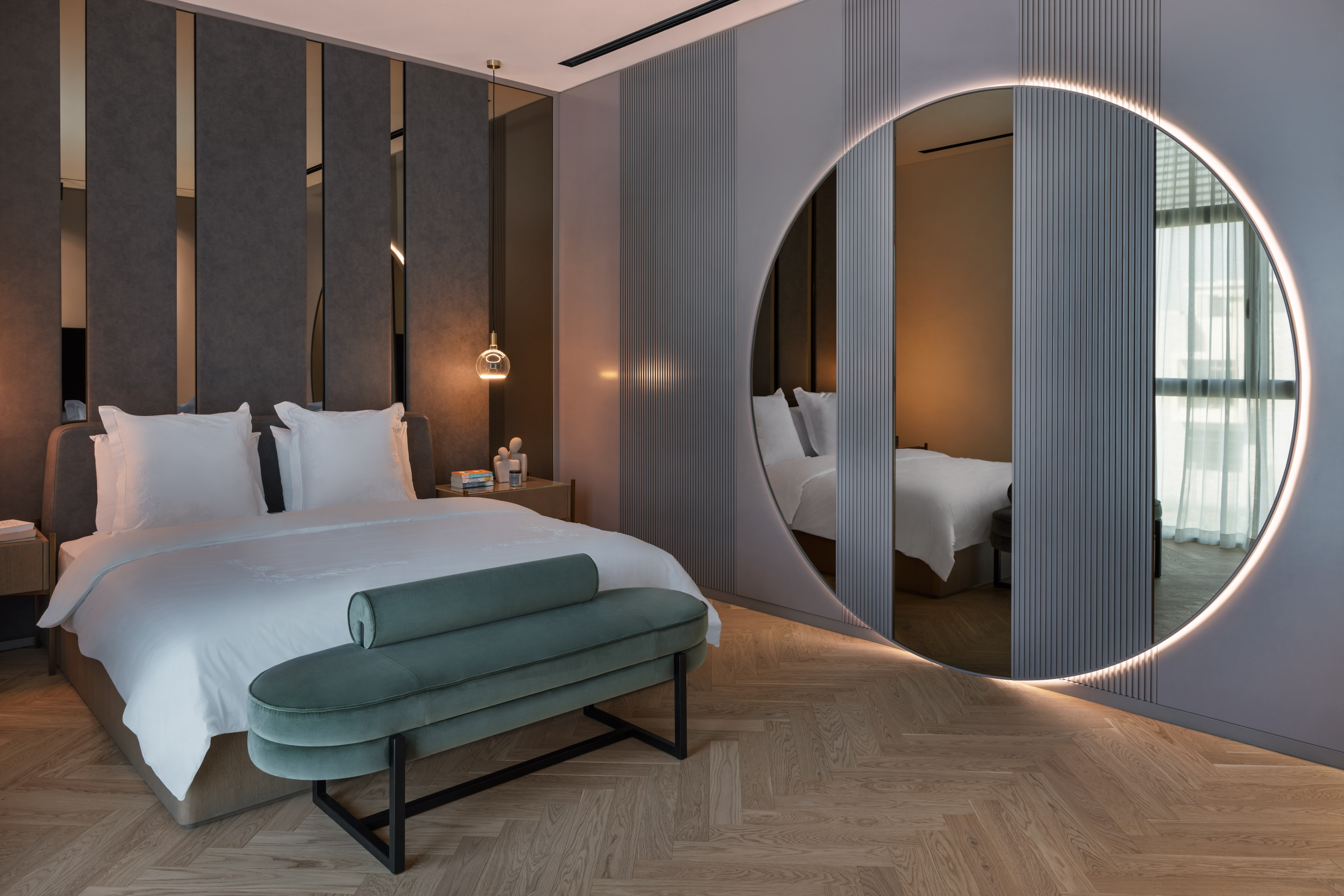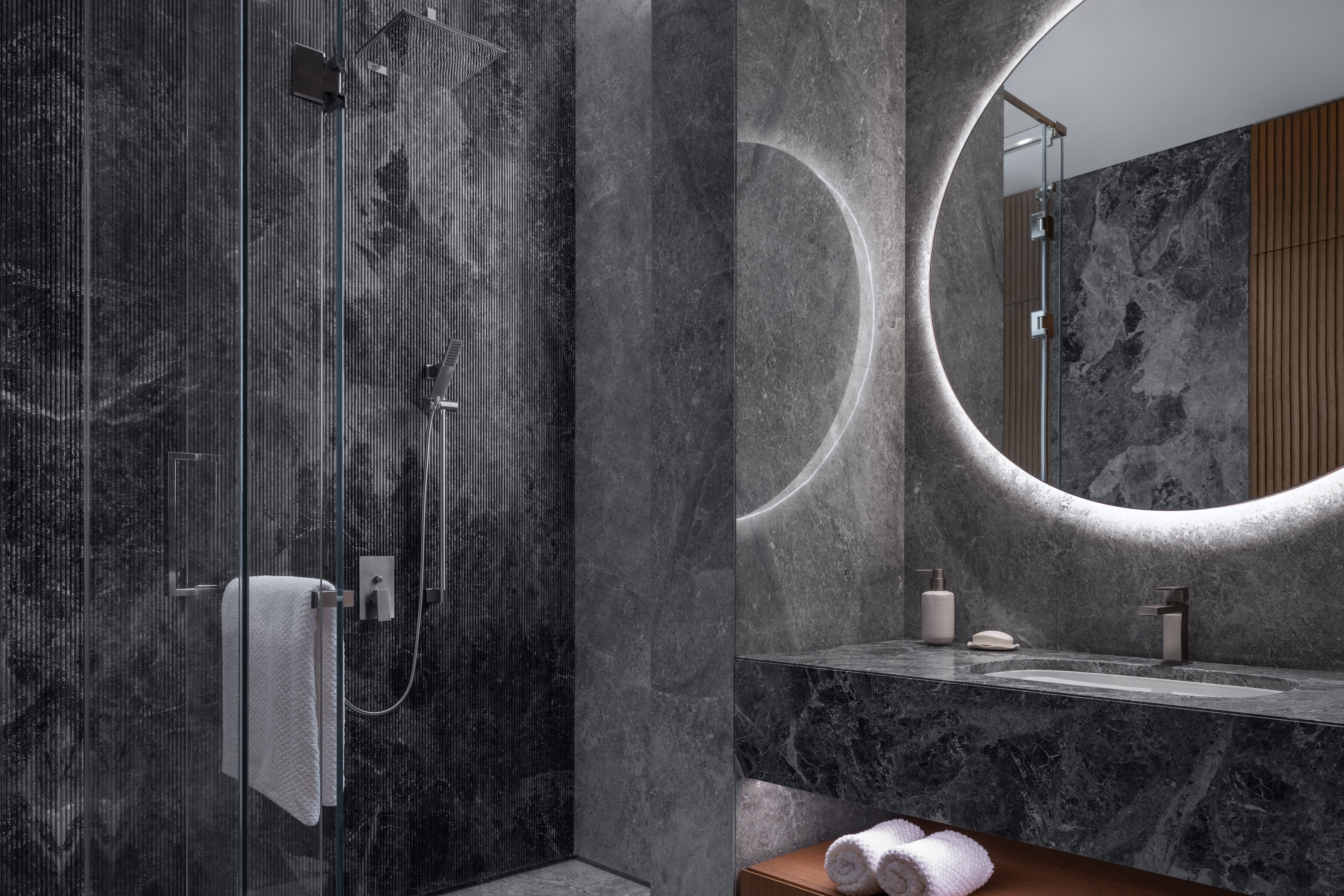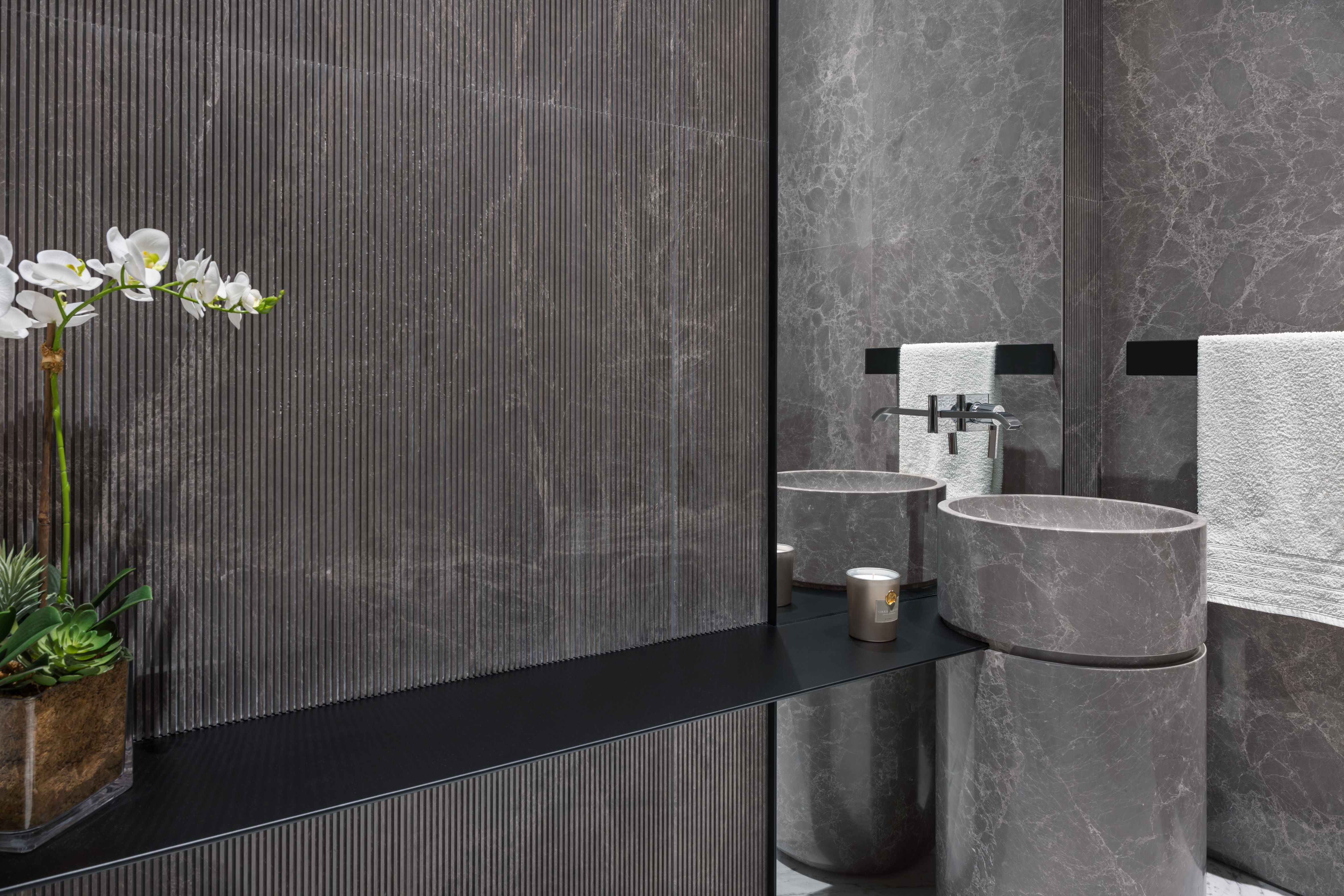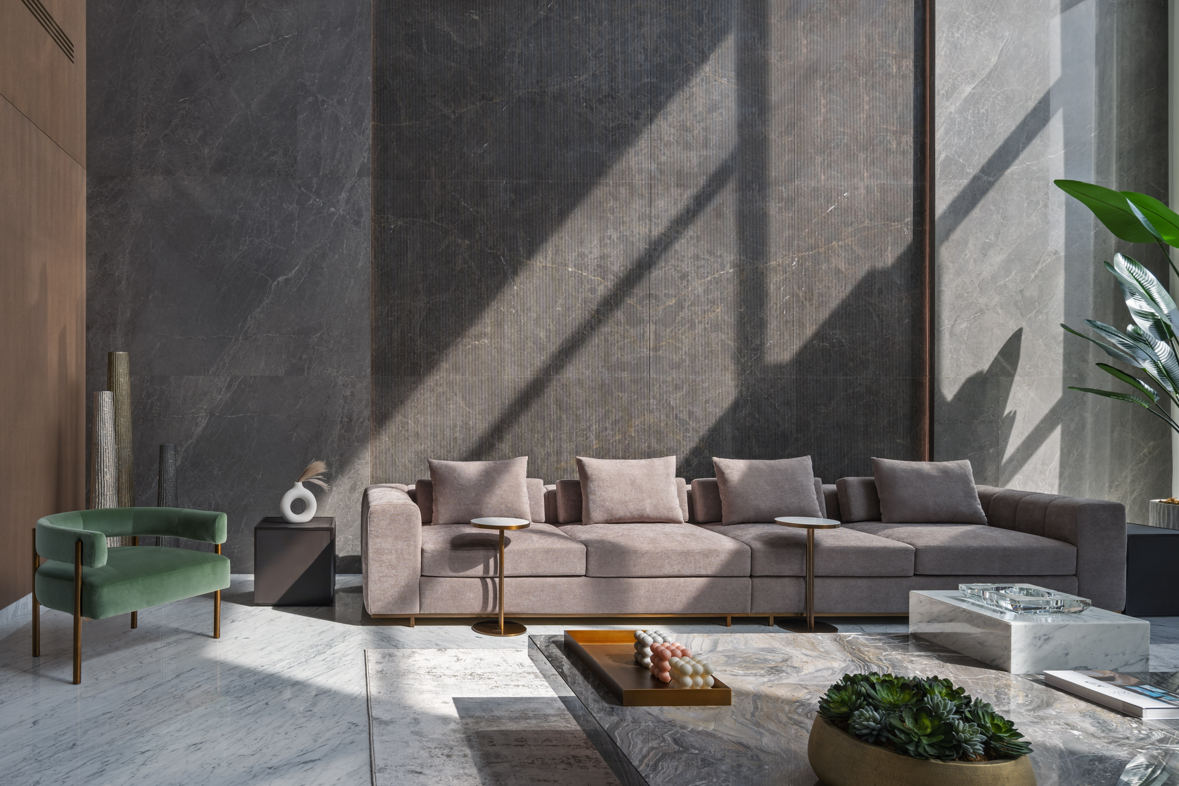 Being a marble lover, the client wanted to create depth and various tones and atmospheres singularly through the use of marble. They wanted to emphasize themes within the different spaces, accommodating their unique lifestyle. In response to the client’s needs and aspirations, Villa K’s aesthetic is one of ‘altered materiality’ – an avant-garde approach to deal with various materials together in one spatial complexity. Throughout the design process, the four natural elements were present, taking part in the design decision process and iterative methodology.