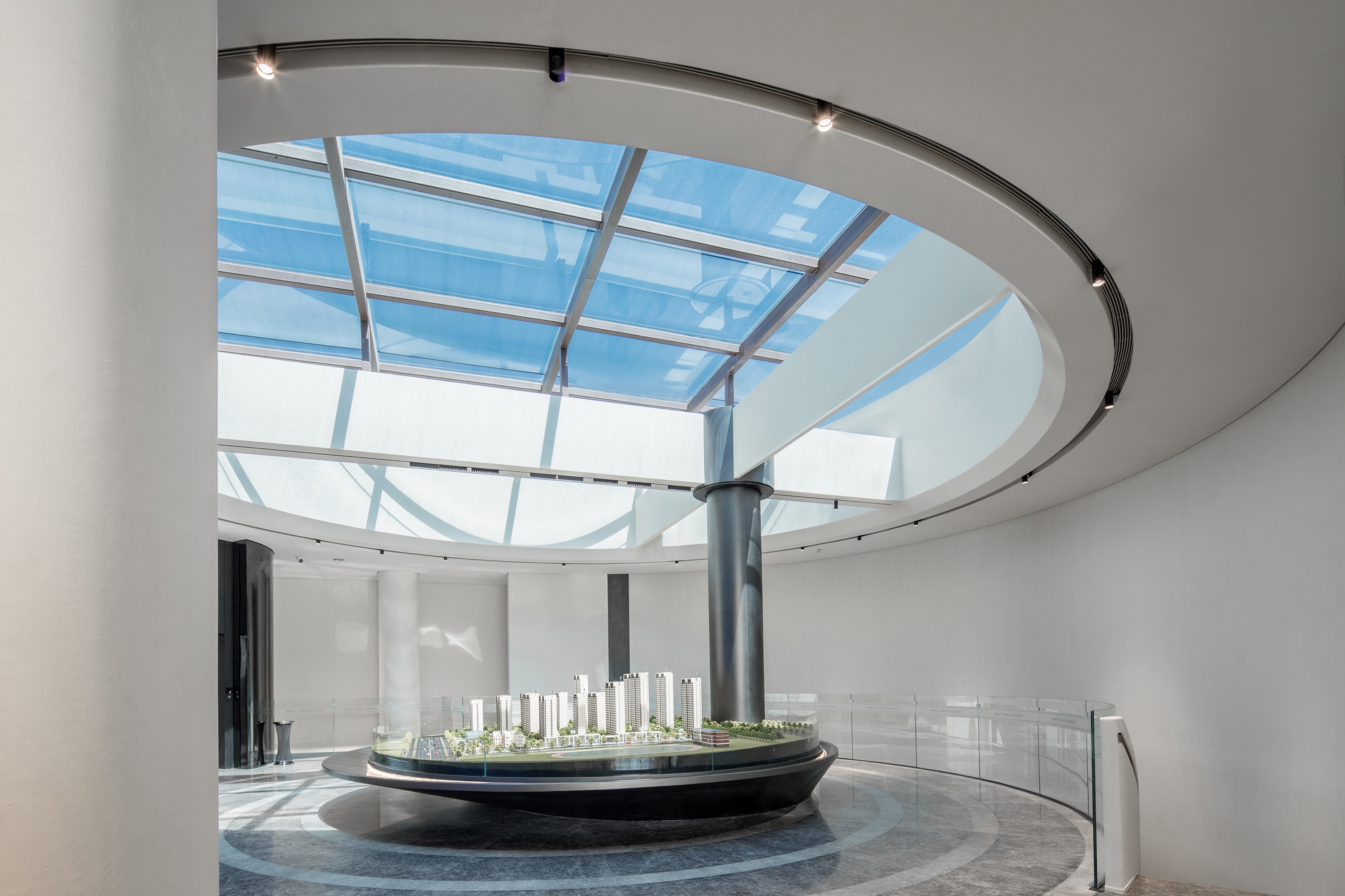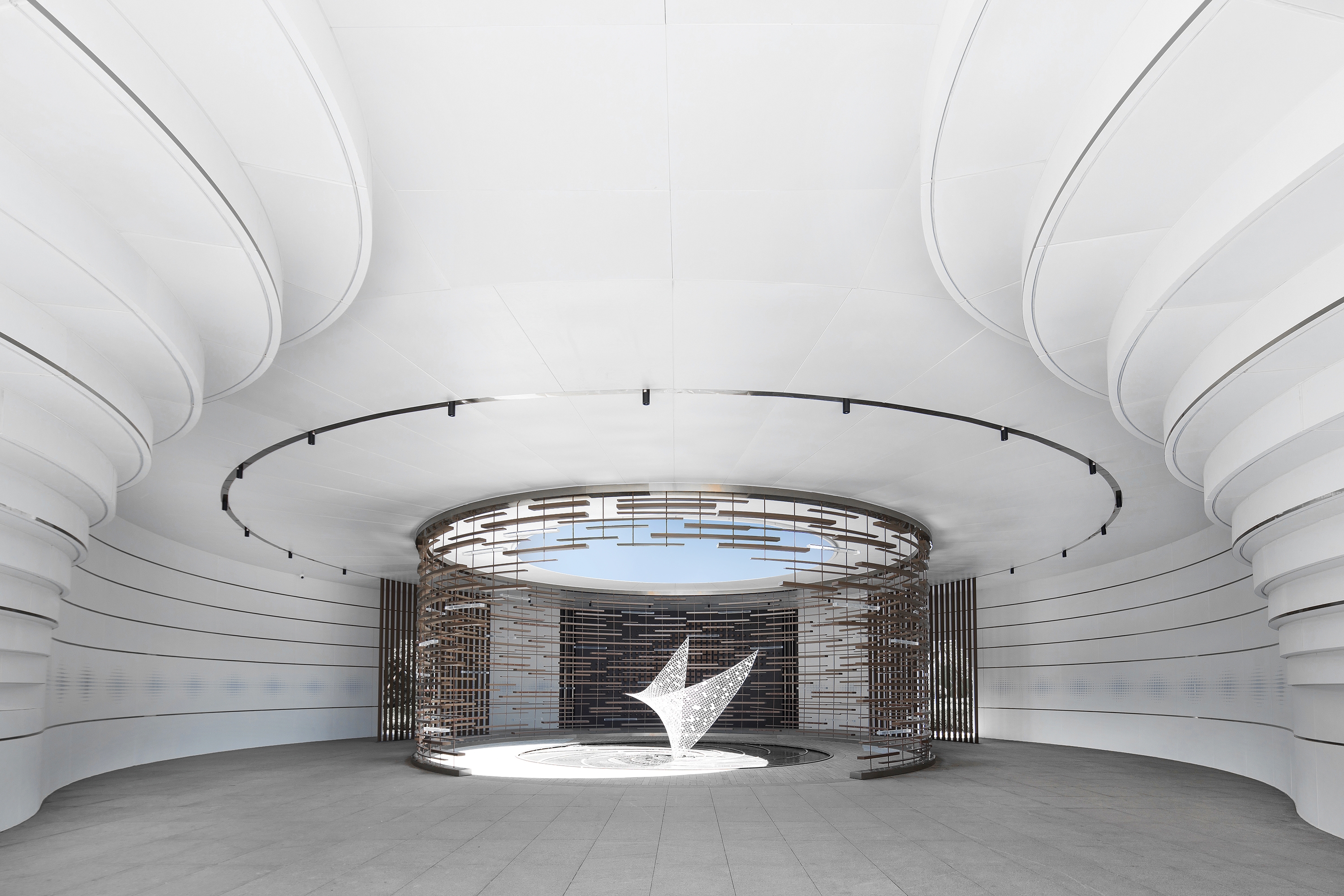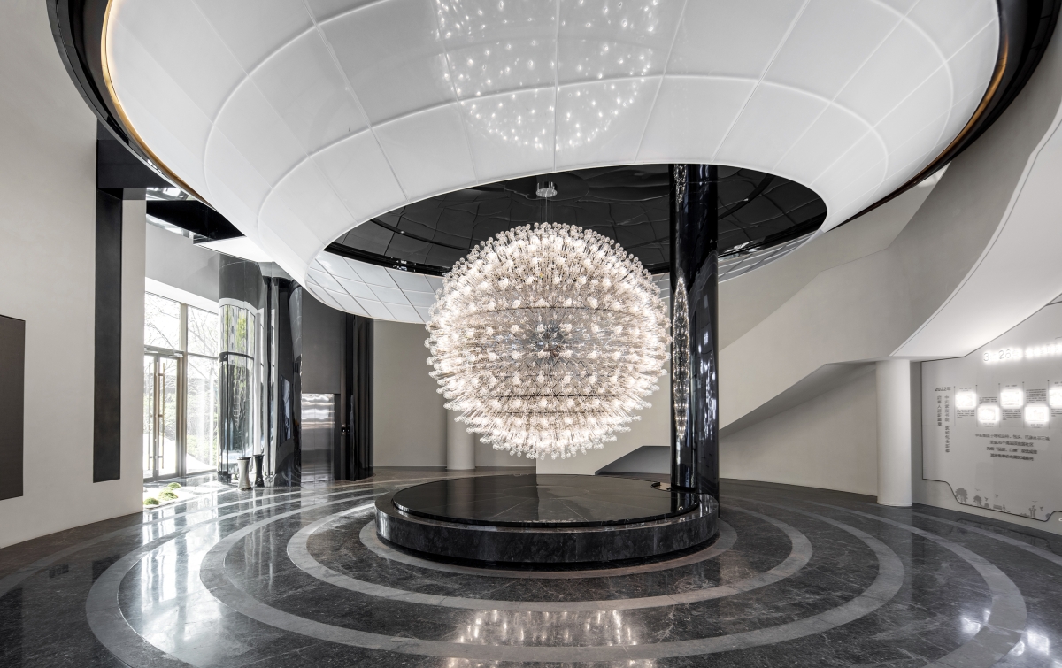 This project's design is built on the symbiotic relationship between humans, nature and art, in an effort to transcend existing boundaries and reframe how we perceive these disciplines. In the lobby, the delicate, lifelike flying bird artwork conveys a sense of beauty while touching the resonance of life in the sunshine. Brilliant light dots are emitted from a floating art installation, while the floor, wall and staircase coexist in harmony, injecting vitality into the whole space. In the sand table area, the columns and beams blend in with the building's original structure under the play of light and shadow, and the large white area creates a sensation of no boundaries. The pure white revolving staircase reflects the beauty of space and structure, like a light ribbon that leads and complete the spatial transformation. Large floor-to-ceiling windows provide plenty of fresh air in a room filled with rituals. It encourages the opening of each other's hearts for in-depth discussions through the perception of light, sky, greenery, and air. With the overlapping of the order, life, and balance of nature, a landmark of art is thus produced here.