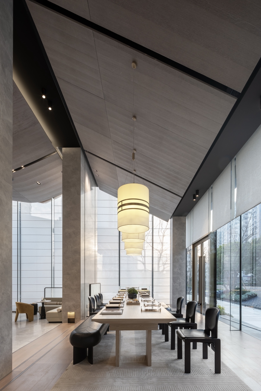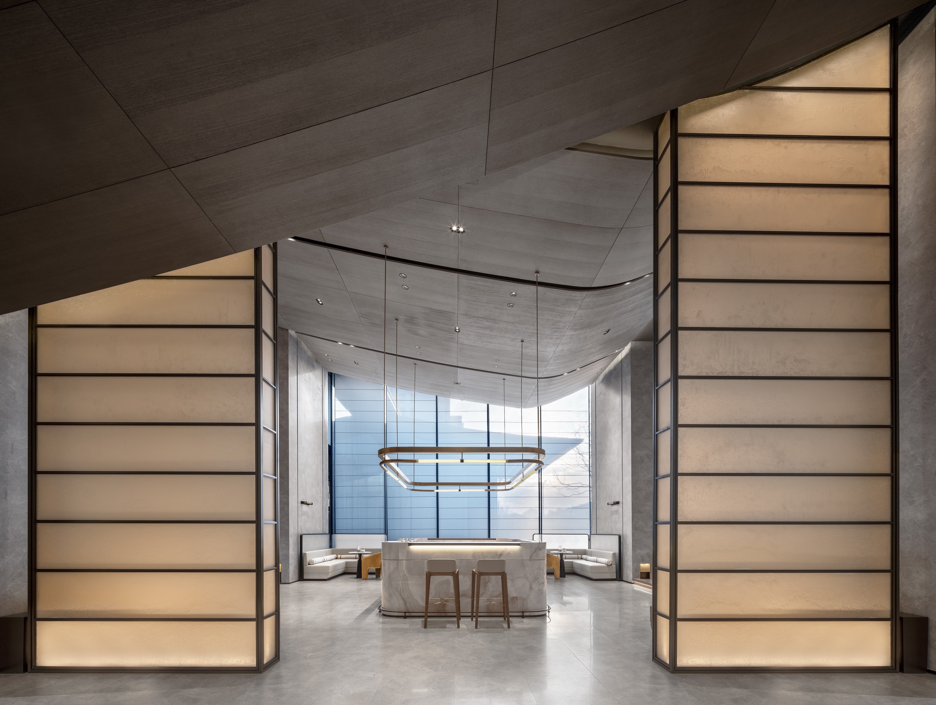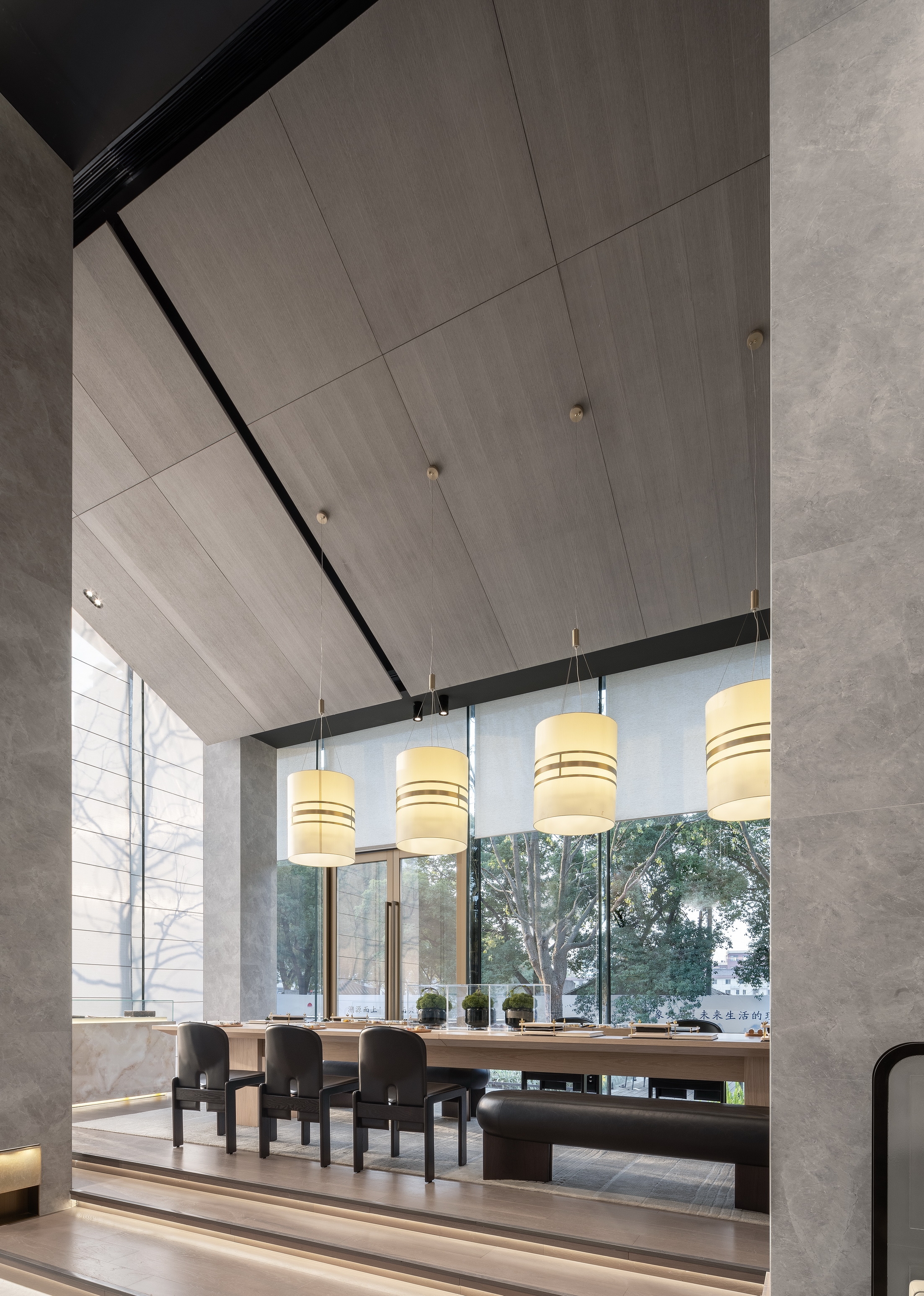 Located in Ningbo, a coastal city in Eastern China, the project combines the natural landscape of the surrounding land and elements of nature in the interior design, adhering to the modern minimalist high-end aesthetics. Through in-depth analysis of nature, art and space, and pairing of colours and lines, we tried to keep a perfect balance between nature, human and luxury. Nature, light, sound and air have become the supplementary elements of the space, creating an elegant, comfortable and natural atmosphere.