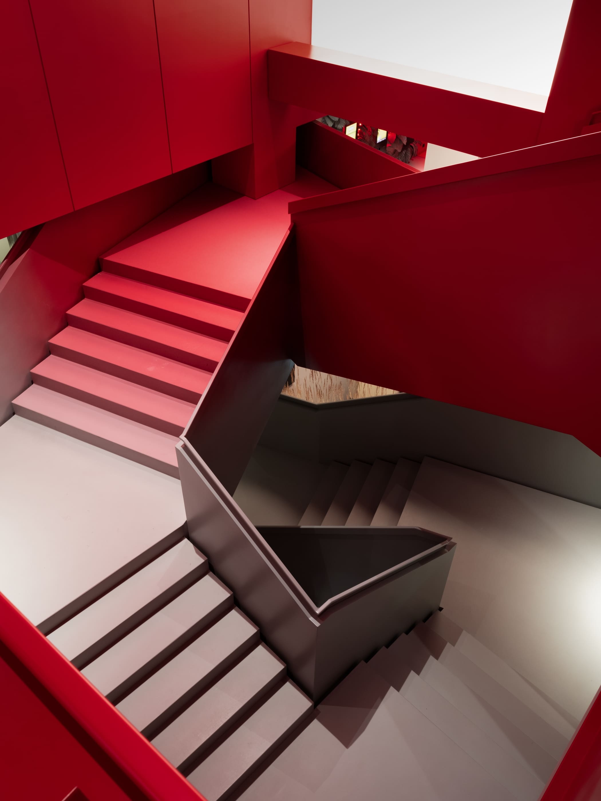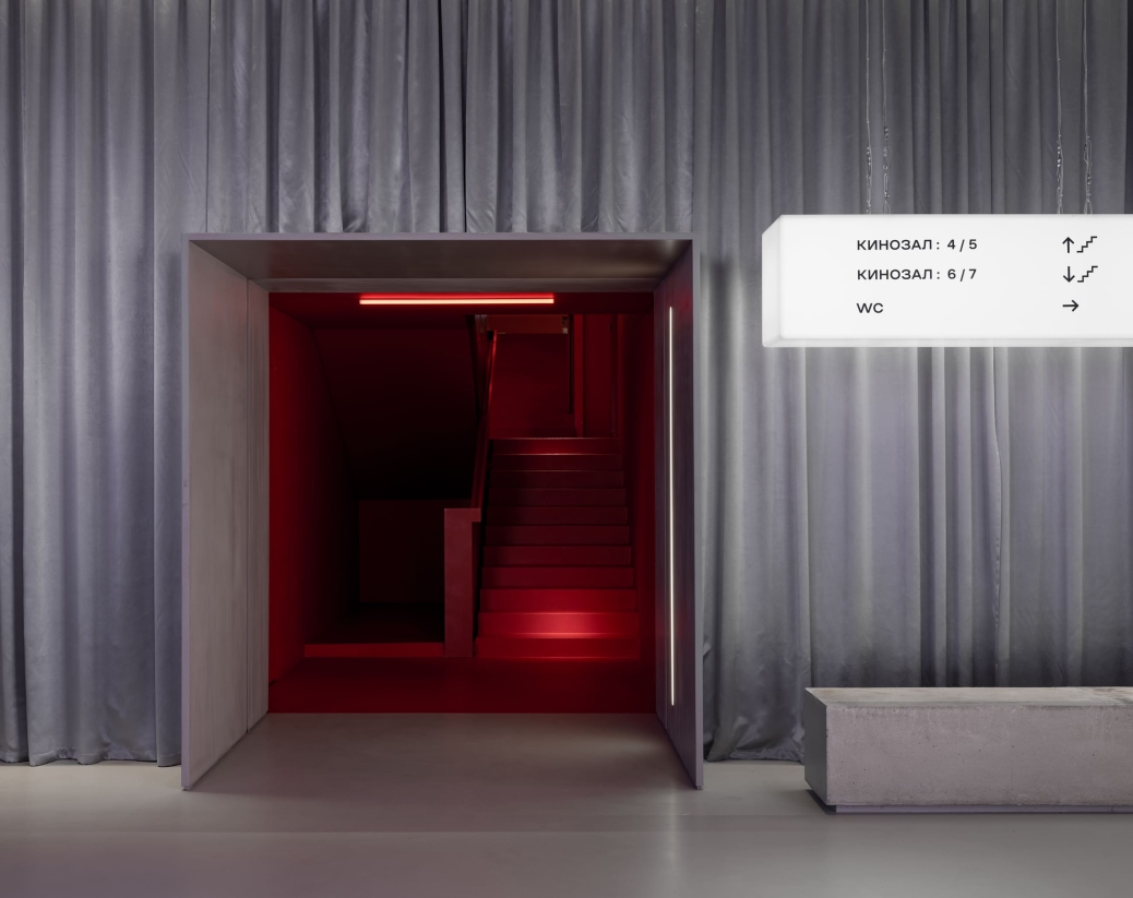 The main space of the project, the two-storey lobby, which gathers all the spectators and from where they disperse to the auditoriums, was completely redesigned. We also radically changed the main staircase that connects the two floors, adding a visual connection between them and making the space more open and viewable. The intuitive feeling of the space was very important to us, and this is how we achieved it.
