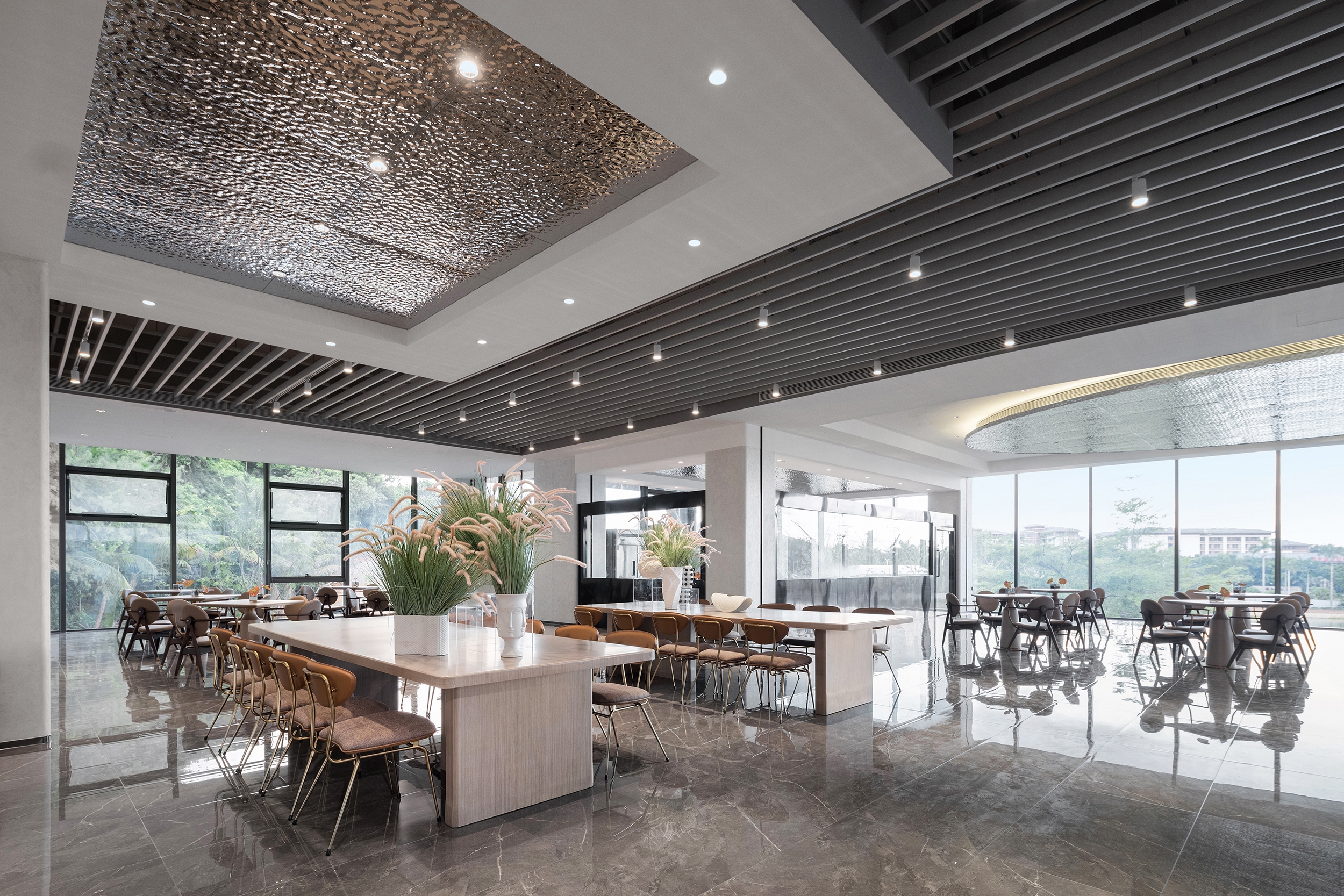 The offline commercial models, such as training and competition, can be conducted on the second floor of the exhibition hall. Tables and chairs are placed in a variety of ways, to match the intended use of the space flexibly. This will significantly bolster the growth of the offline coffee economy.
