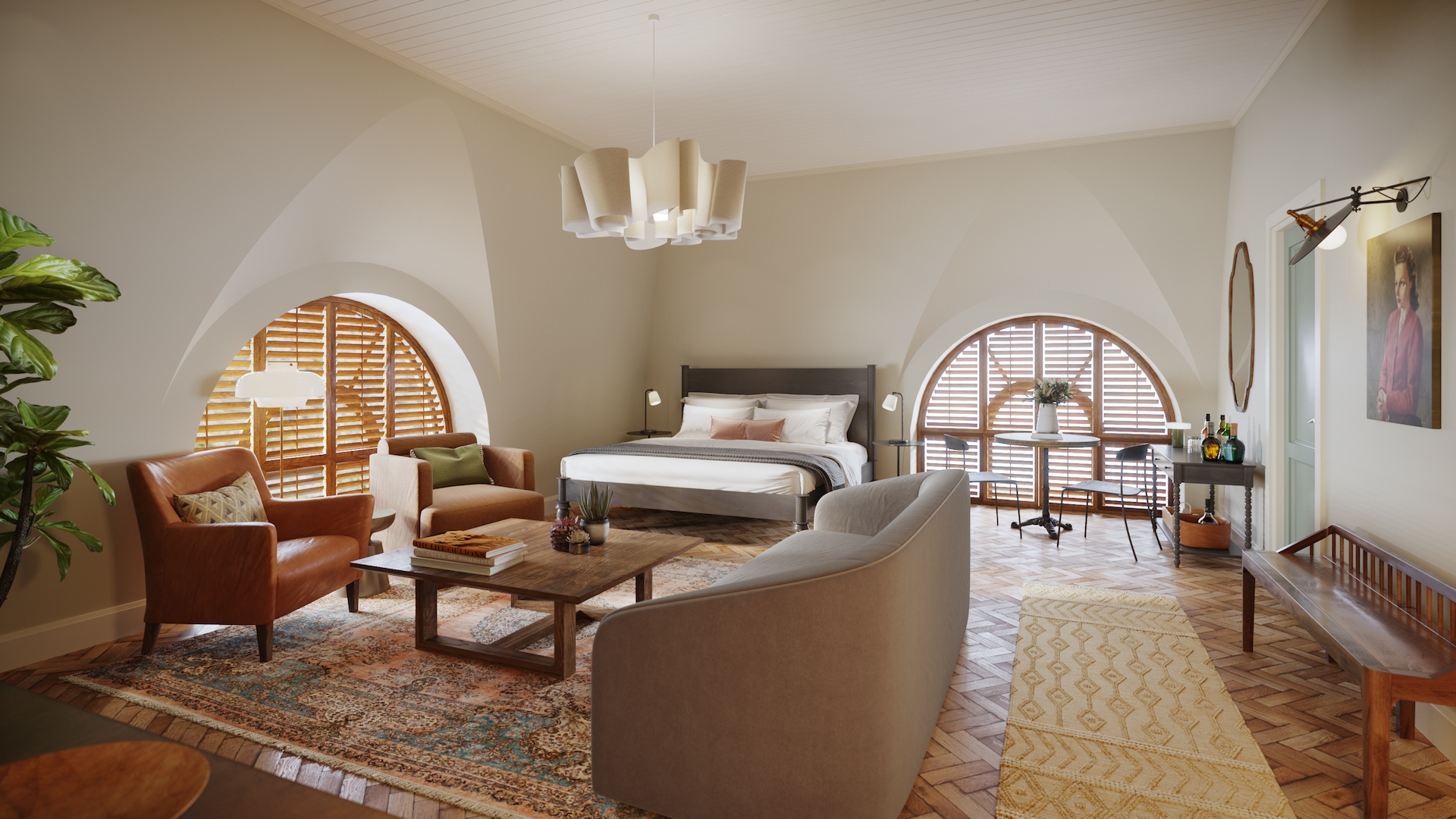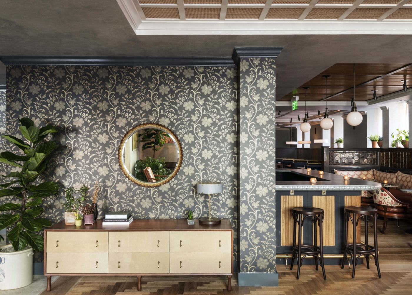 The Quoin is a luxury boutique hotel with a contemporary interior design on the corner of Sixth and Market Street in the heart of Wilmington. The hotel is situated in the former historic Security Trust & Safe Deposit Company Building, a four-story Victorian Romanesque brownstone built in 1885 originally designed by the renowned Philadelphia architect, Frank Furness. The building’s exterior remains untouched aside from restored details such as the arched windows & moldings. Features include 24 contemporary guest rooms with Shaker-inspired furniture & custom oak herringbone flooring, a lobby cafe & bar with an original fireplace & custom built haberdashery, a sprawling first-floor restaurant with outdoor patio facing Delaware History Society's gardens, original vaulted brick ceilings in the subterranean cocktail bar with custom painted room-spanning murals, the city’s first rooftop bar & event space hidden from street view to preserve the historic exterior, a gym & retail space, adding a hospitality landmark to Wilmington. The Quoin, an Old French word for “corner” or “angle”, honors the legacy of the original banking house which housed silver & gold coins throughout the 1900s.