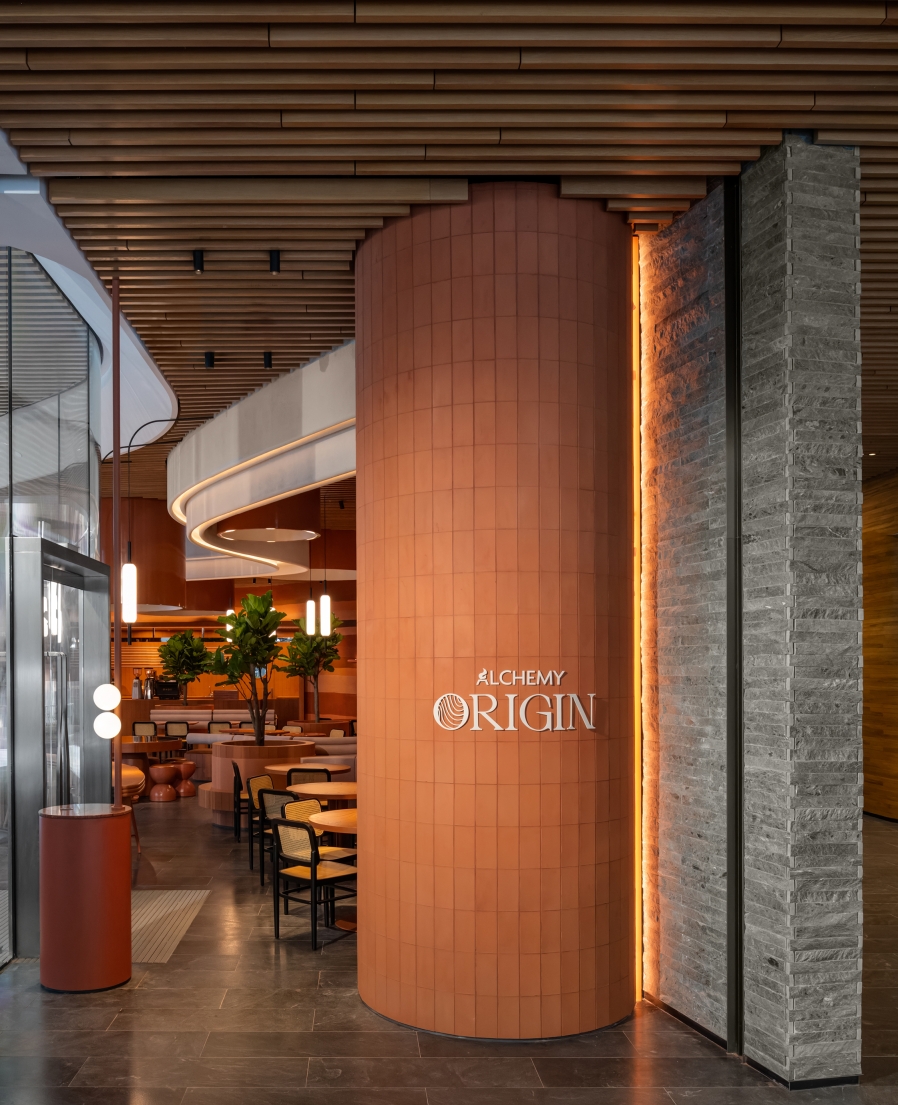 Alchemy Origin tells the story of coffee origins. The scheme's color and form are inspired by the topography and visual vernacular of the many places where coffee is grown.