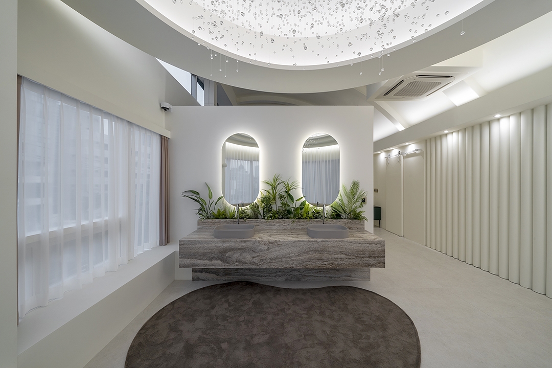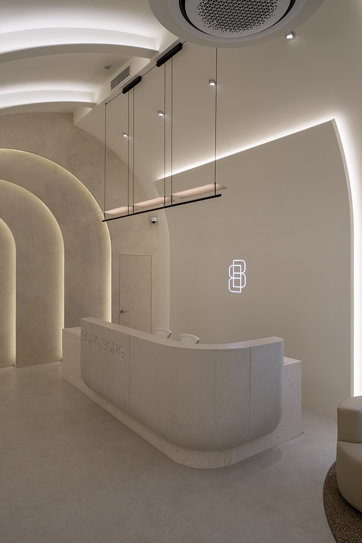 The key to the design that we were trying to do in this space is ‘Rhyme and Association’. We created an invisible echo that represents the repeated cadence of the word ‘Bong Bong’. And the overlapping layers of arches that shows the wavelength of sound naturally made a curved space. Through this association, the characteristics and beauty of the female body that curves are emphasized are expressed in the space.