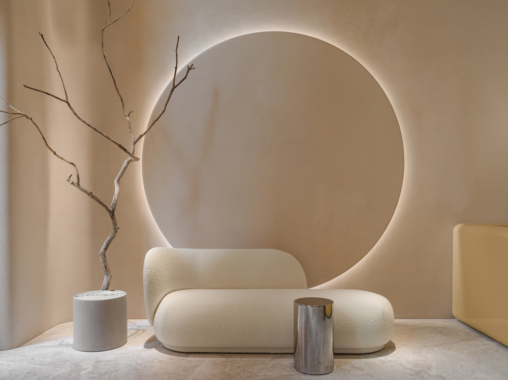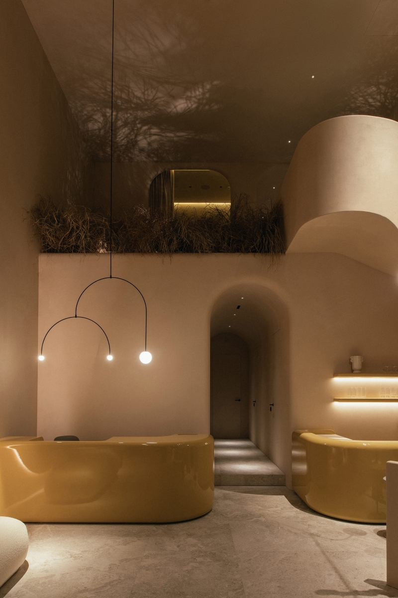 The interior has to express softness and sensuality, set on relaxation and self-care. Roundish shapes, tactile textures, soft lines, and a warm color scheme create a nearly meditative feeling. The first associations that Bel Corpo brings are soft and moisturized skin, seducing women's body curves, inner glow, and life energy.