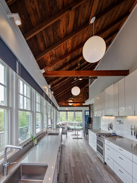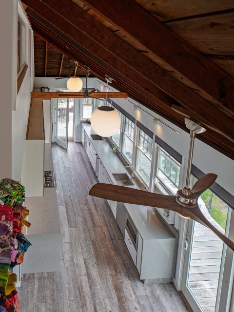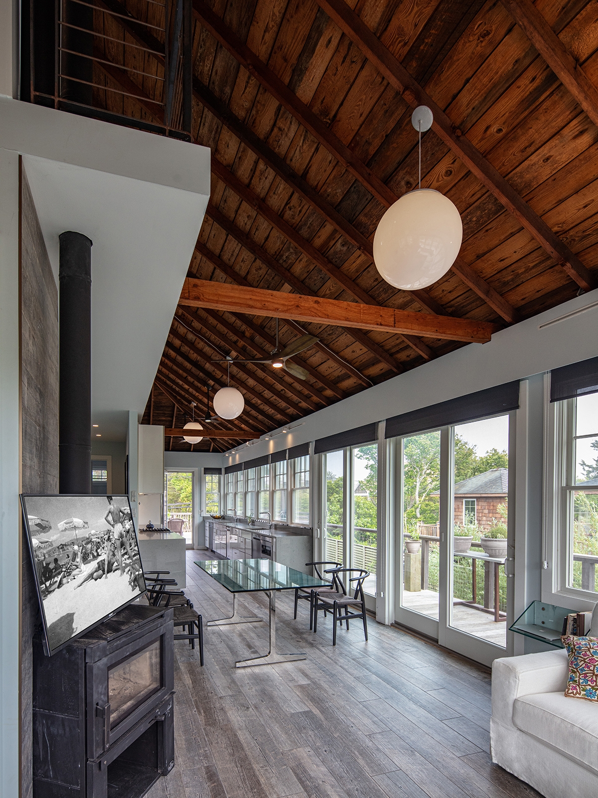 THE TRANSFORMATION: We added a ribbon of windows to bring the outside in and created a prime bedroom suite in part of the attic and opened up the rest. The new open plan optimizes indoor-outdoor entertaining with the option for a very expandable dining area to fit 24. Guests can choose between 4 bedrooms and 2.5 bathrooms.
