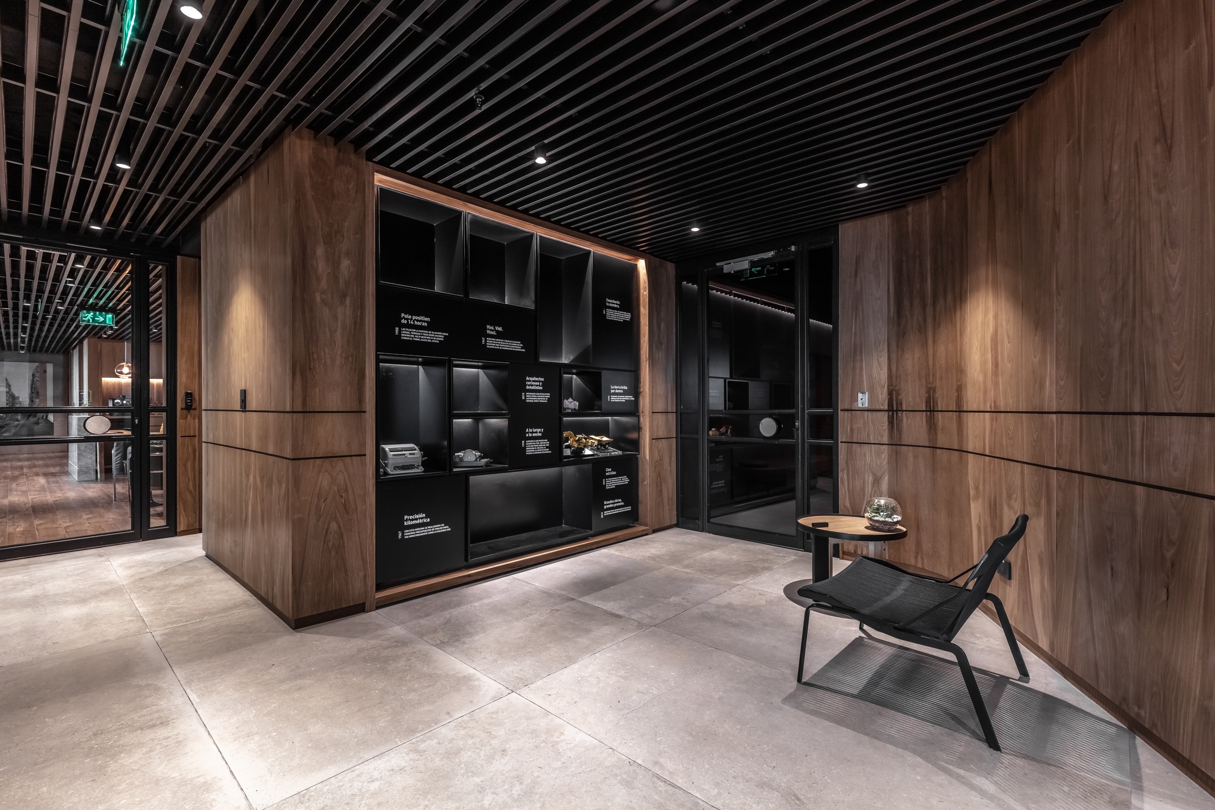 The materials dialogue to achieve their own architectural identity. The common axis between the different companies of the Group are minerals, and its textures are reflected in the flooring, finishes touches and ceilings.