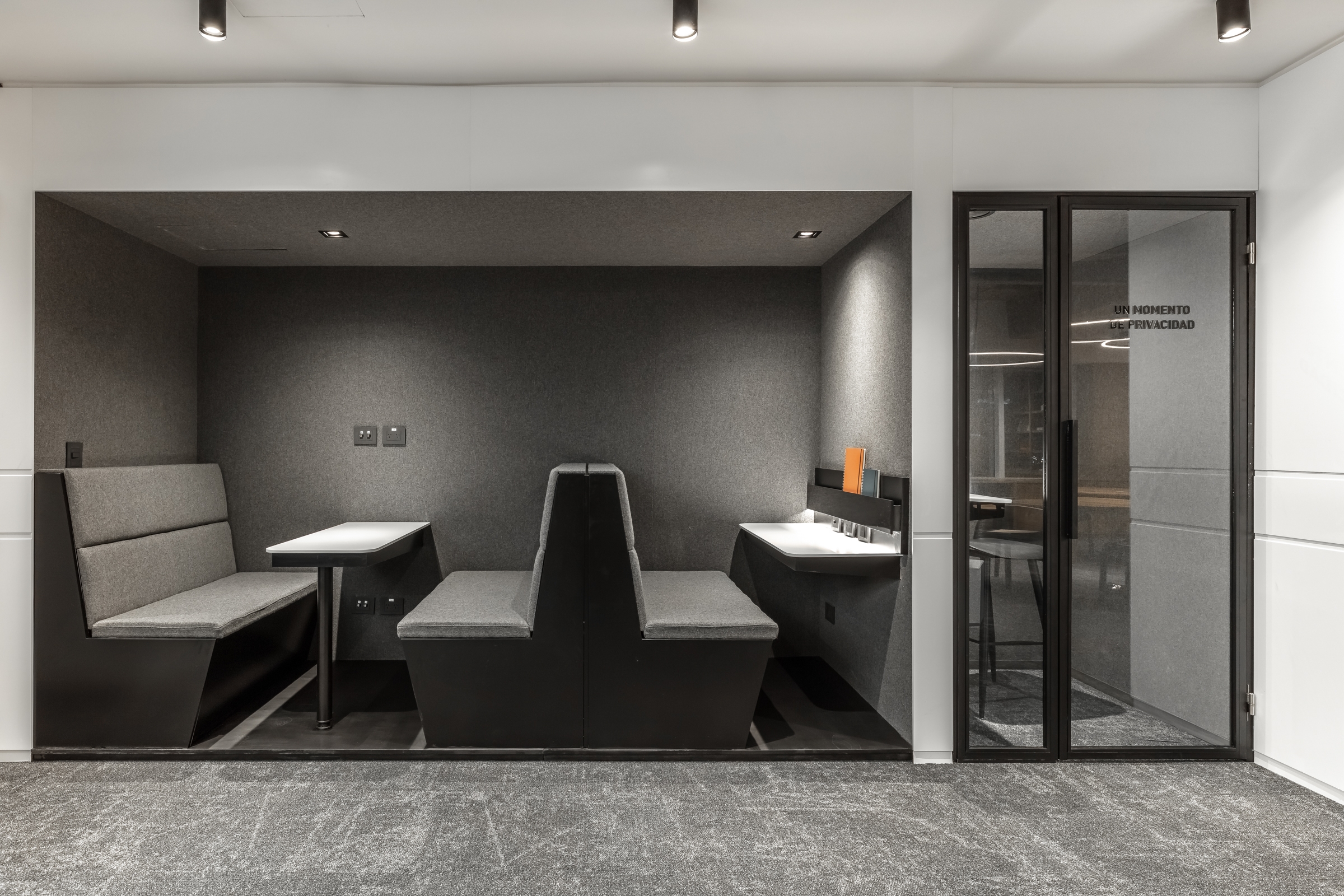 The circulation is smooth and is differentiated by use. A multi-use space focused on training, private telephone booths, board rooms, individual workstations and relaxation spaces were specially included.