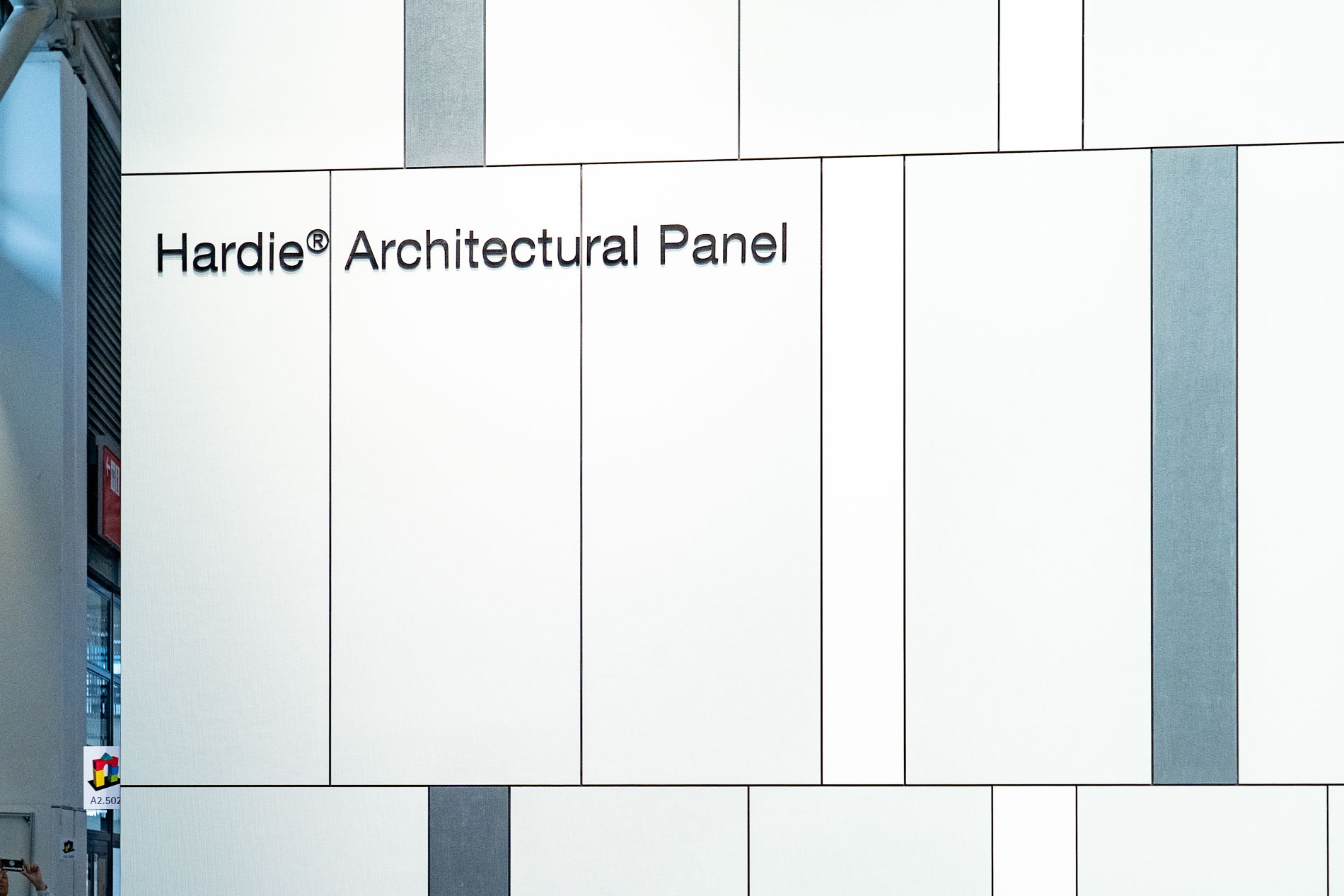 Hardie® Architectural Panel is one of the most innovative products for facade cladding. The unique, light and shadow reflecting texture is the result of a special manufacturing process wich helps create a smart and cost effective solution. Six modern colours and available custom colours offer endless design possibilities. Innovative fibre cement technology ensures weather-resistant, easy-care surfaces. With our fade-resistant colour finish we offer long-lasting sustainable solutions. The low panel weight simplifies installation. Low CO2 emissions during production ensure ecological compatibility. The Hardie® facade panels were awarded with the eco1 label by ecobau.
