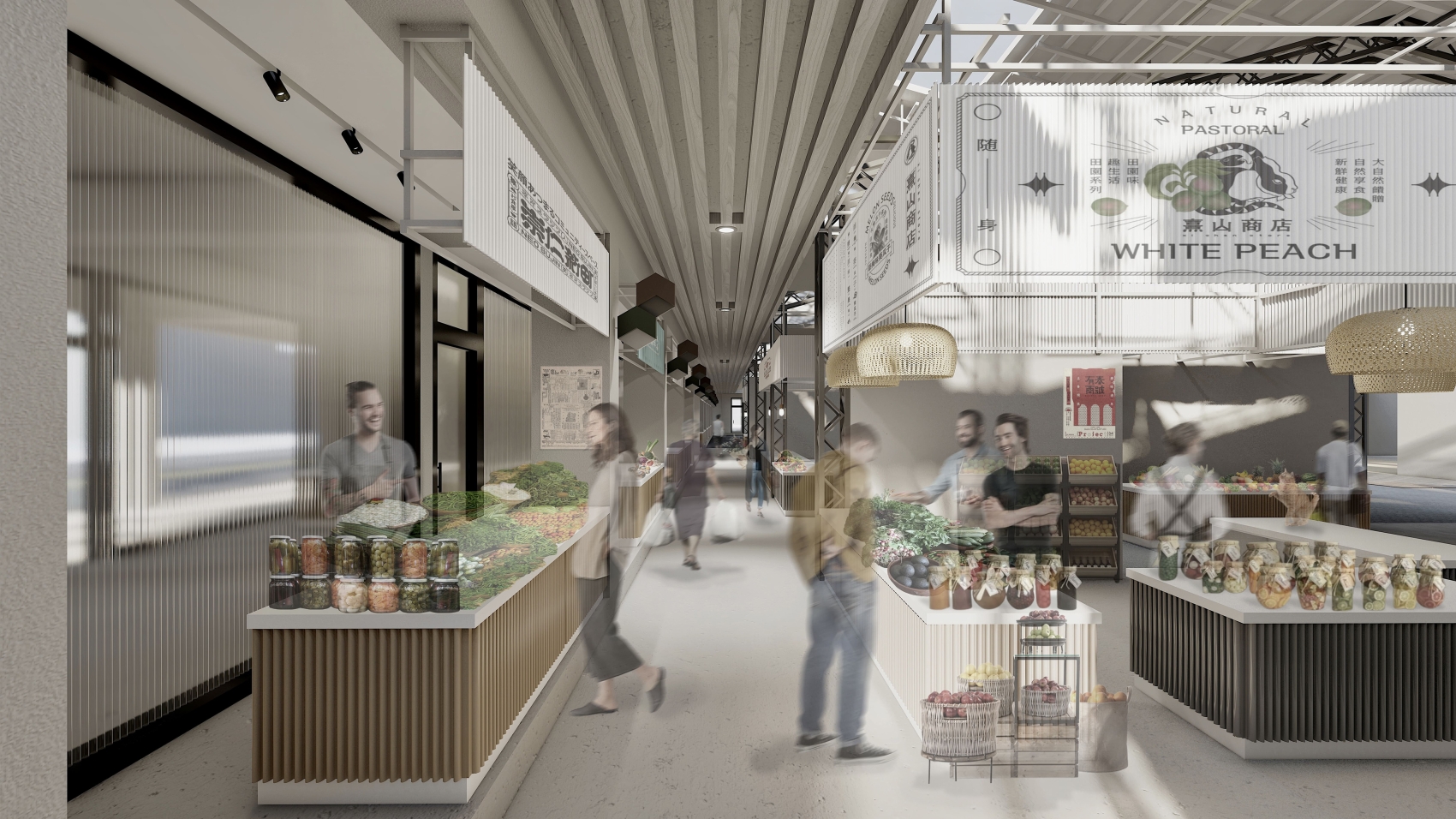Dispersion and gathering, people follow the undulating roofs and the disordered skyline as they rambling in the old tortuous street, recounting the memories of the past. Market not only carries memories, but also records and delineates time, inheriting culture and declaring its own fame.