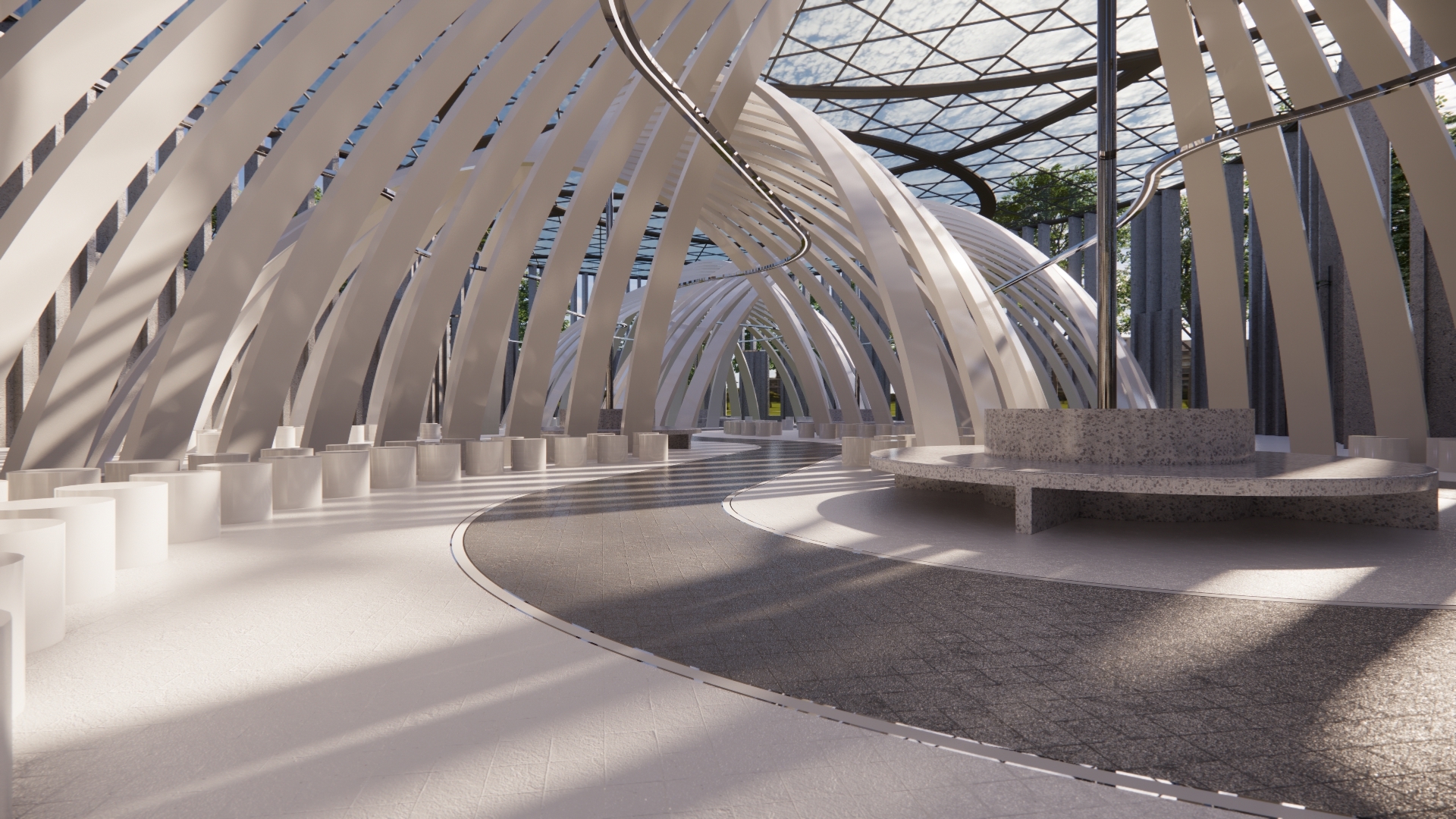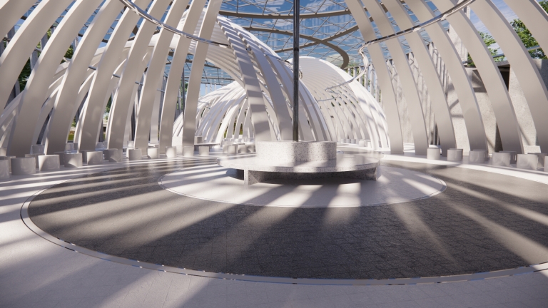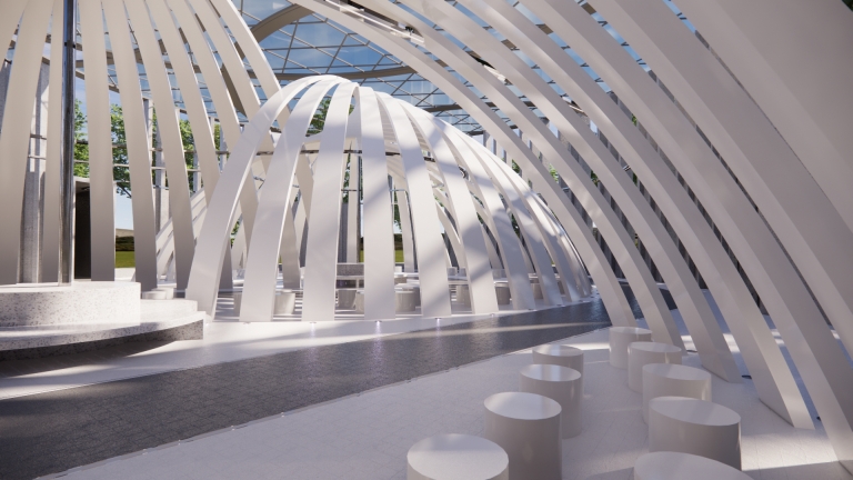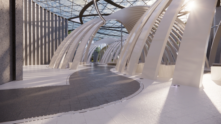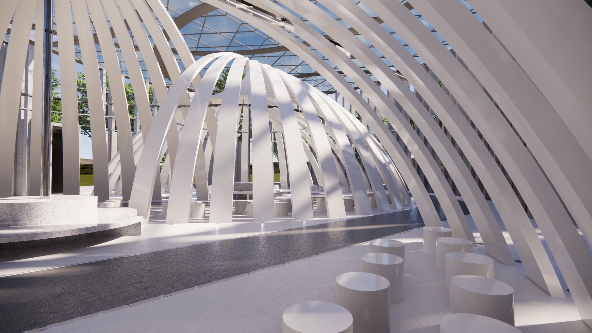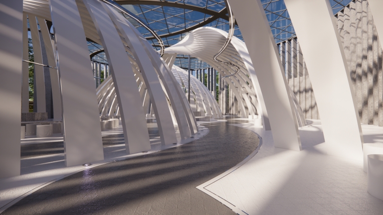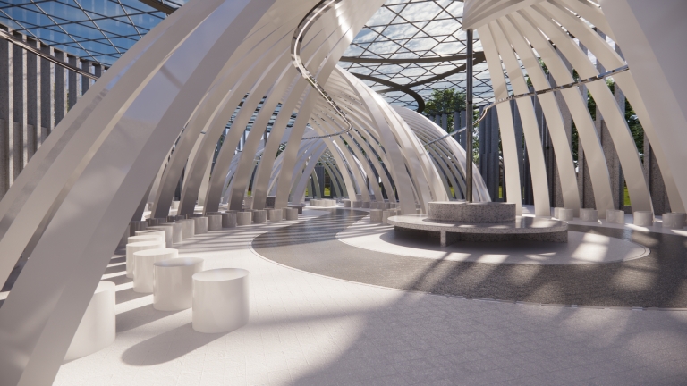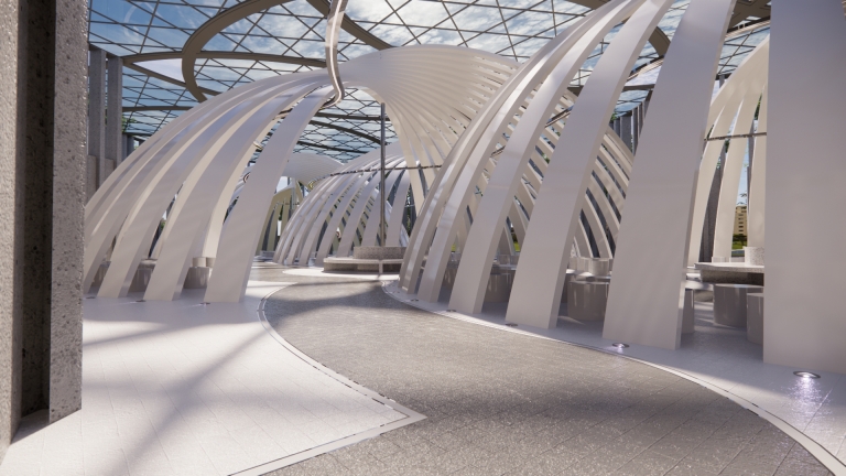 It is an open space designed to host various fashion exhibitions and performances. Under the cover of the curved geometric shape, a curved moving space is formed, which can accommodate live performances of 4 small performance groups or a performance of a large event at the same time. In terms of function, it can provide clothing design releases of various brands or fashion activities of colleges and universities. It can also be used for various market activities when necessary. With the beautification effect of lights at night, it is a place for ordinary people to carry out leisure sports.