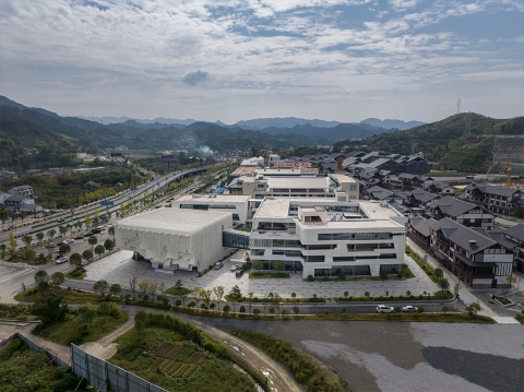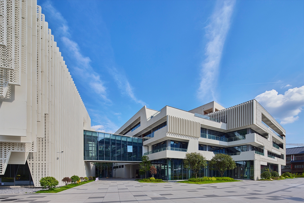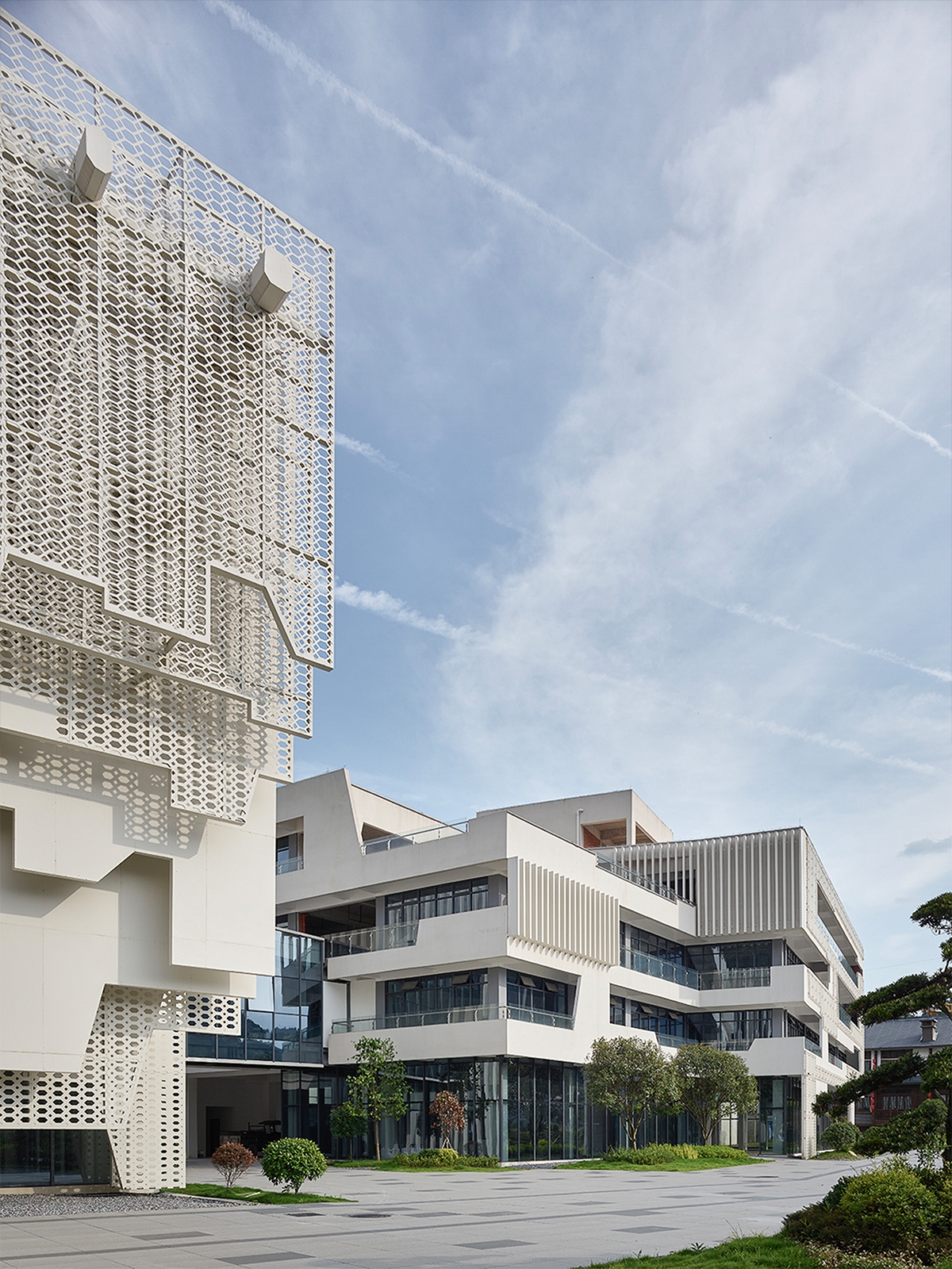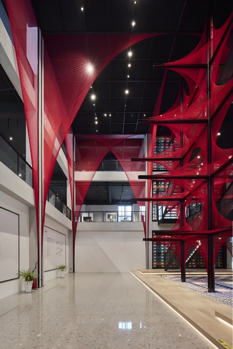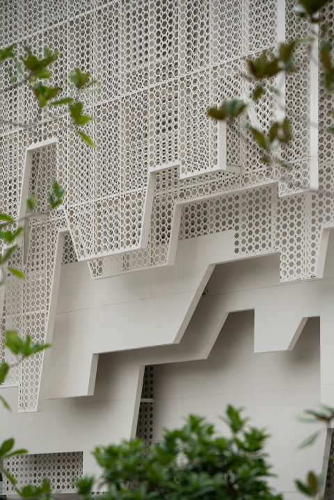 Tujia Brocade has a long and profound history. It is recognized as one of China's national intangible cultural heritages. The landscape of Zhangjiajie is characterized by towering peaks and overlapping mountains. The design incorporates the concept of reversing yin and yang, with the solid sky hanging above and the boundary between sky and earth formed by layered mountain ranges, creating a virtual skyline of mountain shadows. The solid and continuous mountain peaks are transformed into the virtual, simultaneously suggesting and guiding people to explore the hidden beauty within the "mountain." This design incorporates the self-similarity concept of fractal geometry and utilizes the principles of projective geometry to project the geometric patterns of the previous facade onto adjacent planes, creating a decreasing hierarchy. Starting from the facade's first layer, where the void is greater than the solid, it iteratively evolves into a solid two-dimensional plane. By applying fractal thinking, the overall perception of this facade can be seen from a different perspective as a volumetric two-dimensional spatial form.