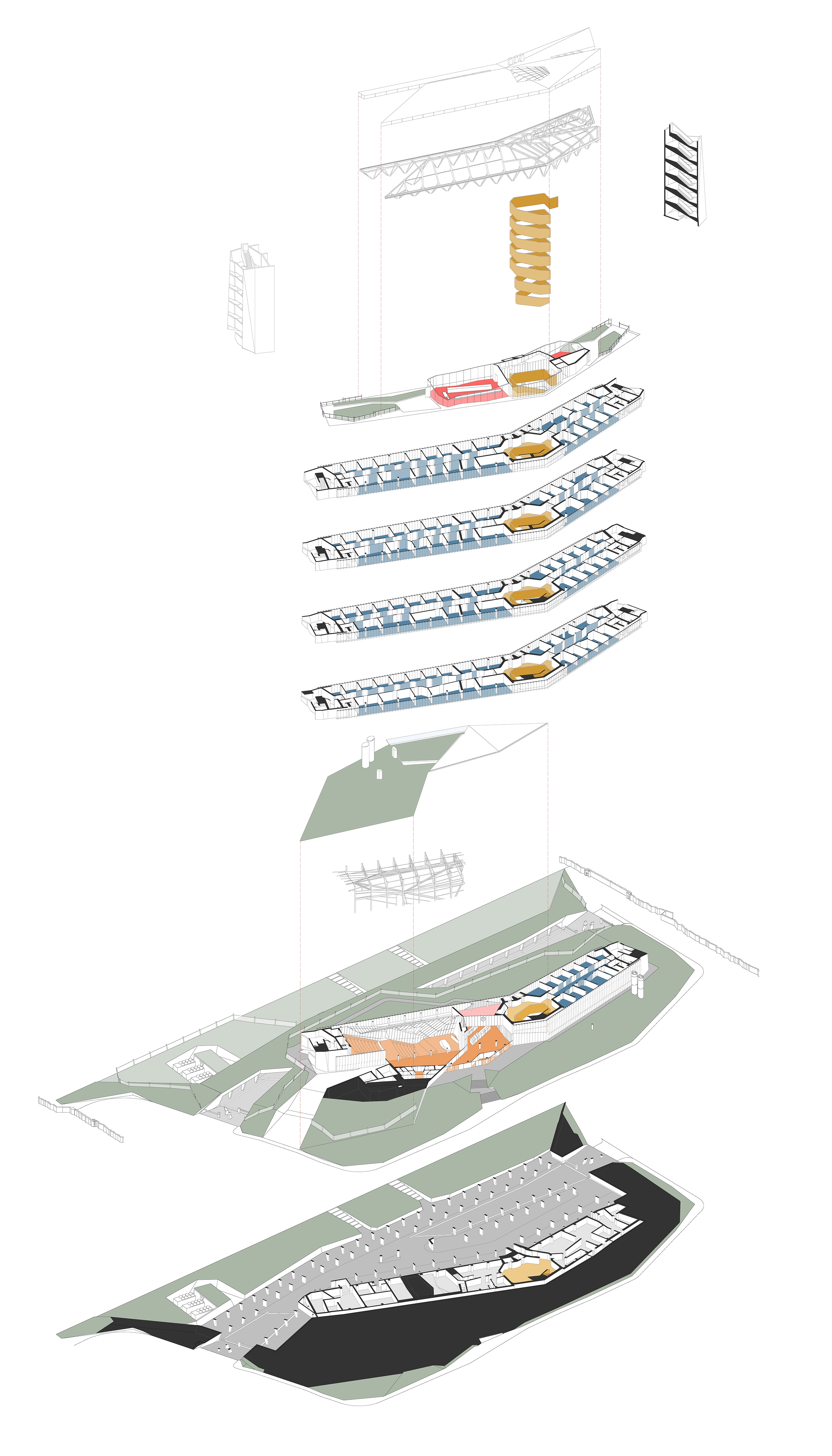 The study and design of the interior space was approached as an essential component for the development of the building as a whole.