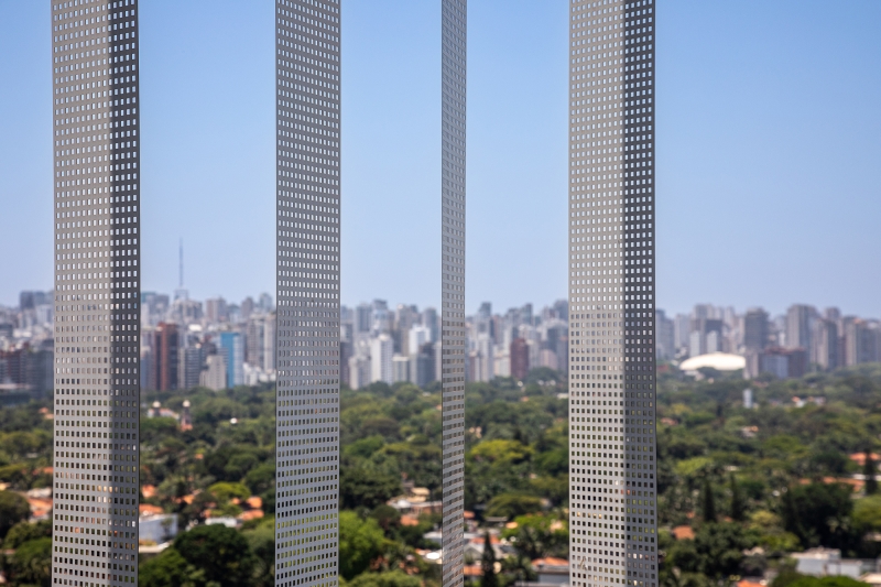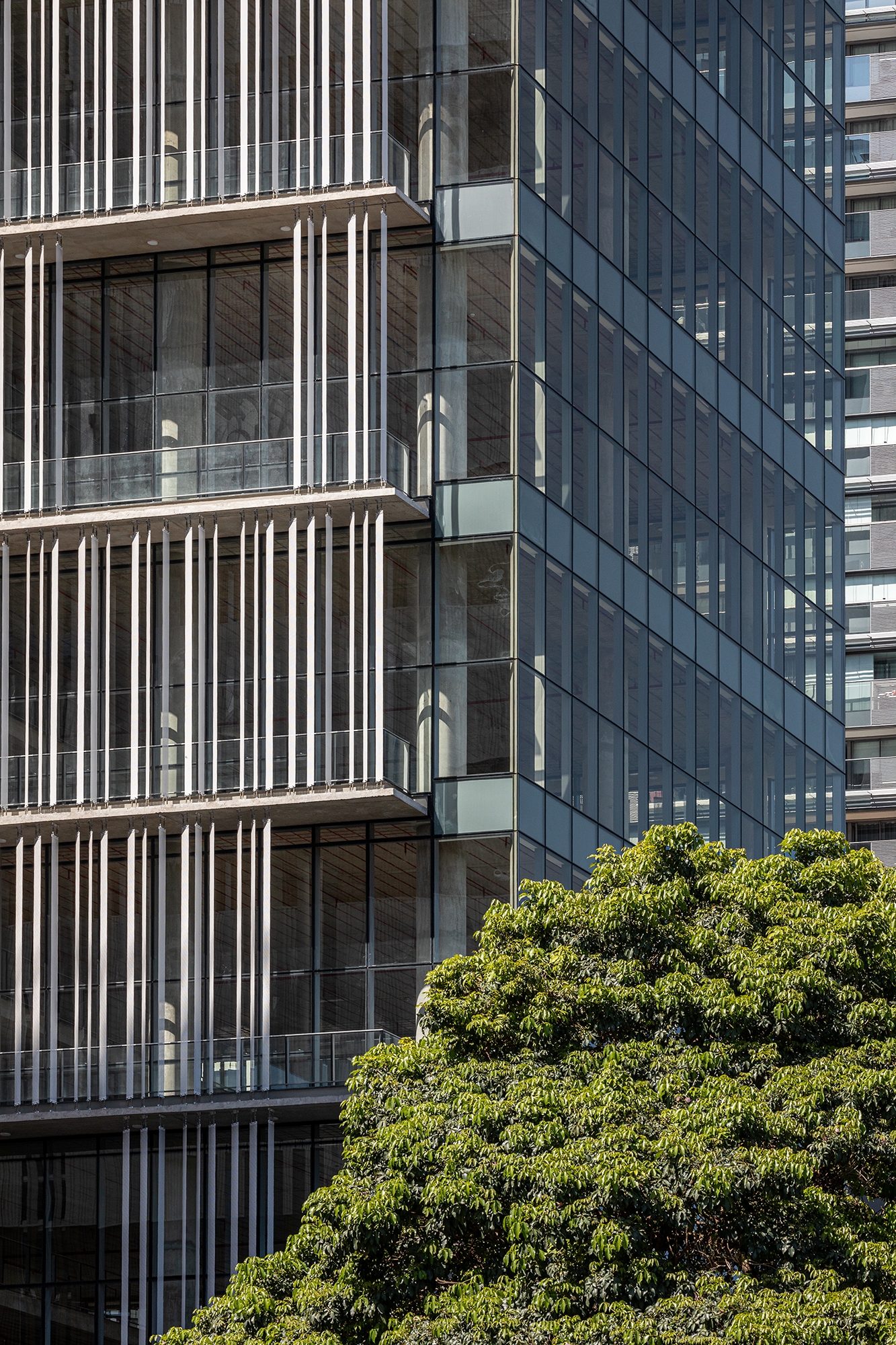 The uniqueness of the building laid on the interspace between the pillars, a 17 meters gap that allows the creation of numberless layouts – a rare possibility among corporate buildings. The extensive height of the floors is also a highlight, once it led to the exclusive metal brises that characterizes its façades.