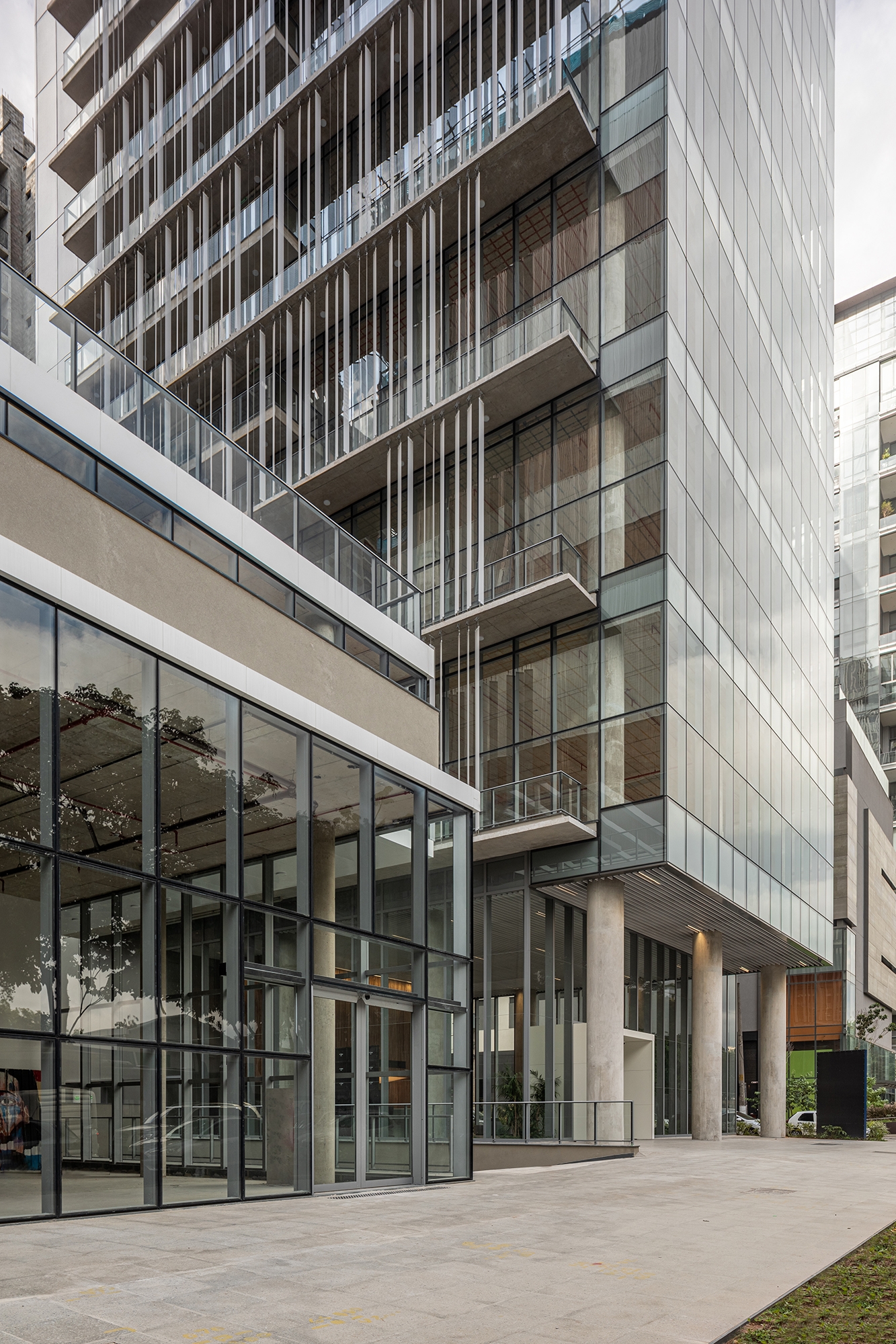 Located in an important avenue, the building takes advantage of the complex transport structure that includes metro stations, bus corridors and cycle paths. This context facilitates the access for the building, but also demands for structures like a bicycle rack and changing rooms to support those who use alternative transport.