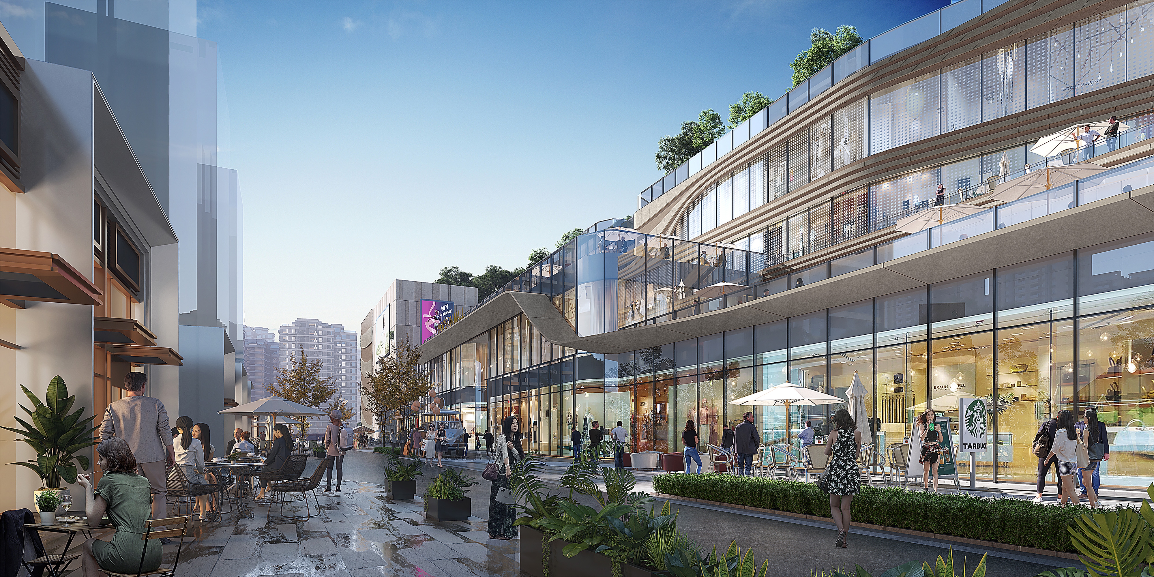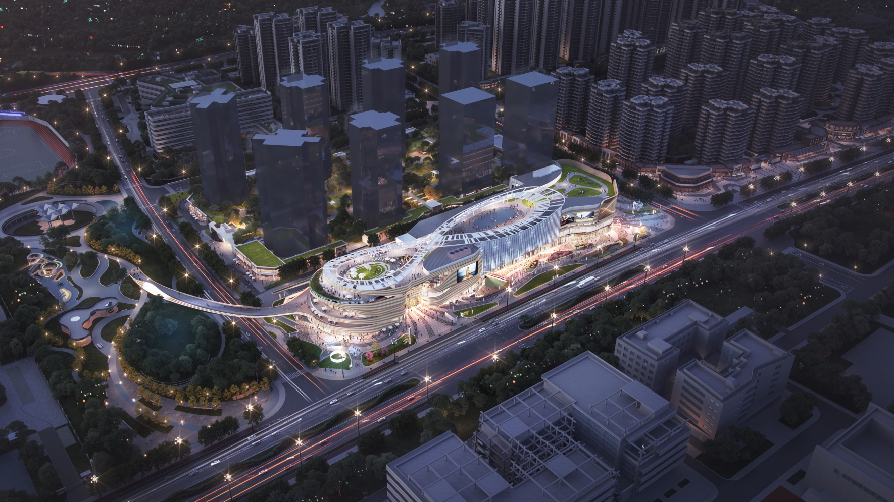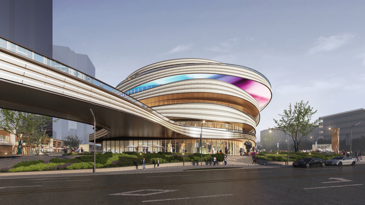 Featuring dedicated spaces for trendy recreational activities, exhilarating e-sports, and a naked-eye 3D screen at the main entrance, it is the place where you can delve into youth-trend sports and unlock new social scenes brimming with trendy fun. A huge LED dome stretches from indoor to outdoor spaces, showcasing regular audio-visual performances, establishing the plaza as the first awe-inspiring dome shopping centre in Chengdu. By leveraging the park's landscape resources to the fullest extent, a landscape bridge connects to the western park, serving not only as a traffic pathway for pedestrians and vehicles but also as a recreational space for sports and leisure, attracting a larger influx of visitors to the mall.