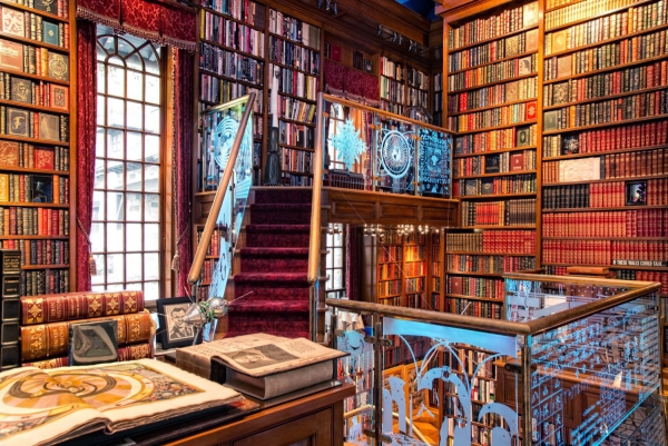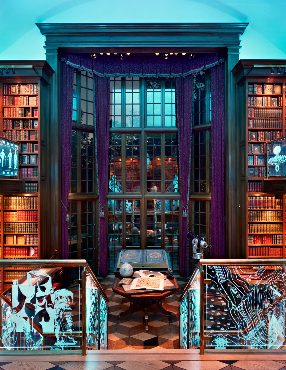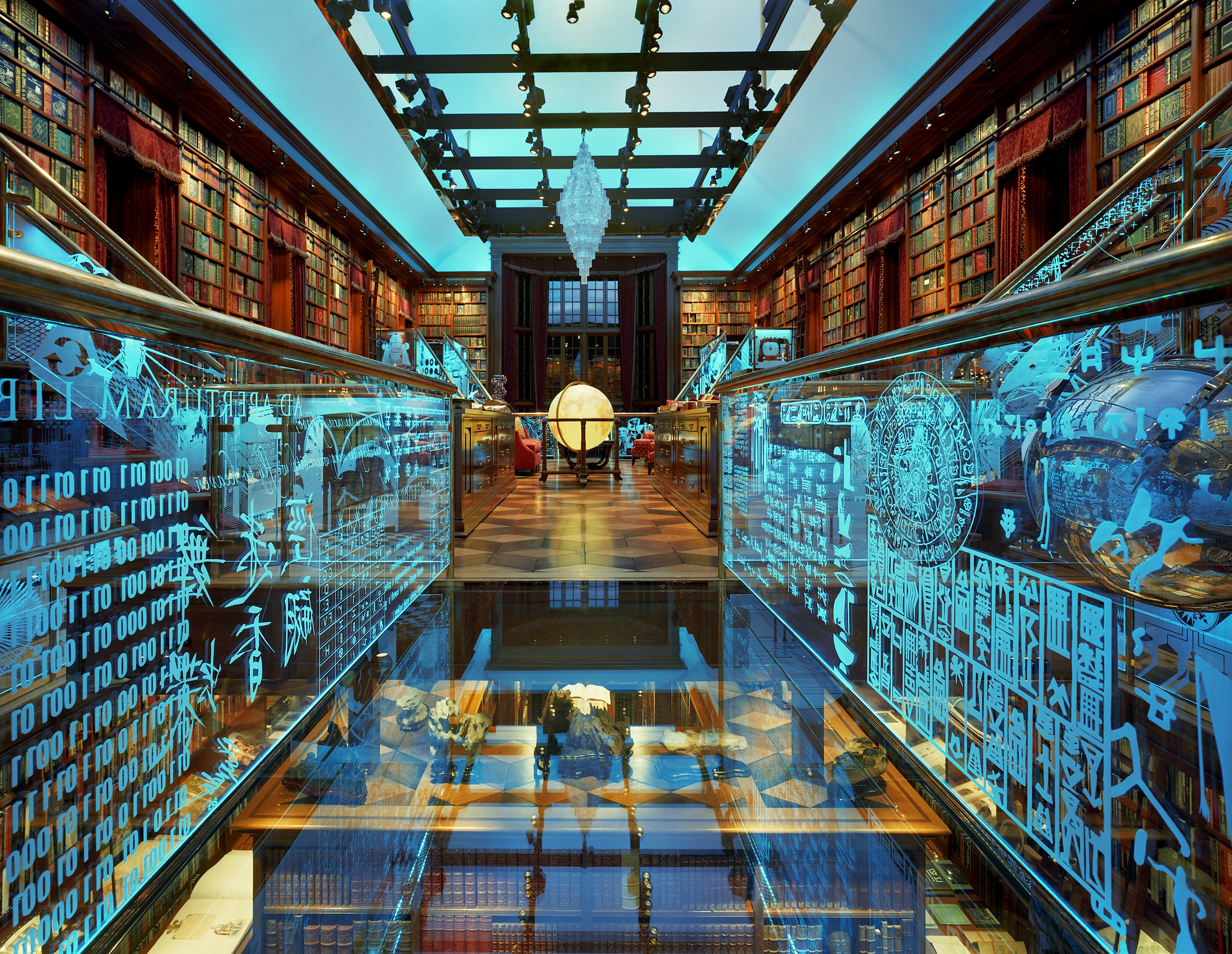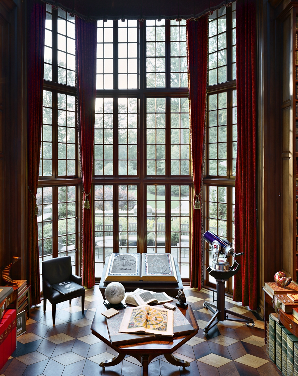 This 3,500 square foot, three story space is a celebration of human invention. The library contains an extensive collection of more than 30,000 books and museum-caliber manuscripts, maps and artifacts such as dinosaur bones, an ancient bible collection and an original Sputnik Satellite. Designed to embody the human imagination and inner workings of the owner’s brain, this space is marked by M.C. Escher inspired staircases and bridges lined with etched glass panels that are illuminated by color changing fiber optics from under the handrails.