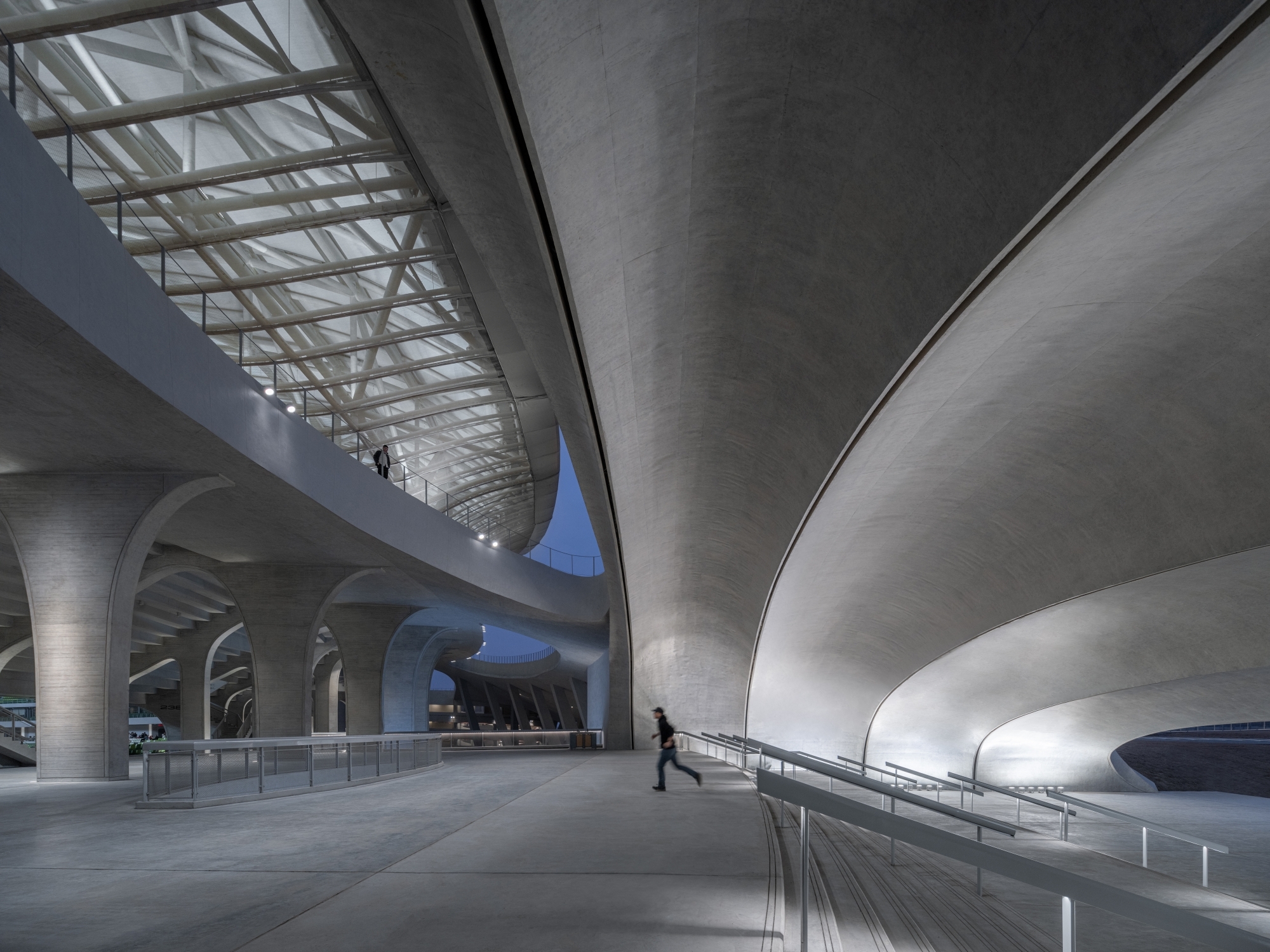 Quzhou Sports Park is located in the new city zone in Quzhou, Zhejiang Province. The architect aims to create not only an urban space for sports and ecology, but also a unique land art park in the world, which would establish a cultural inheritance relationship with the city's landscape history. The design combines the functions of the stadium with the natural landscape, with concrete structures and earth shelter landscape, creating a piece of land art in the center of the city that resembles a volcanic cluster and a mirror lake. Despite its impressive 30,000-seat capacity, Quzhou Stadium was designed to appear as a continuation of the surrounding landscape rather than an object standing out against it. Unlike the typically fortress-like stadiums built in urban areas around the world, Architects was determined to build a stadium that would embed much of the technology that went into its production so that it can instead be open to the surrounding public space from nearly every angle.