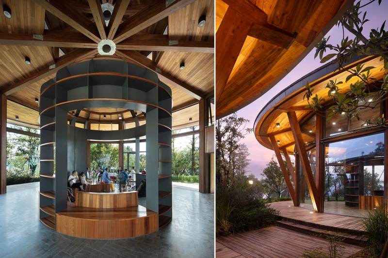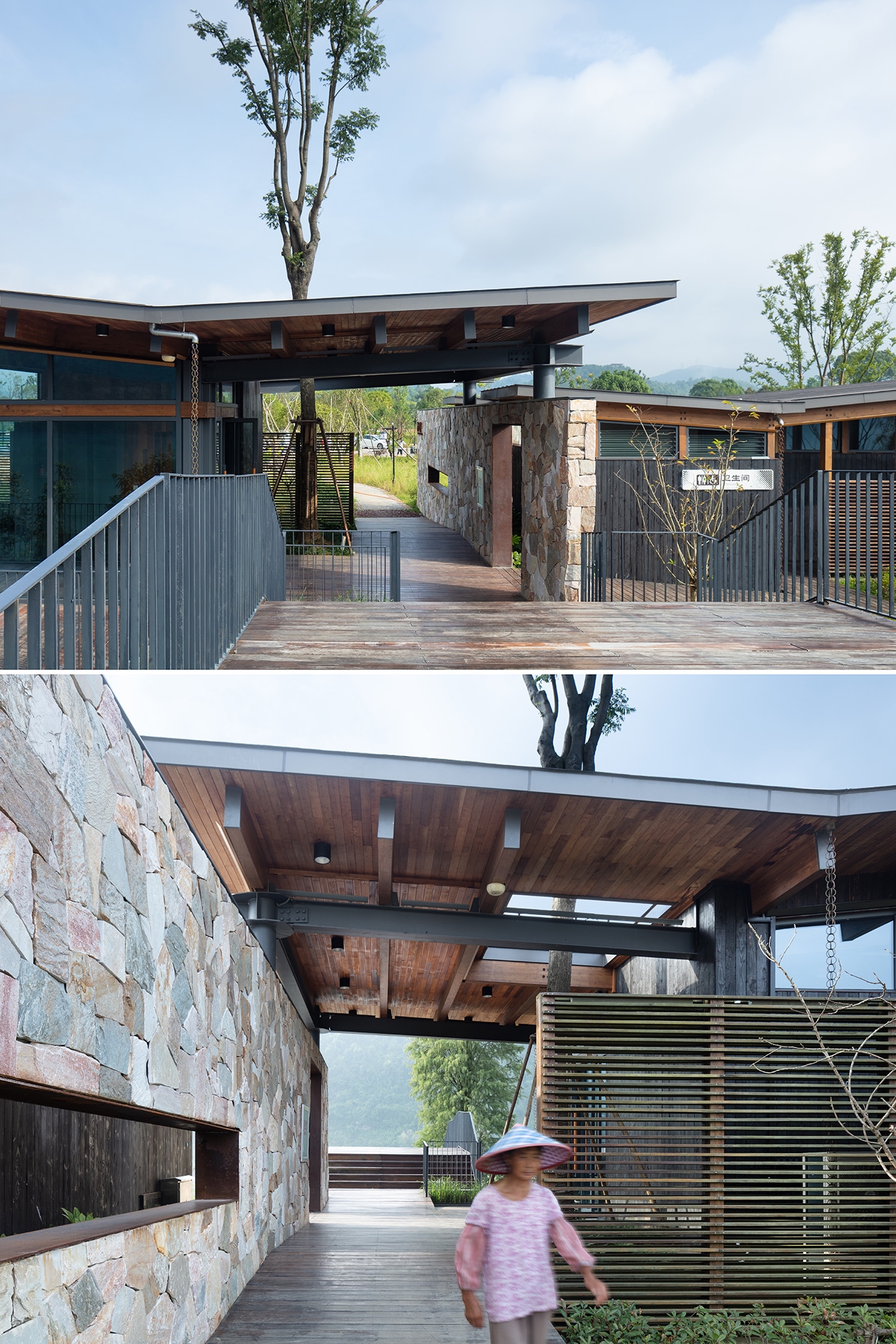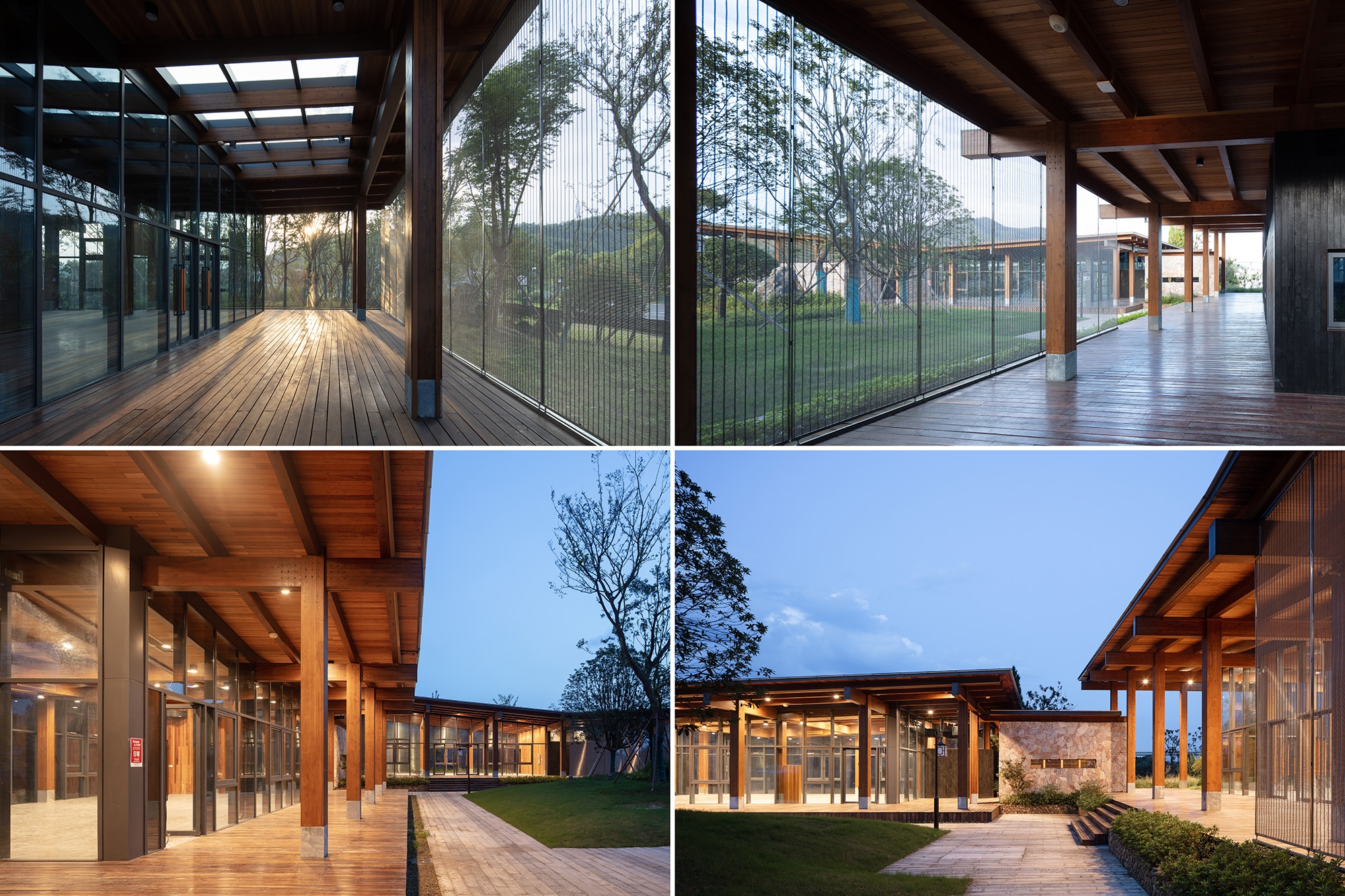 To blend naturally with the surroundings, the design uses glued laminated timber with natural wood textures as the primary structural material, offering strength, stability, and design flexibility through factory prefabrication. Facade materials such as carbonized wood, rubble, and stainless steel mesh are locally sourced, ensuring integration with the environment and imparting a local character to the stations.