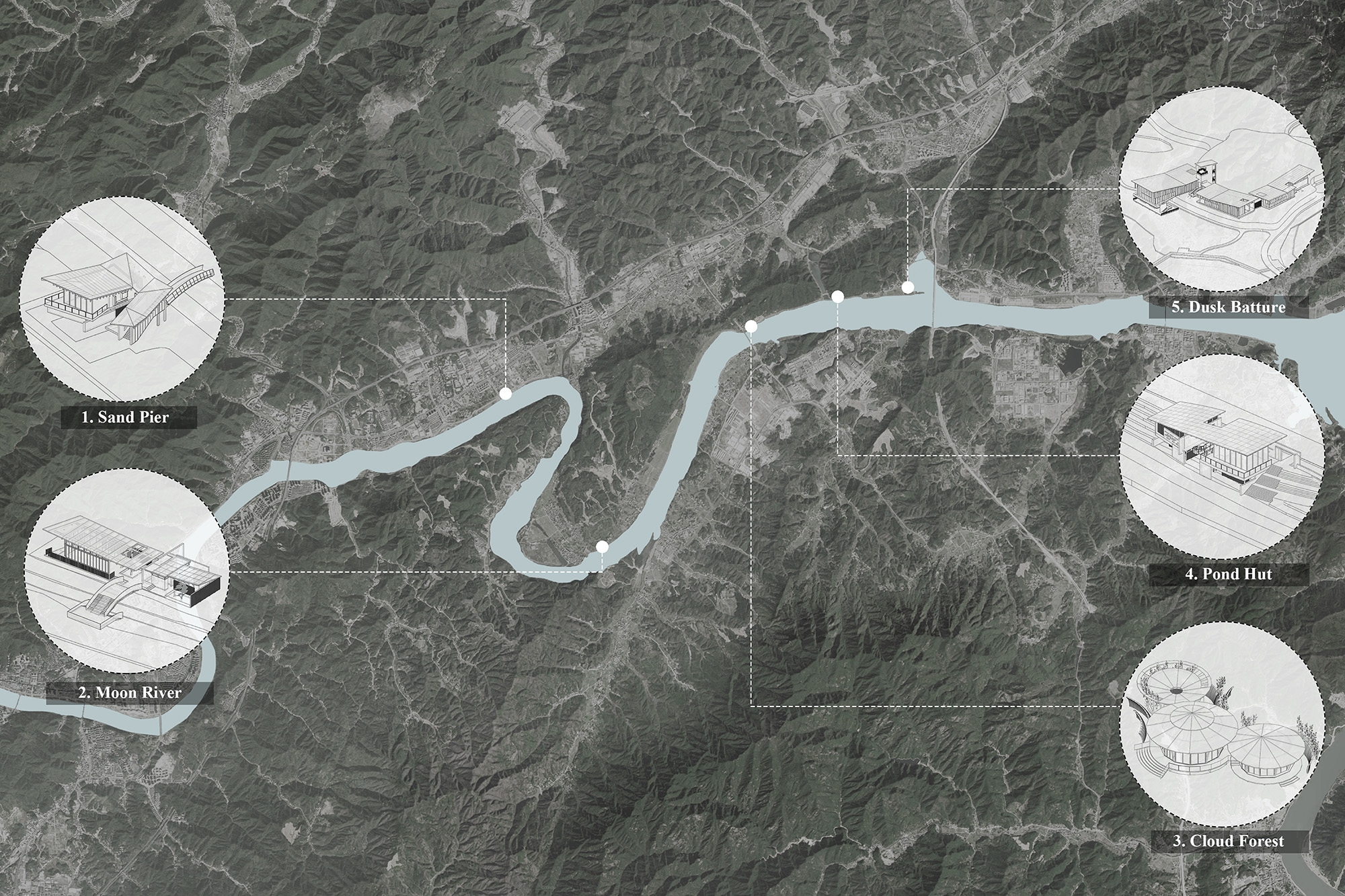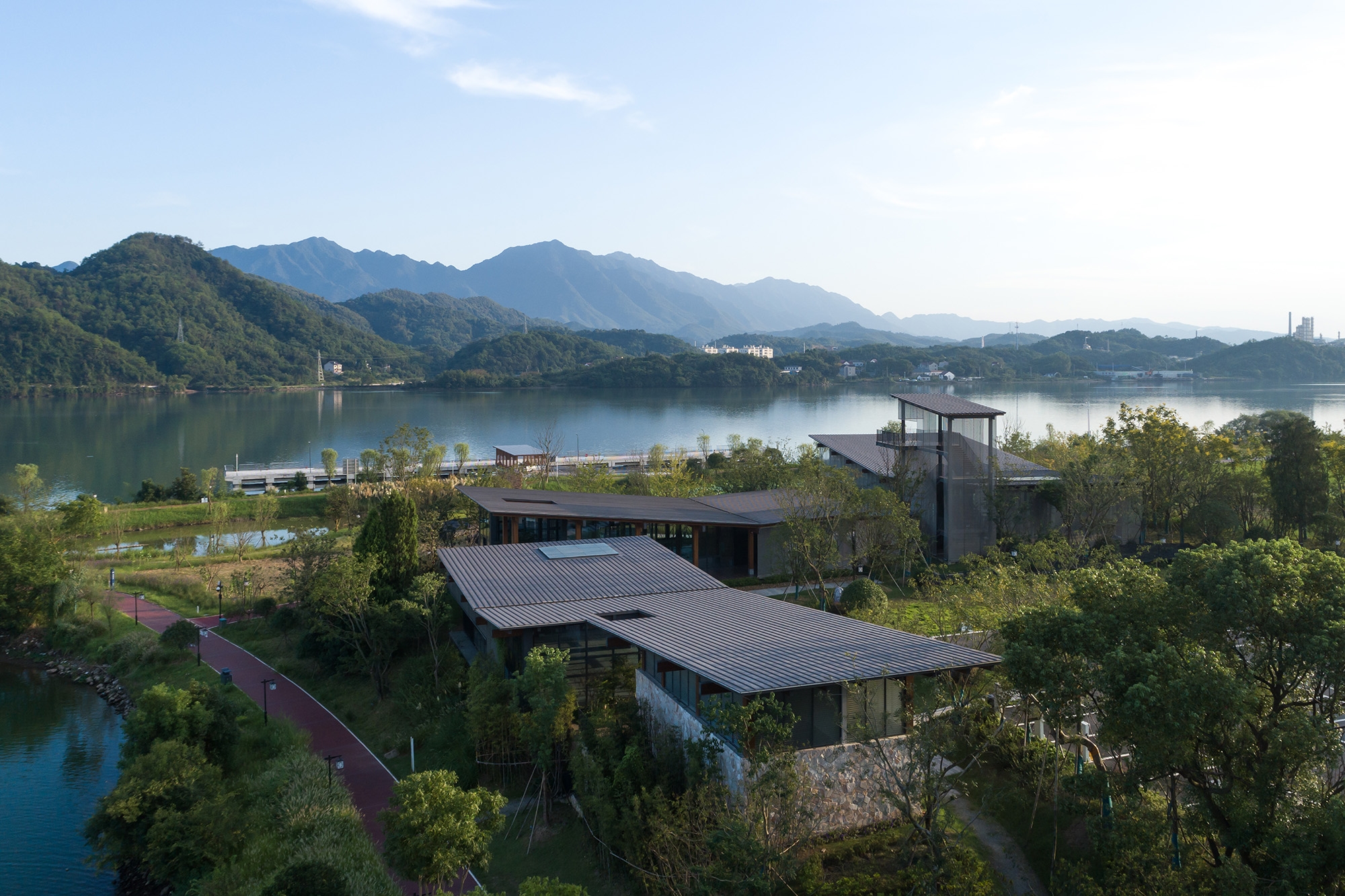 The design encompasses five waterfront service stations as part of the Xin'an River Comprehensive Protection Project, aimed at maximizing landscape resources and enhancing urban and rural environments along the river. The design philosophy emphasizes lightness, intimacy, serenity, and purity, intending for the architectural structures to be lighter and closer to the water, with facades that are purer and lighter.