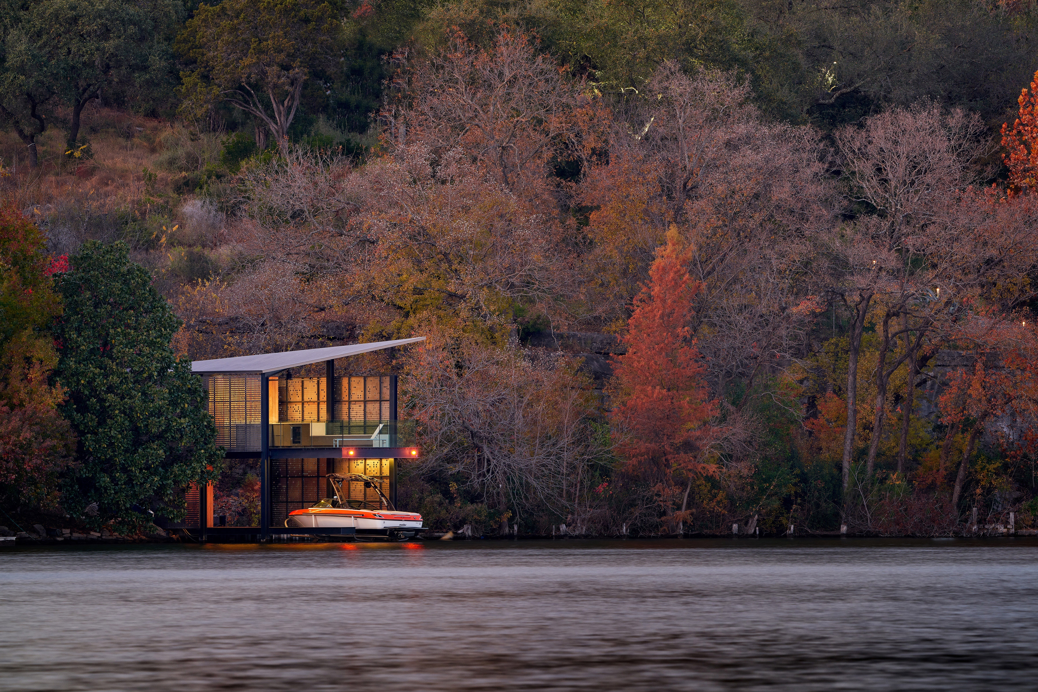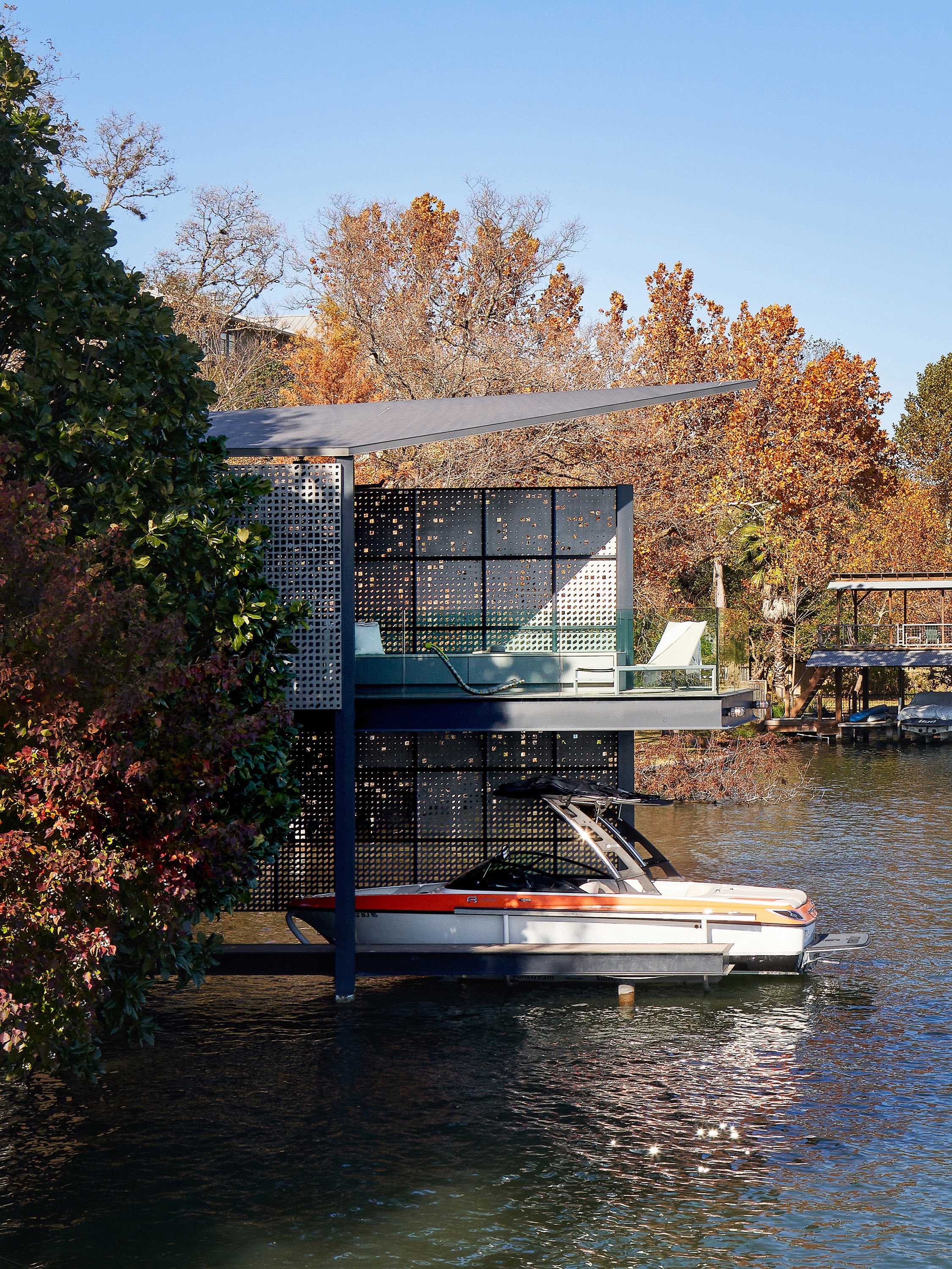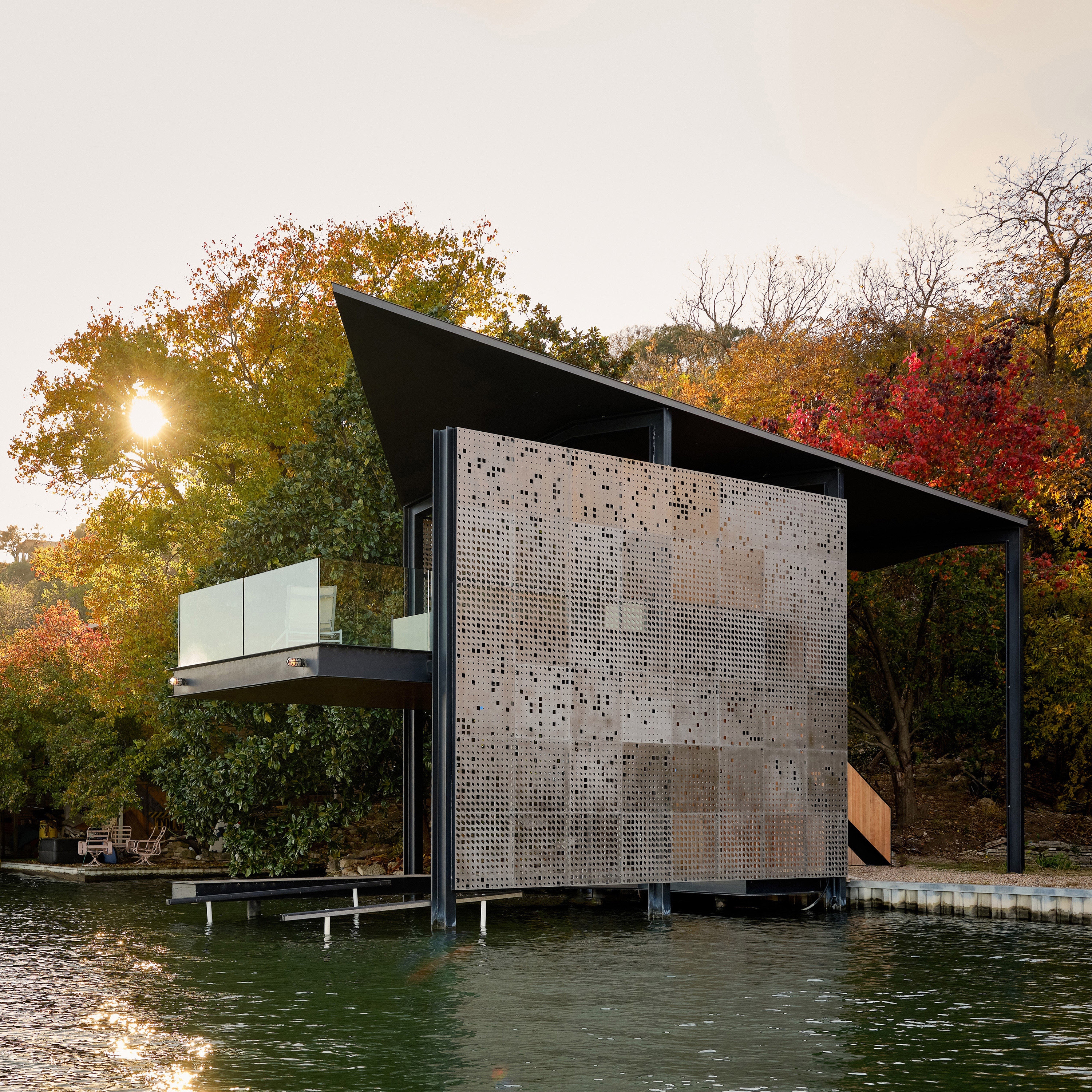 Filtered Frame Dock is a space to delight in nature and enjoy being outdoors. The aim was to create a structure that was not only a comfortable place to spend time and enhance the routine of boarding the boat, but also to create a beautiful structure that is a delight to come upon every time one is out on the lake.
