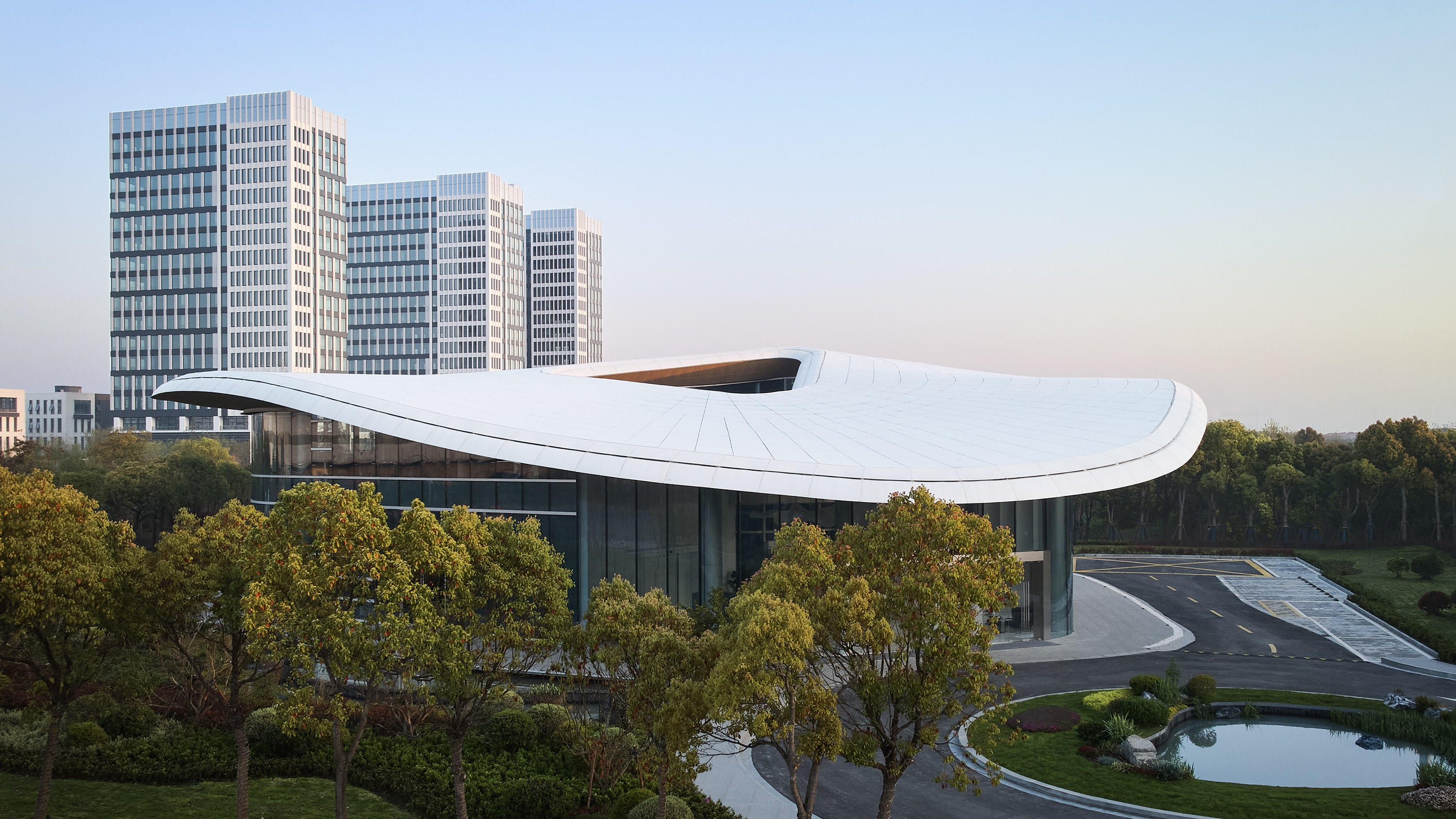 The building features a free-flowing roof, which is formed with the assistance of parametric modeling. Combining creativity and technology, the roof is a manifestation of pure elegance.