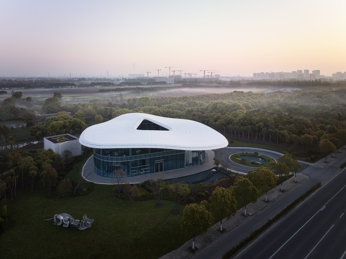 This is a multi-purpose building for exhibitions and offices. Inspired by the content and naming of International Digital Sea, we introduce the design concept of “Cloud Isle”. Through employing the method and aesthetic of high-tech architecture, we aspire to infuse a floating effect into the building.