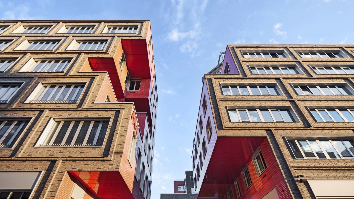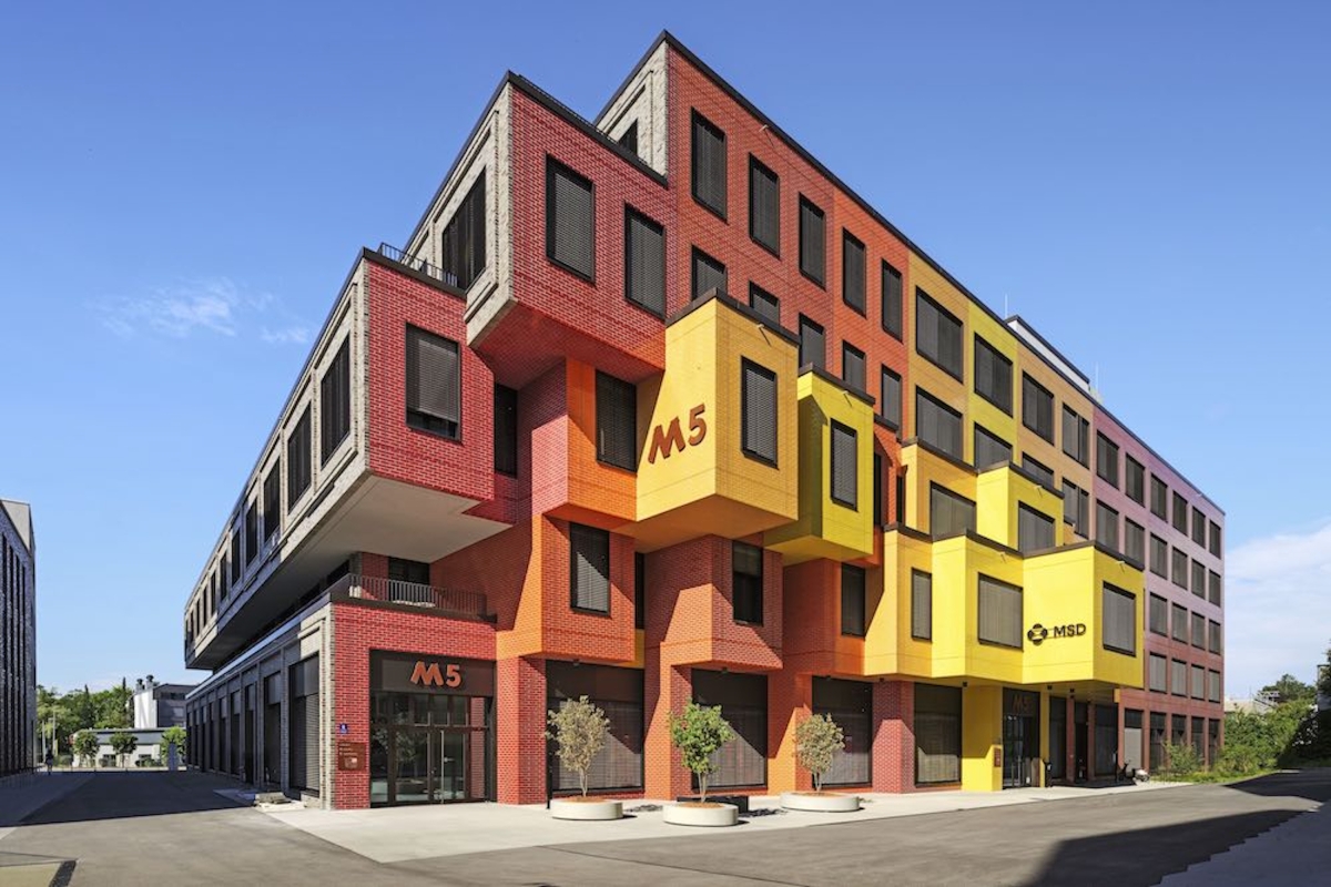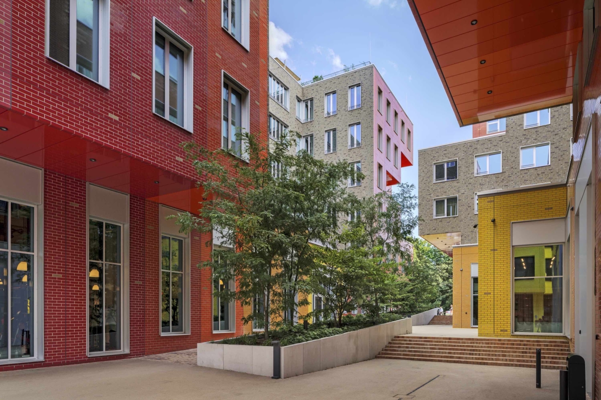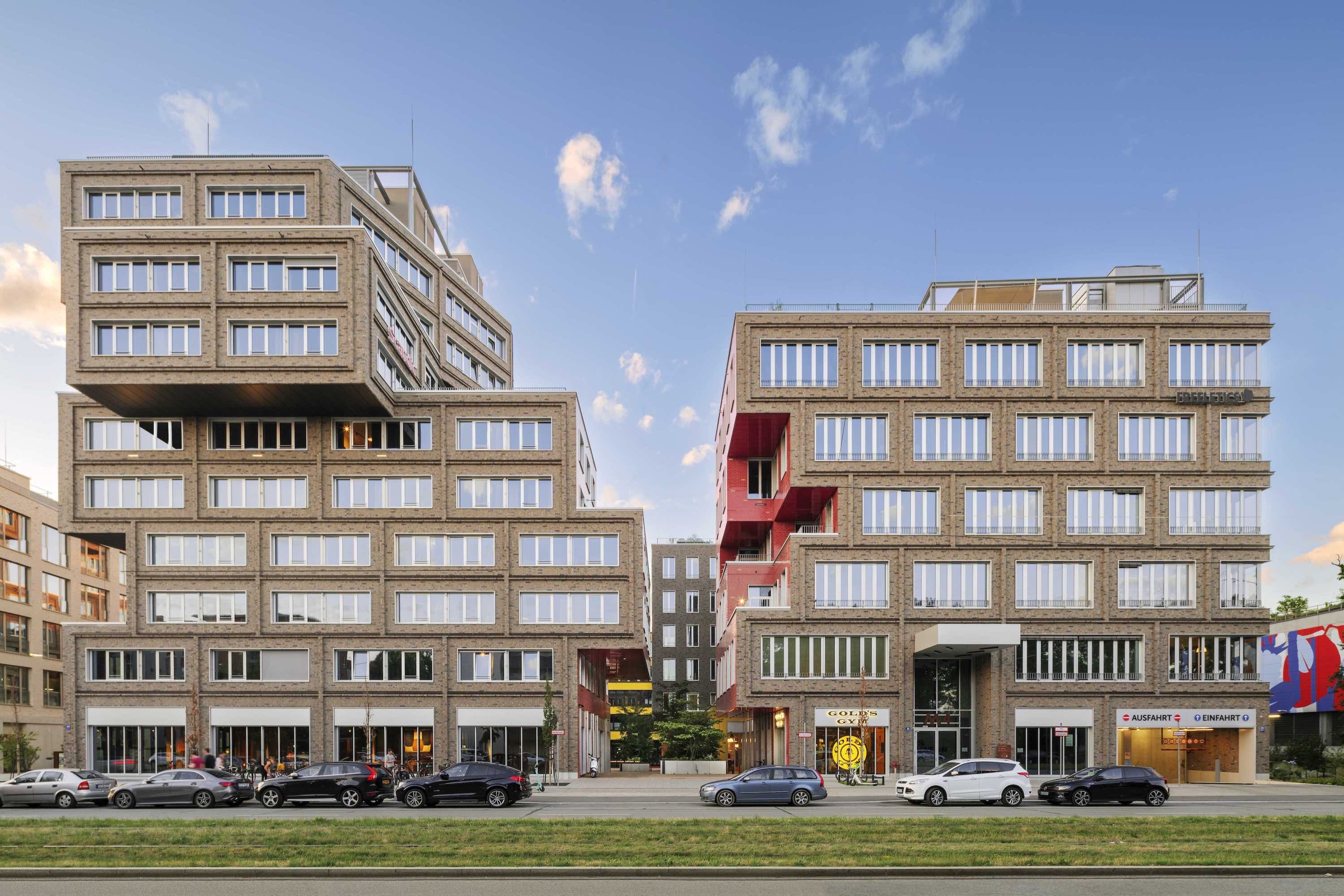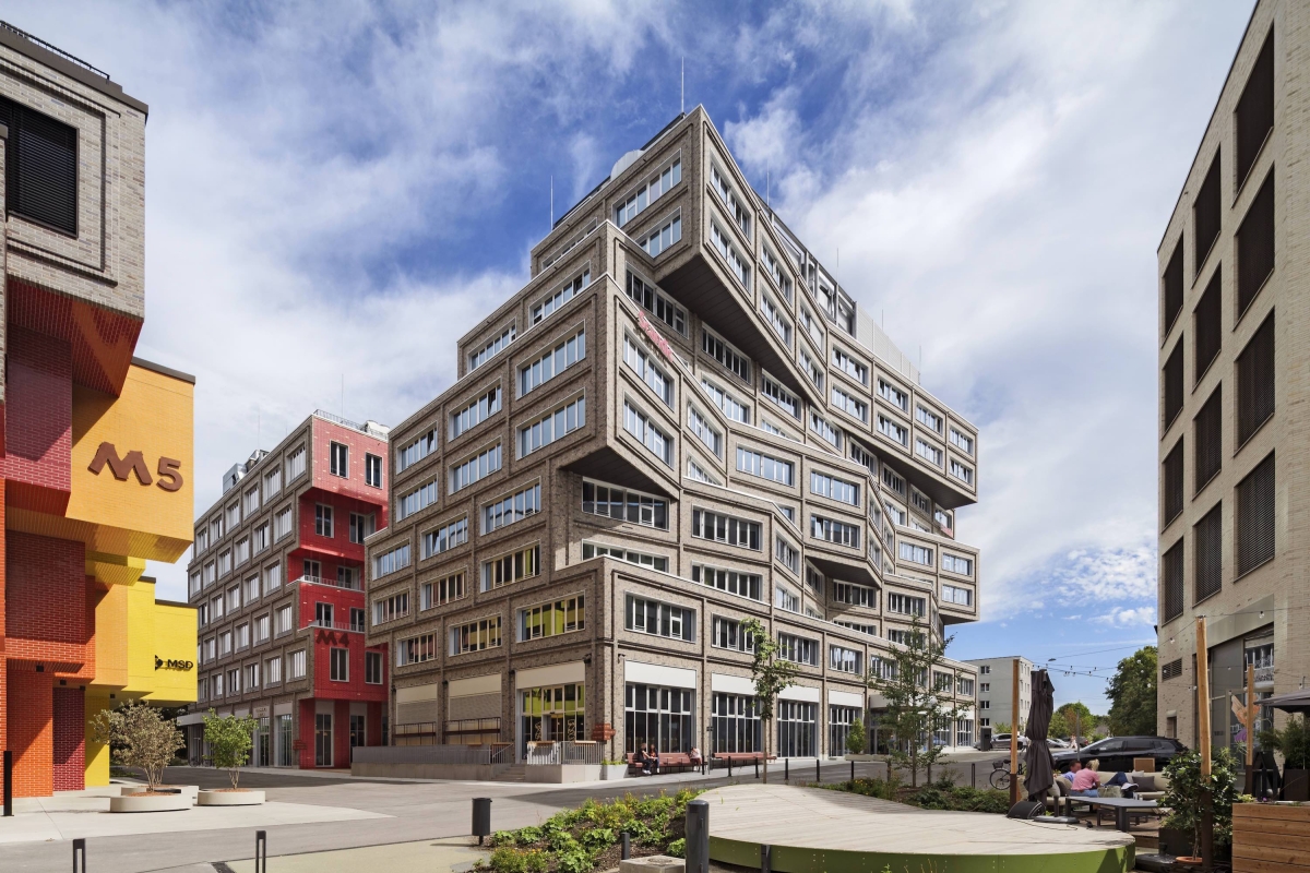 Designed by HWKN Architecture in collaboration with OSA Ochs Schmidhuber Architekten and holger meyer architektur, Die Macherei München is the first LEED-GOLD neighborhood in Europe. Die Macherei München comprises six multi-purpose buildings, including Retail as Amenity with a grocer, gym, restaurant, and bar, and three designed by HWKN, including a new hotel, the Scandic München Macherei, and two office buildings. This place-shaping, new neighborhood transforms a once-barren, industrial area into an area that is welcoming and filled with emotion. The Scandic München Macherei hotel is ten stories high and clad in a rough, earthen-brown brick. The hotel is unforgettable due to its stacked and sculpted façade.