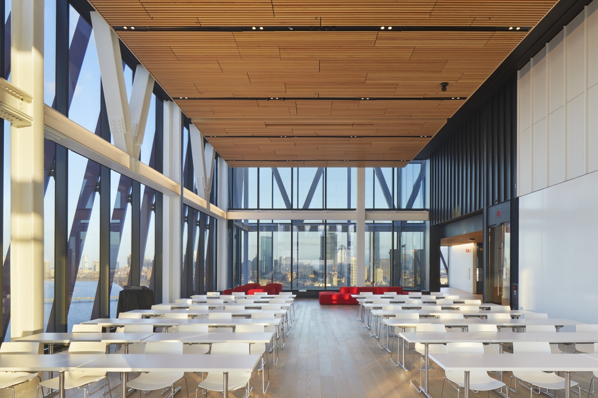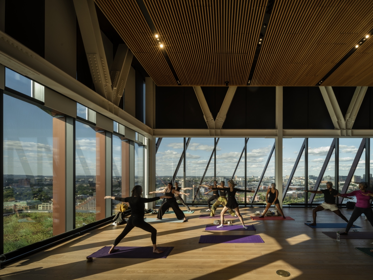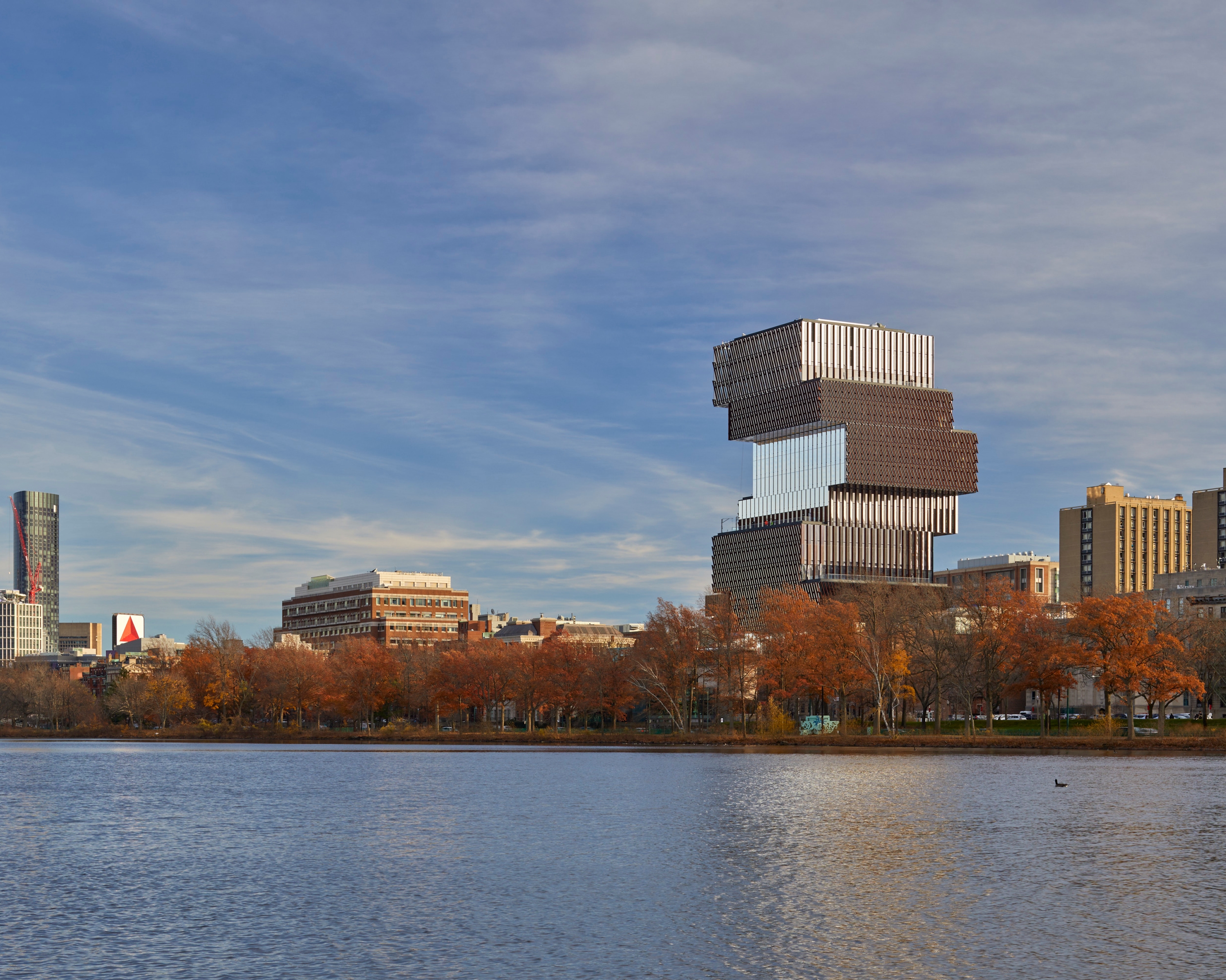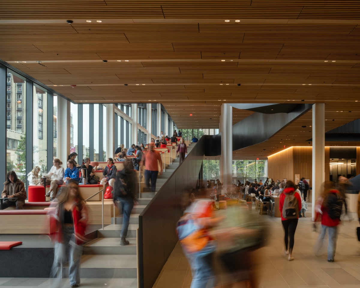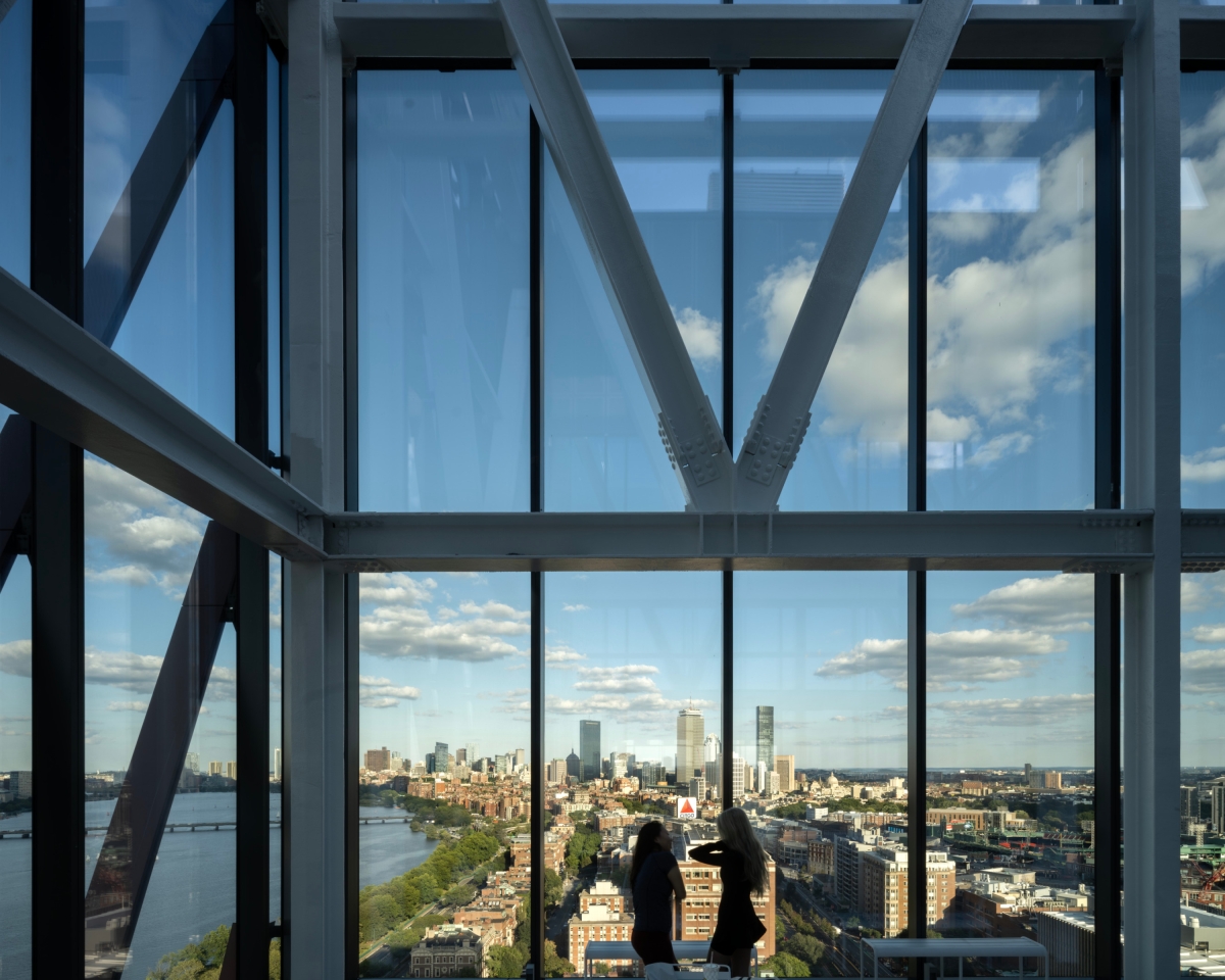 A vertical campus, the Center unites mathematics, statistics, and computer science departments, fostering collaboration through an atrium, classrooms, and green spaces. Terraces connect occupants to nature, offering views of the Charles River and city. The transparent, four-storey podium serves as an urban porch, promoting interaction and gathering with spaces like a café, atrium stair, and street studio.
