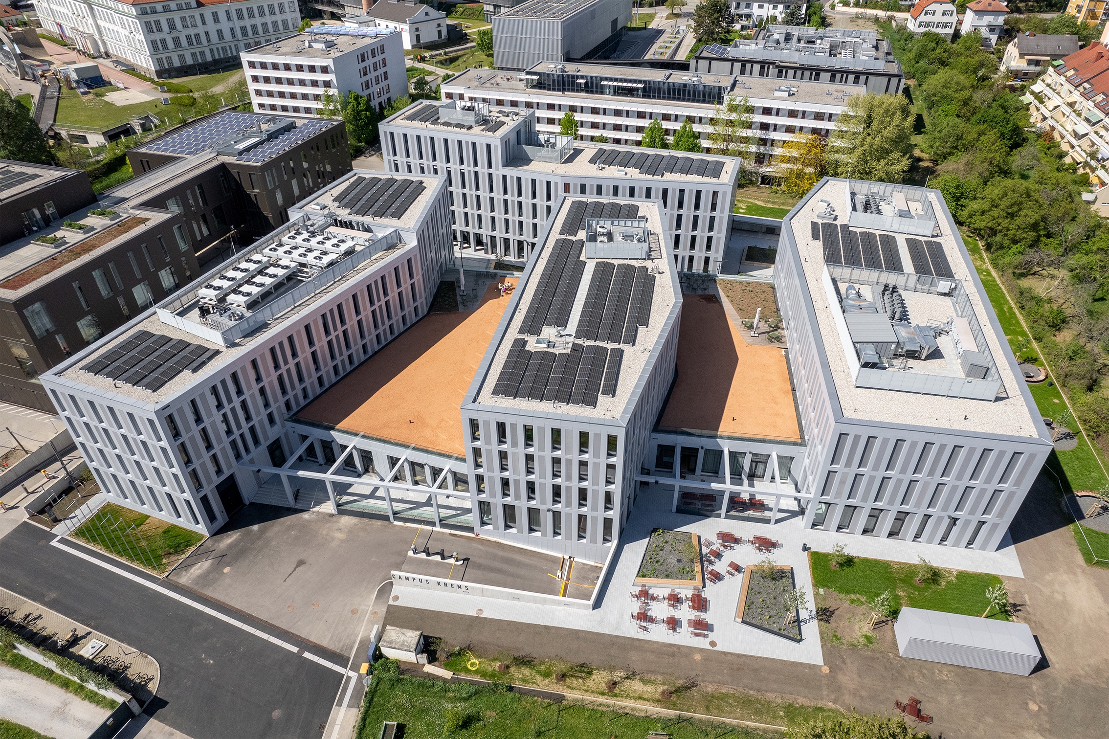 Three educational institutions are coming together on the Campus Krems extension site - the Carl Landsteiner University, the University for Continuing Education Krems and the IMC University of Applied Sciences Krems.