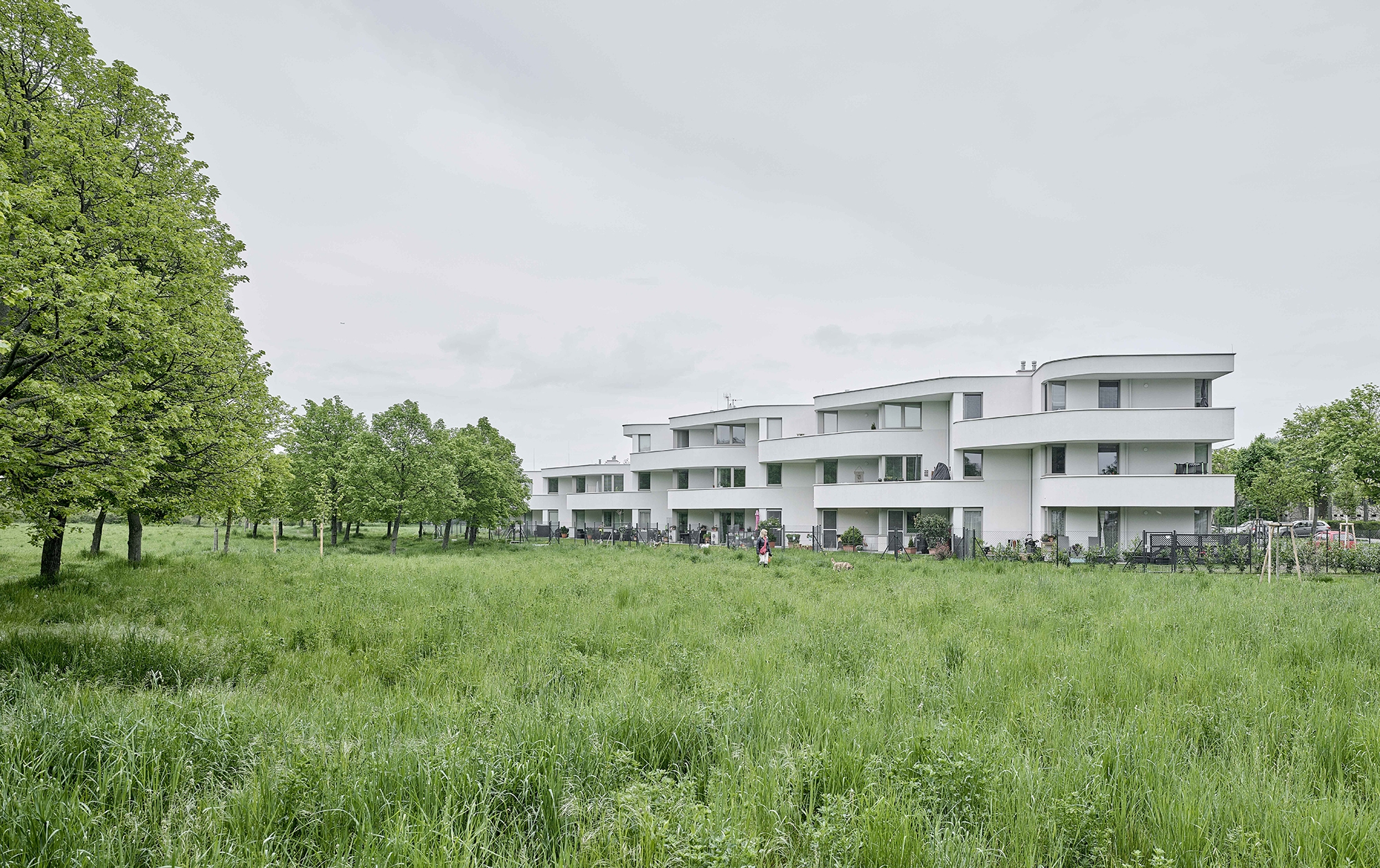 "marchfeld terrassen" is social housing whose striking architecture transcends its limited budget. Situated on the green swath of Vienna's Marchfeld Canal, the project uses robot-assembled, prefabricated brick walls to generate a distinctive sawtooth building form, which maximizes lighting and views for each apartment. Curvilinear balconies give the building a sculptural presence that mediates between the adjacent urban fabric and the park-like meadows around the canal.
