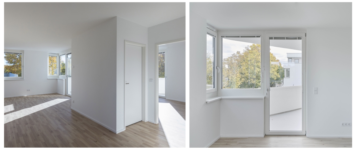 The project uses two building masses to form a striking urban figure. Between the buildings is an open center that forms an entry court for the complex. This is a place for orientation, for gathering and a play zone for young children.