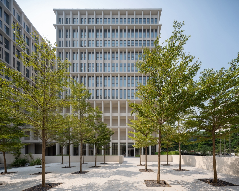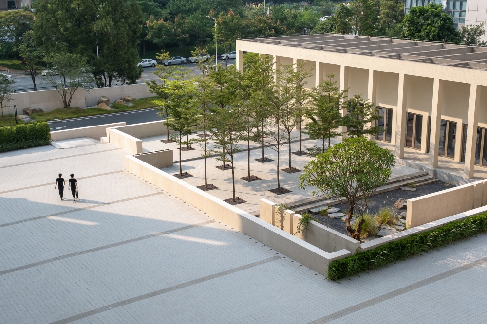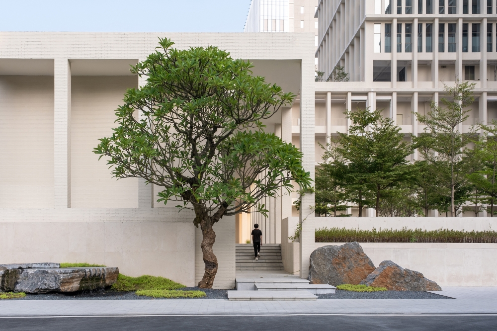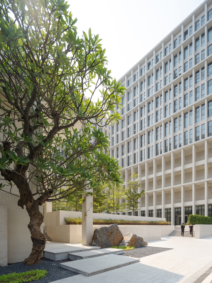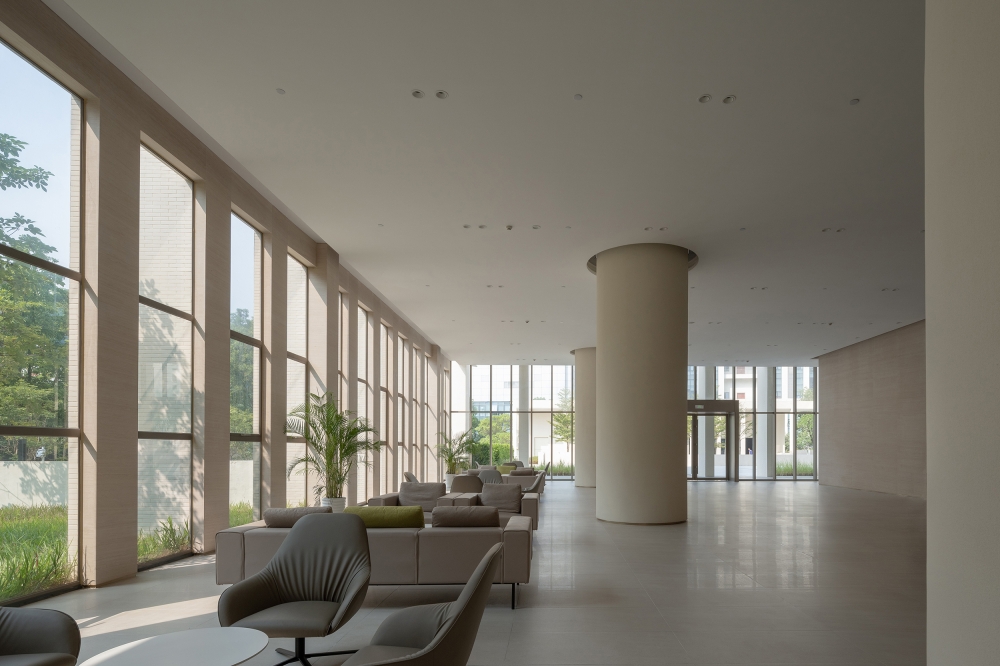 This project is an industrial campus around 60,000 square meters which we were involved in architecture, interior and landscape design all together. Although the project mainly programmed for manufacturing purpose. Integrated loggias and courtyards achieve a slow architecture to pursuit a better working environment. The raise-up ground plaza enriches the visiting experience and anchors the scattered buildings as pedestal. A sunken garden is designed next to it to create a peaceful environment. The lobby, multifunctional hall ,tea room and the exhibition hall are designed under a unified color and material palette to arrange the texture and tone from exterior to interior, to create an effortless atmosphere.
